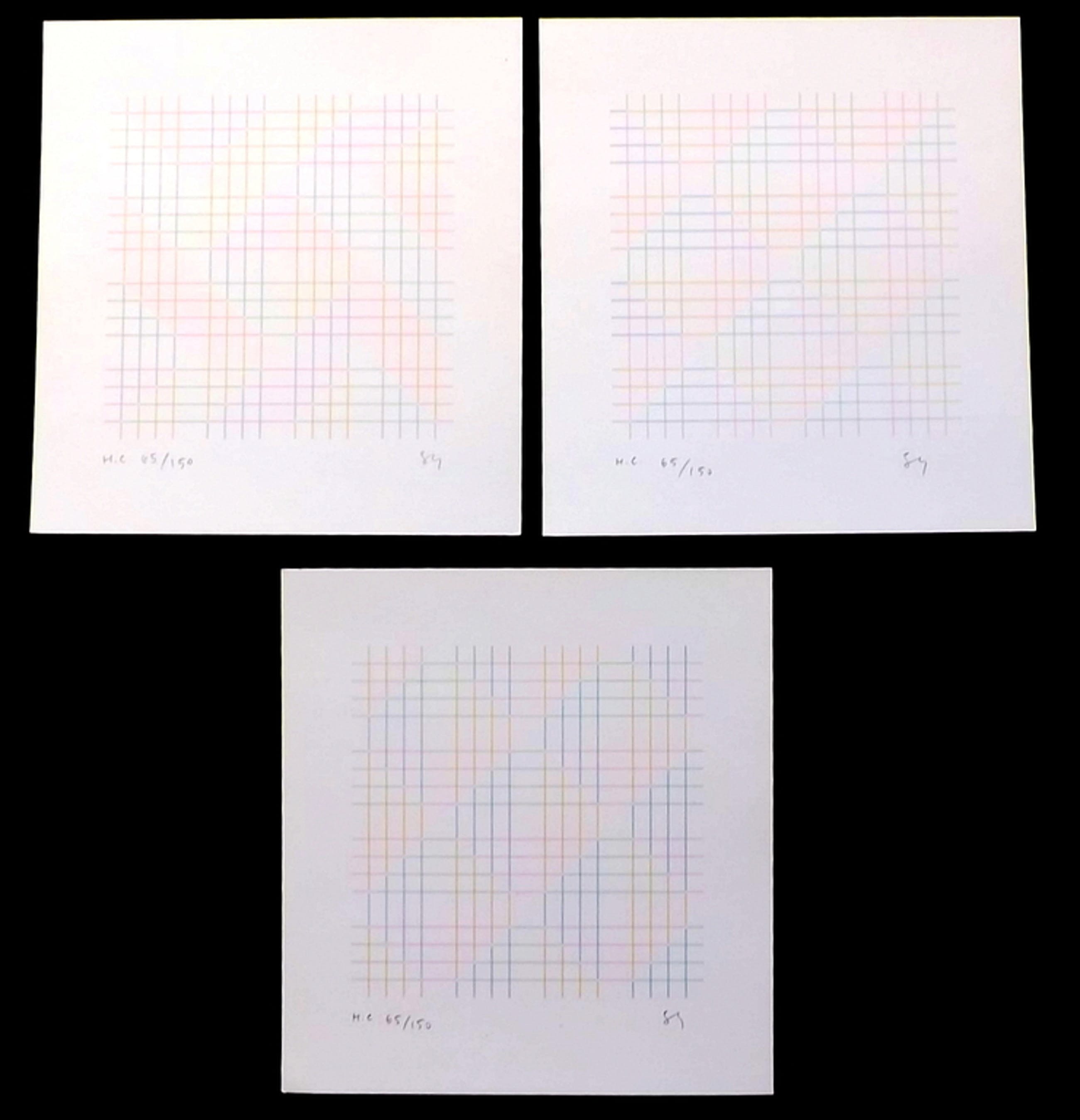 De 3 werkjes zijn afgedrukt op glad karton-achtig papier - met potlood gesigneerd en genummerd (zie foto's) herkomst: Meissner Edition Hamburg 1985 - de pastel-kleurig lijnen laten zich op de foto's moeilijk vangen !