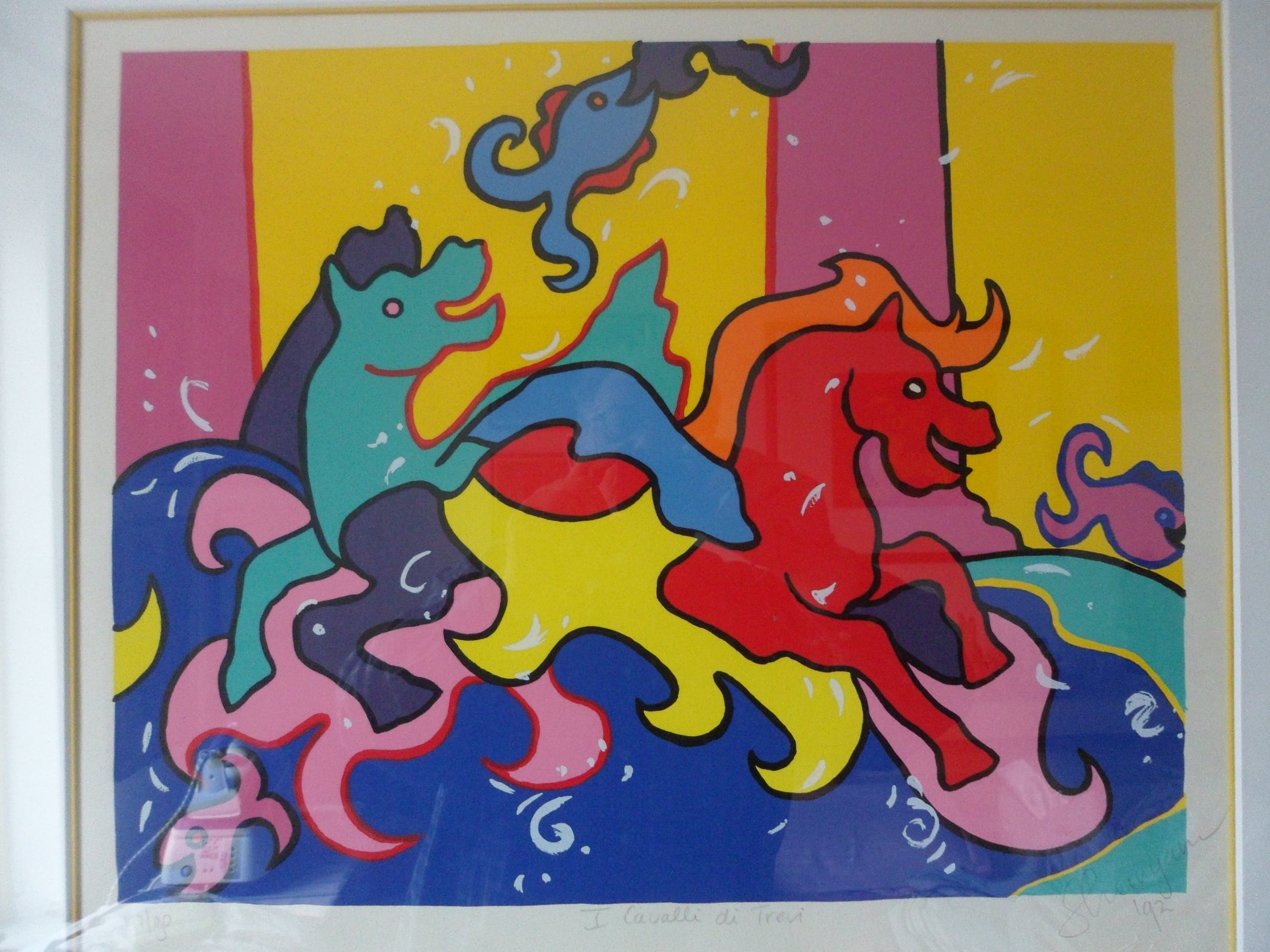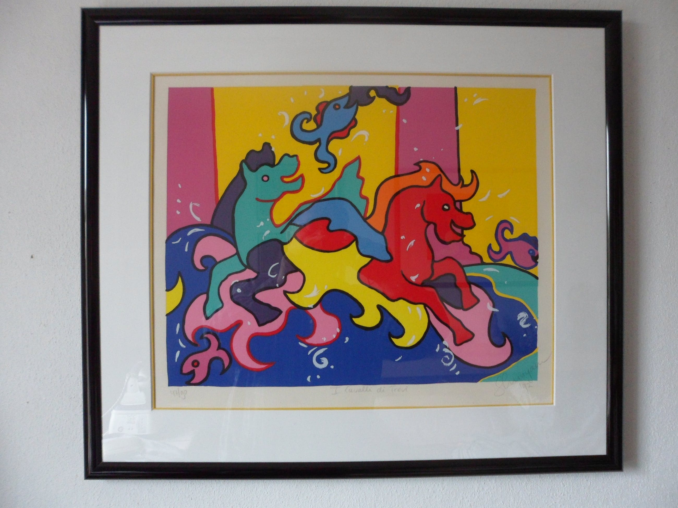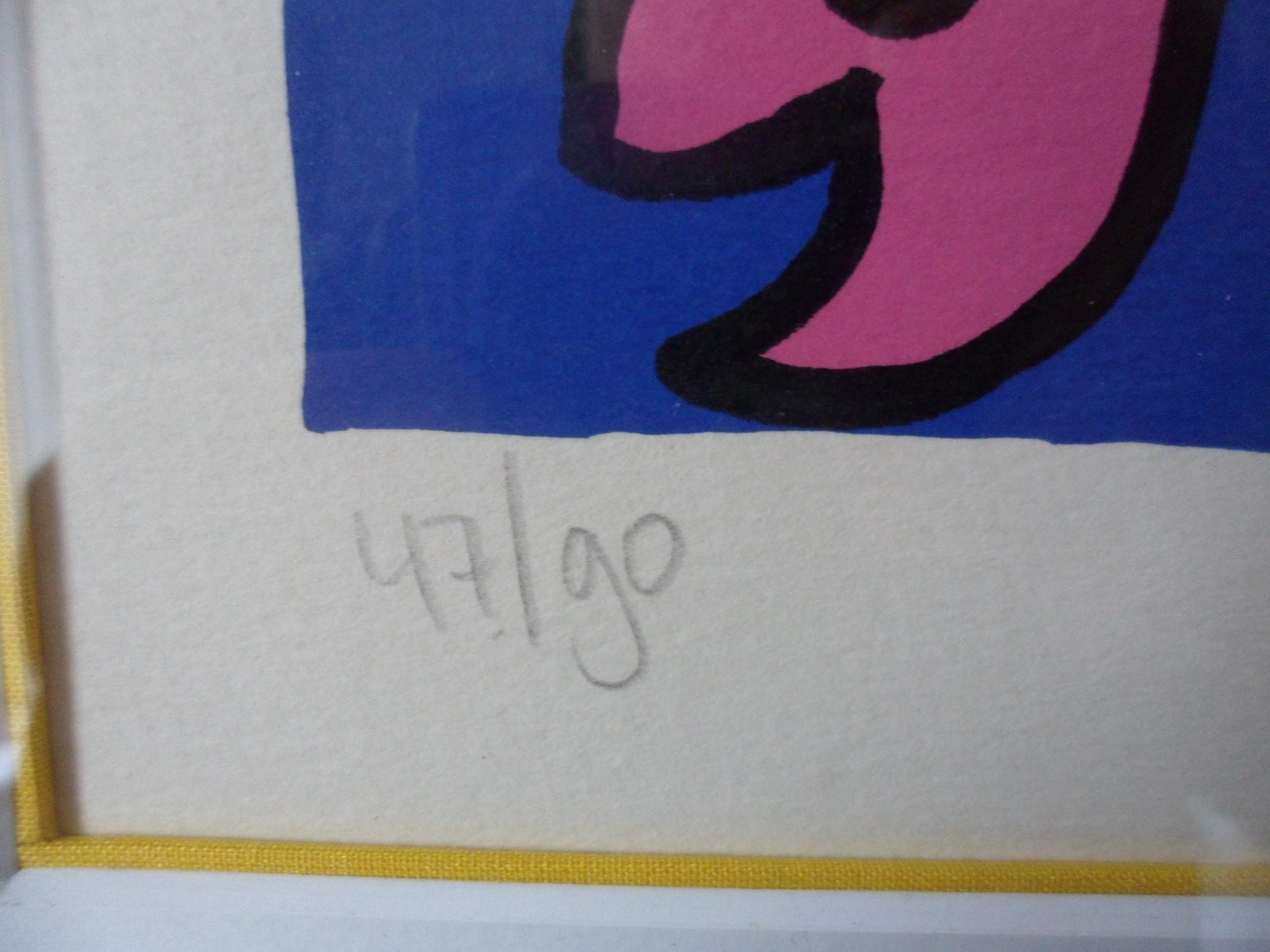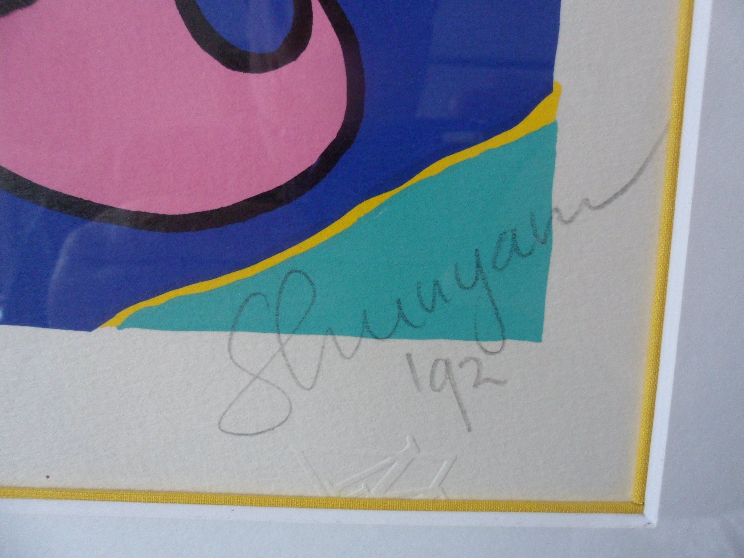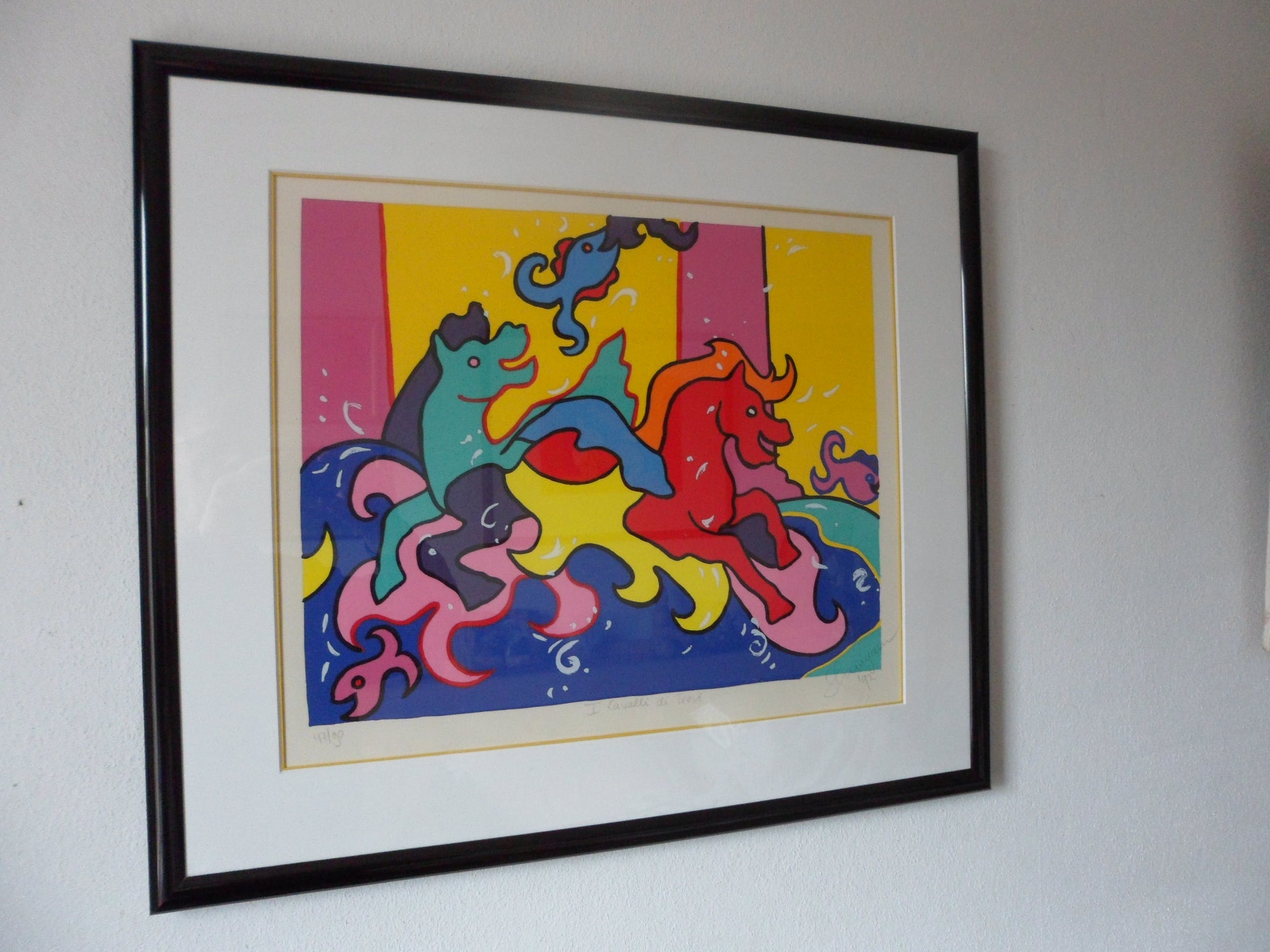 | Een zeer mooie zeefdruk en mooie zwarte lijst | |||