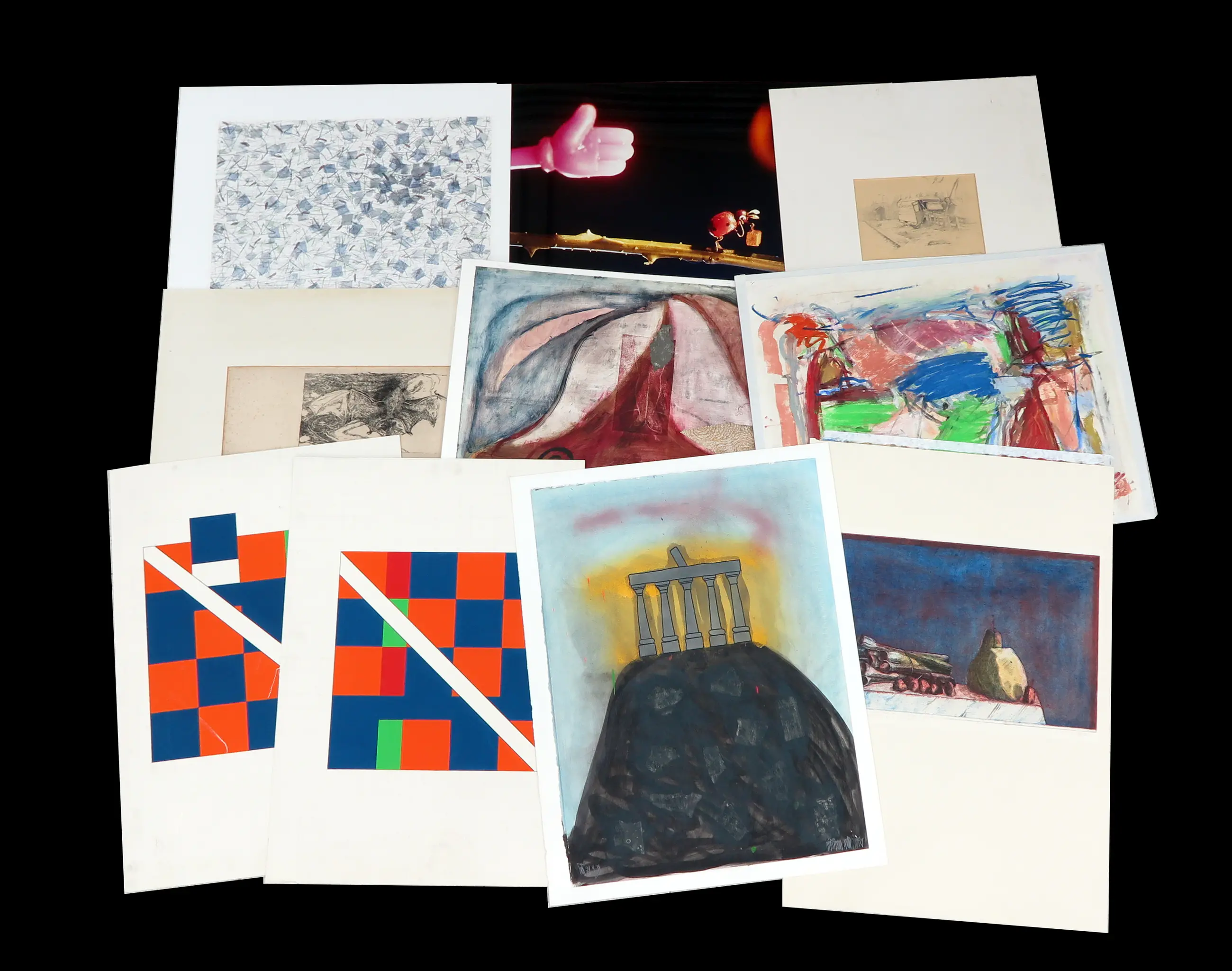 | De conditie van de werken in dit lot verschilt. Over het algemeen zijn de werken in goede staat. Maar de werken kunnen enkele beschadigingen hebben (vouwlijnen, gekreukt papier, verkleuring, scheurtjes). Individuele werken worden niet beschreven. | |||||||||||