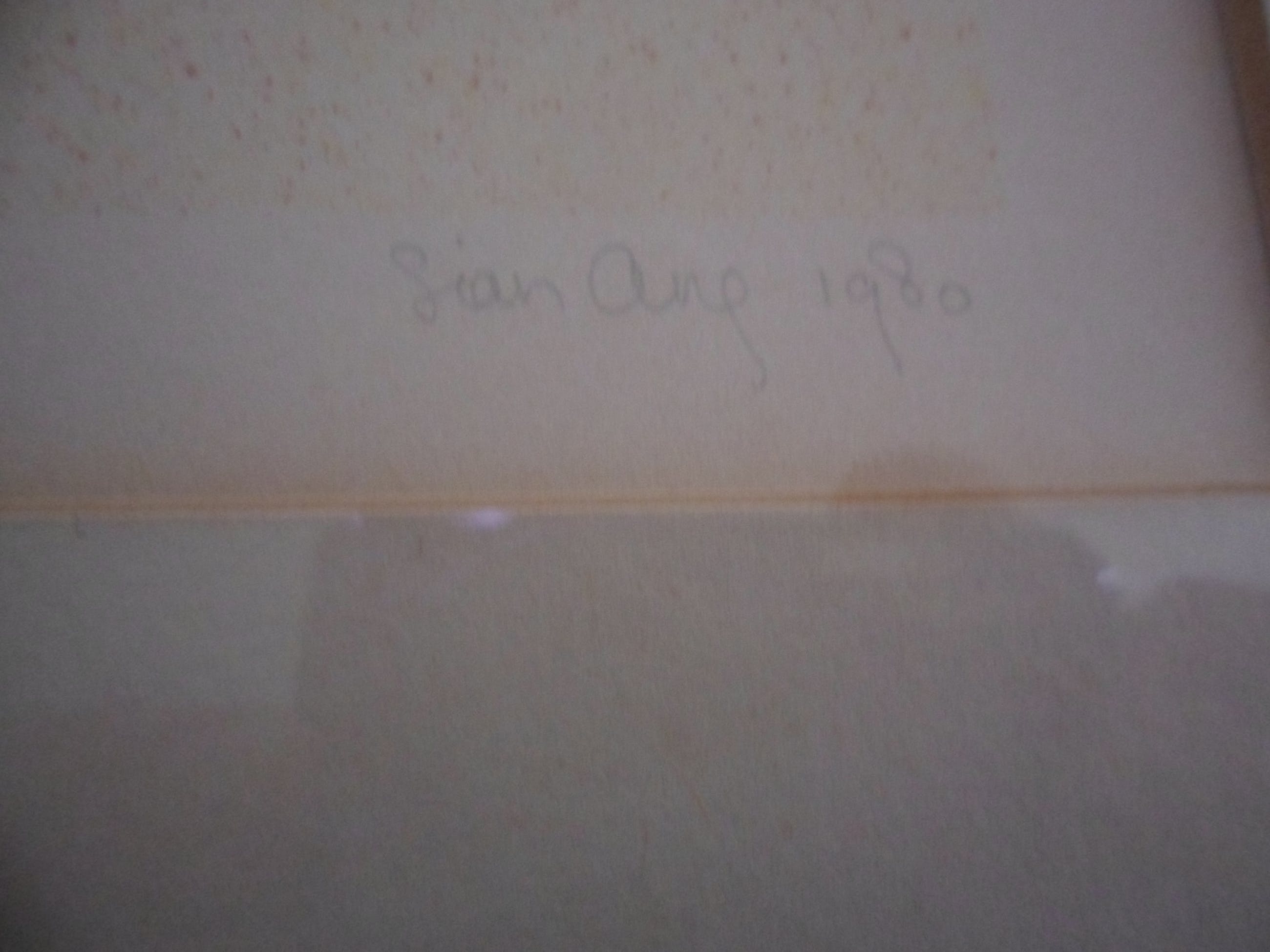 Sian Ang: Litho, Titel: Zonder titel Jaartal: 1980 Afmetingen blad: 51 cm x 66 cm (Beeld: 34 cm x 38 cm) Oplage: 3/6 e.d. Gesigneerd: Ja, handgeschreven met potlood (rechtsonder) Materiaal: Litho op papier Ingelijst: Ja Conditie: Beeld in zeer goede staat.