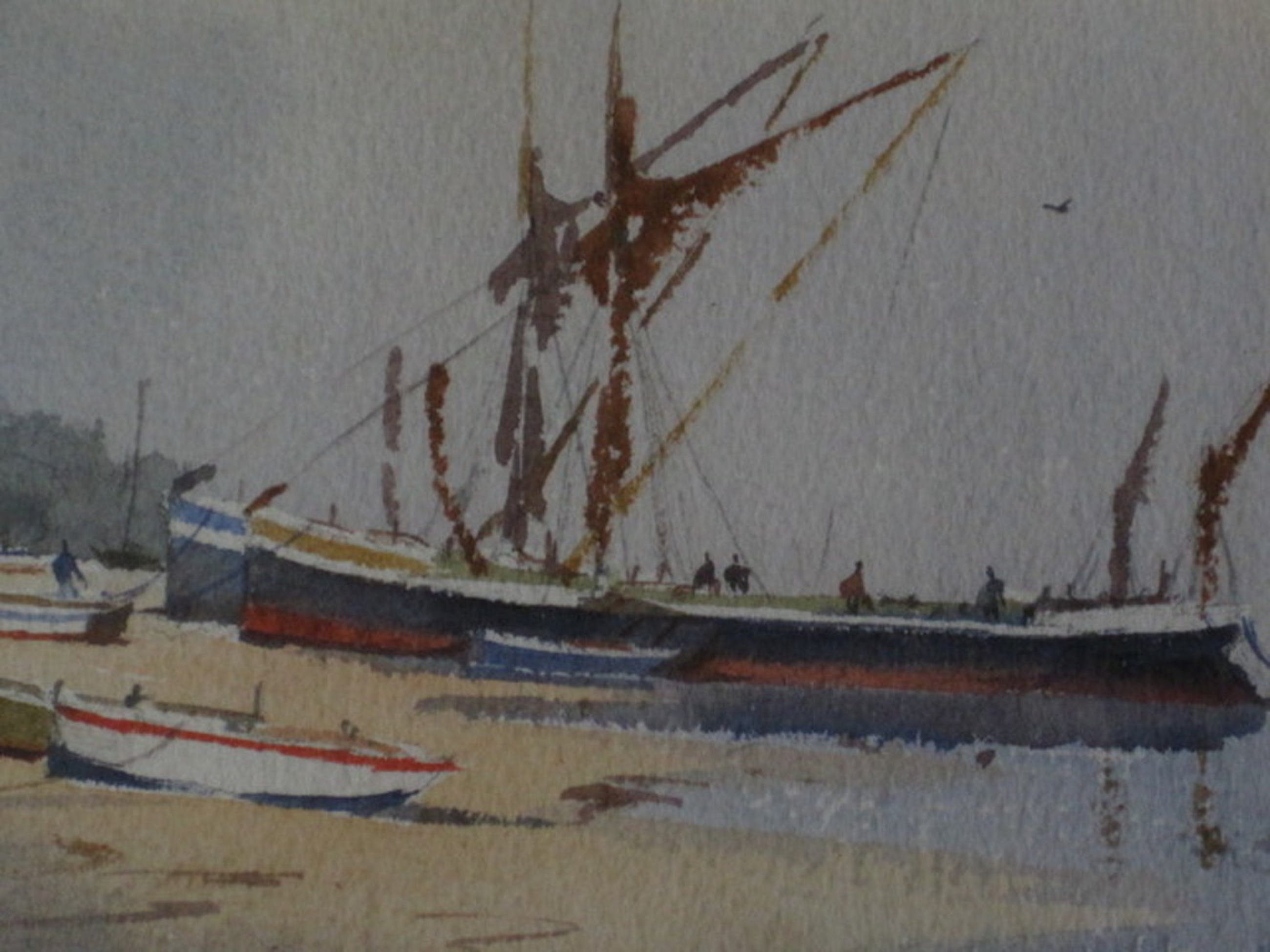 Sidney started painting in 1970, working in oils, pastels and watercolour. He found an interest for marine subjects especially on the river inlets of Essex and the Thames Barges at low tide in Suffolk, Maldon and on the Medway.