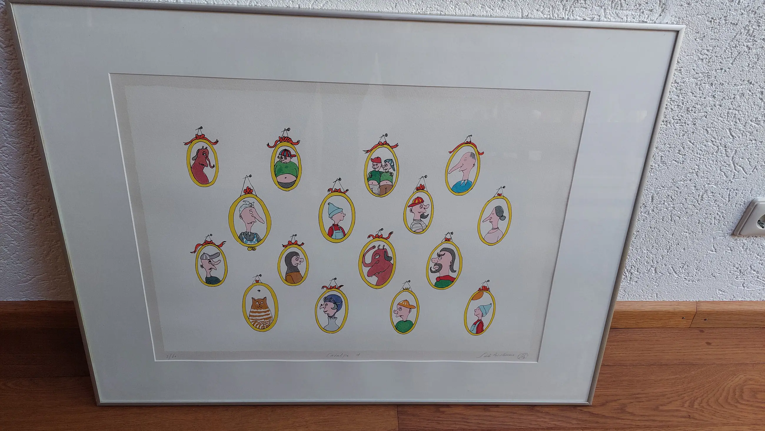 Het werk straalt vrolijkheid en speelsheid uit en is mooi helder van kleur. De litho is wit onderlegd, zodat de kleuren nog mooier naar voren komen en de litho komt met een degelijke lijst.