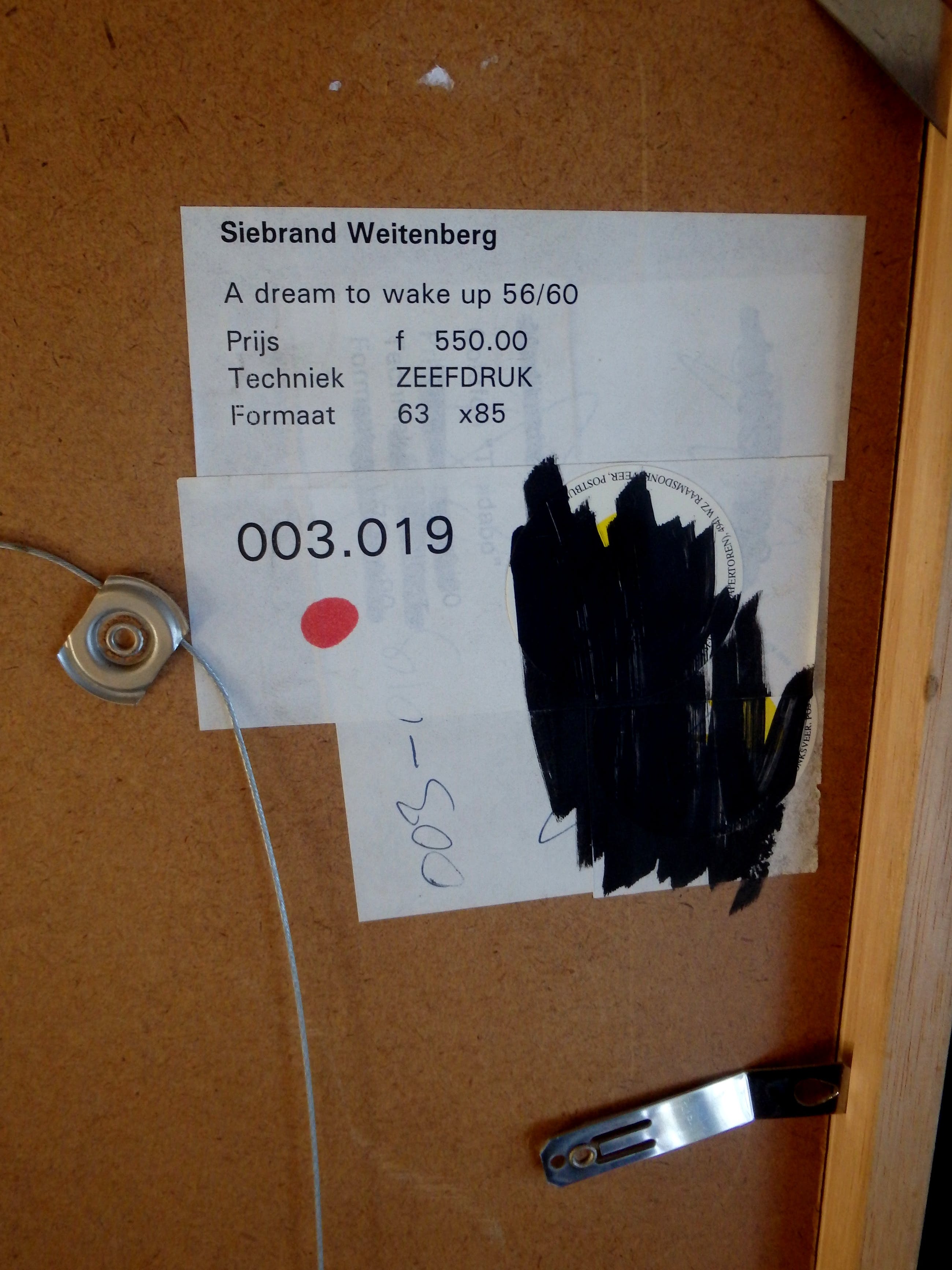 Op a.z. diverse stickers o.a. galerieprijs destijds HFL. 550,00