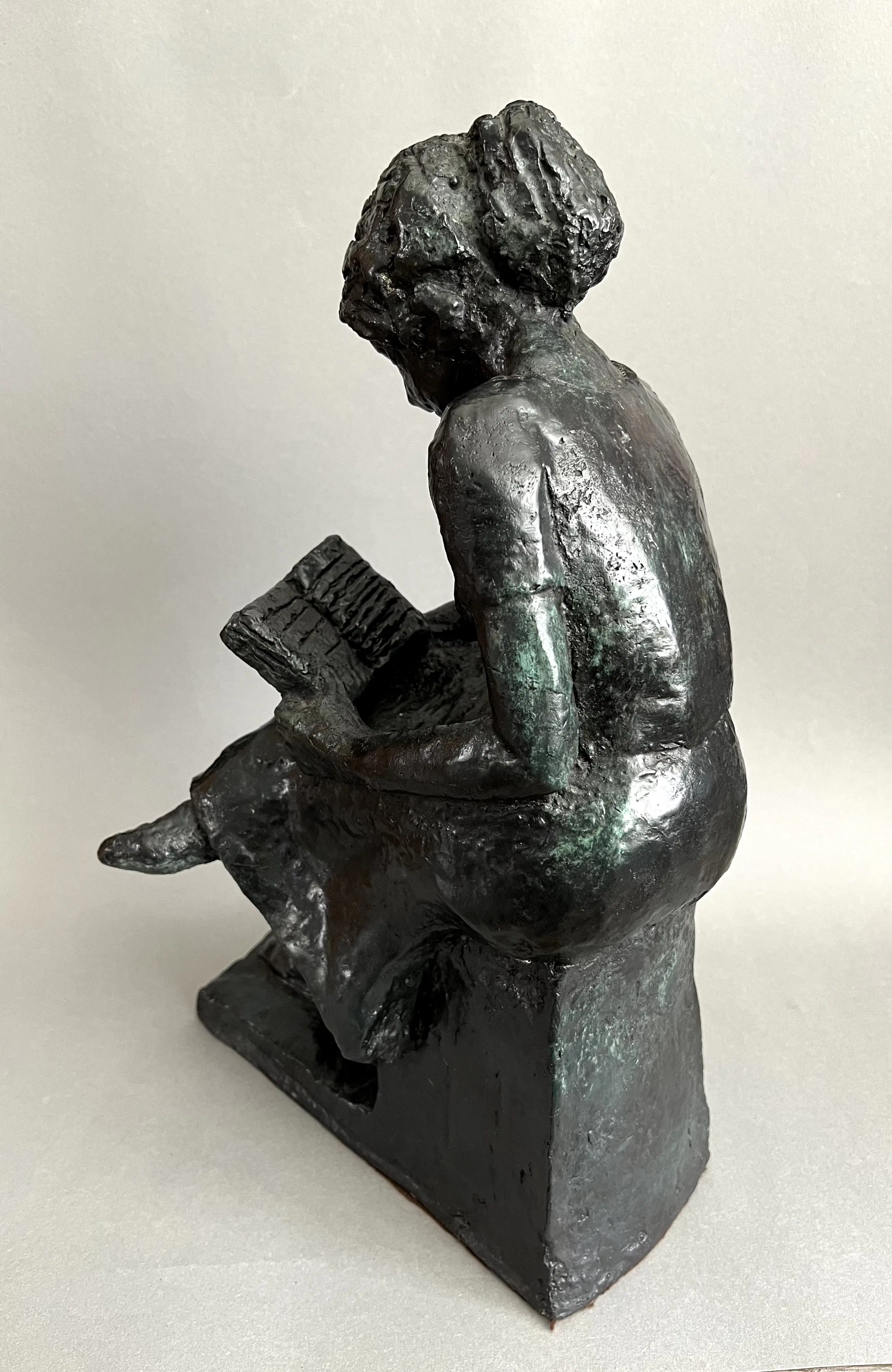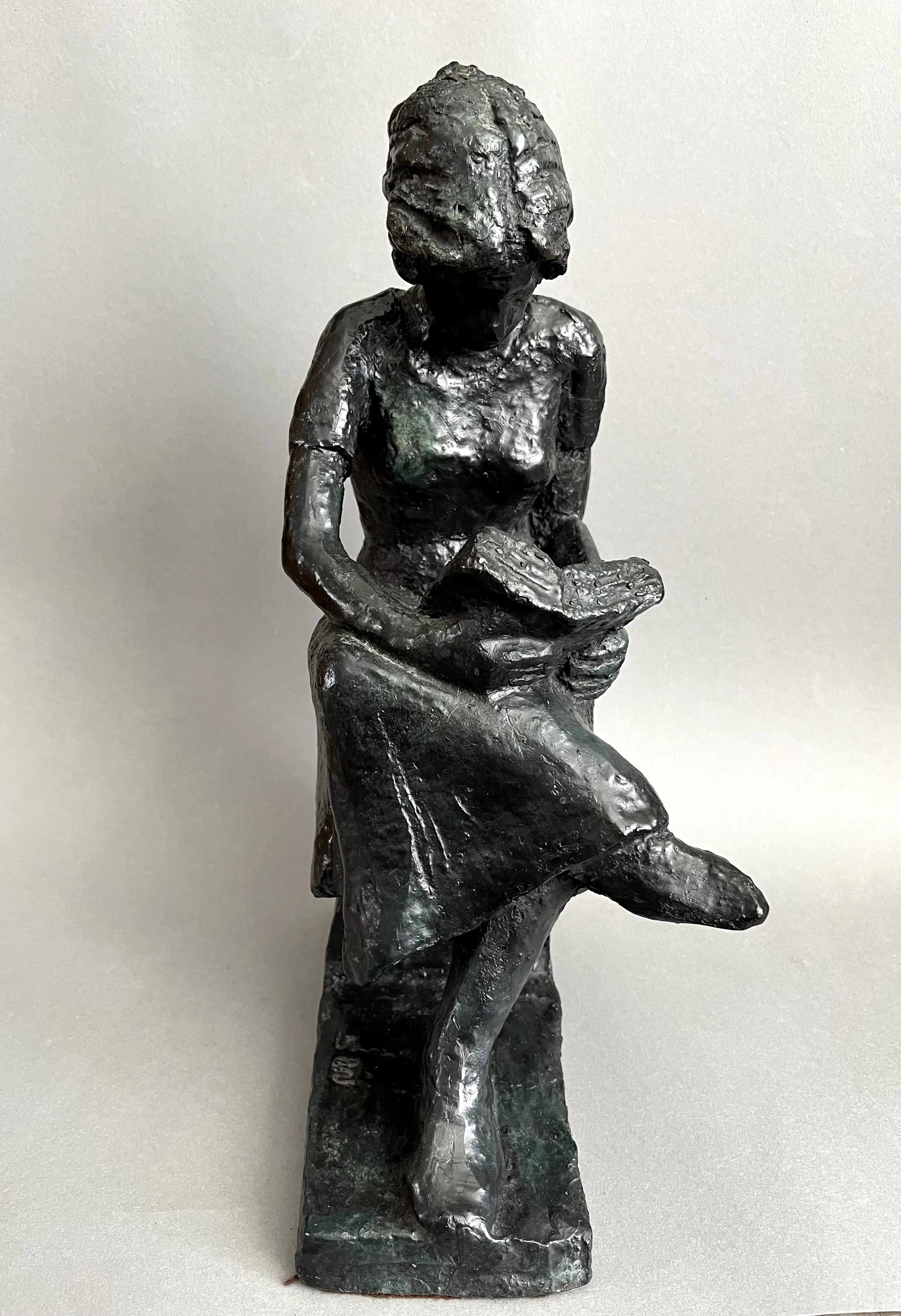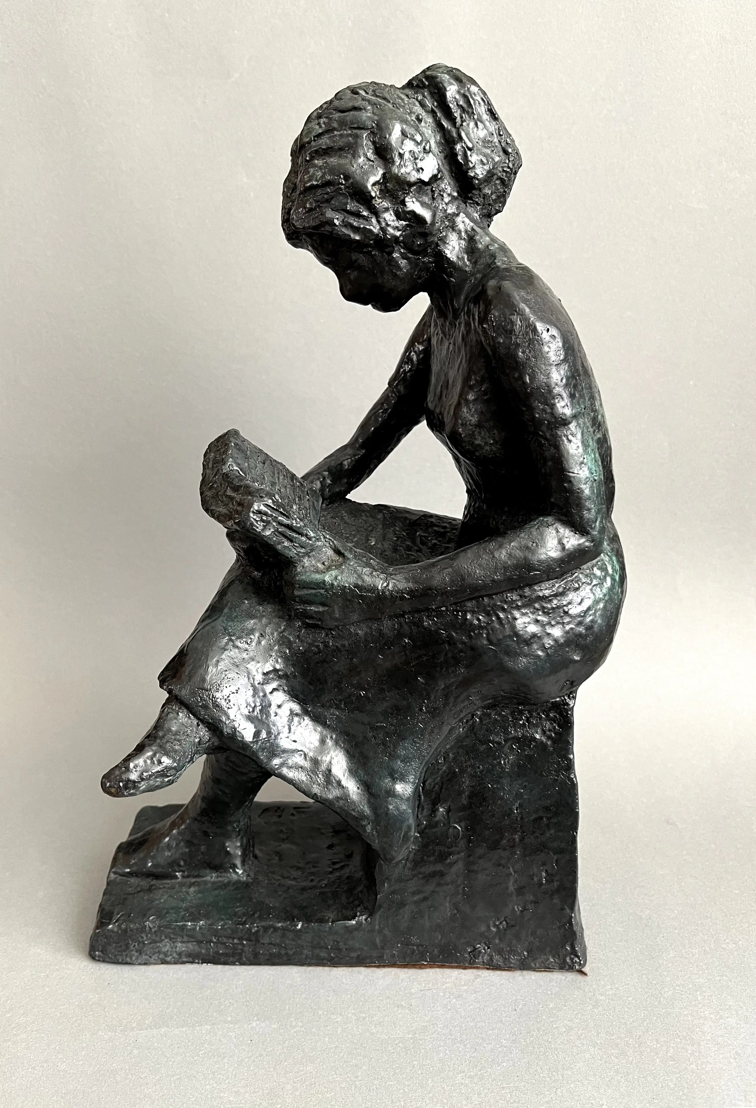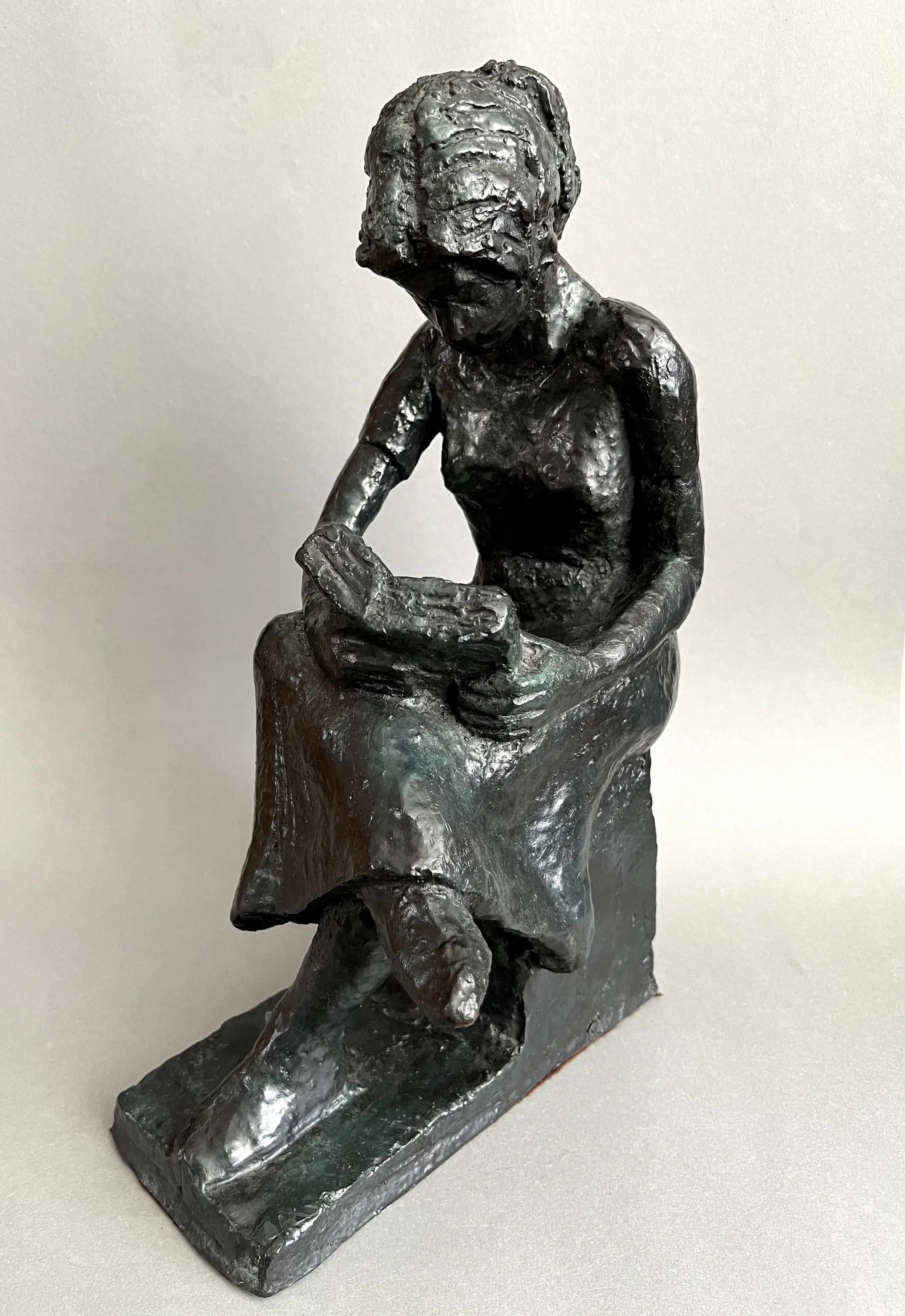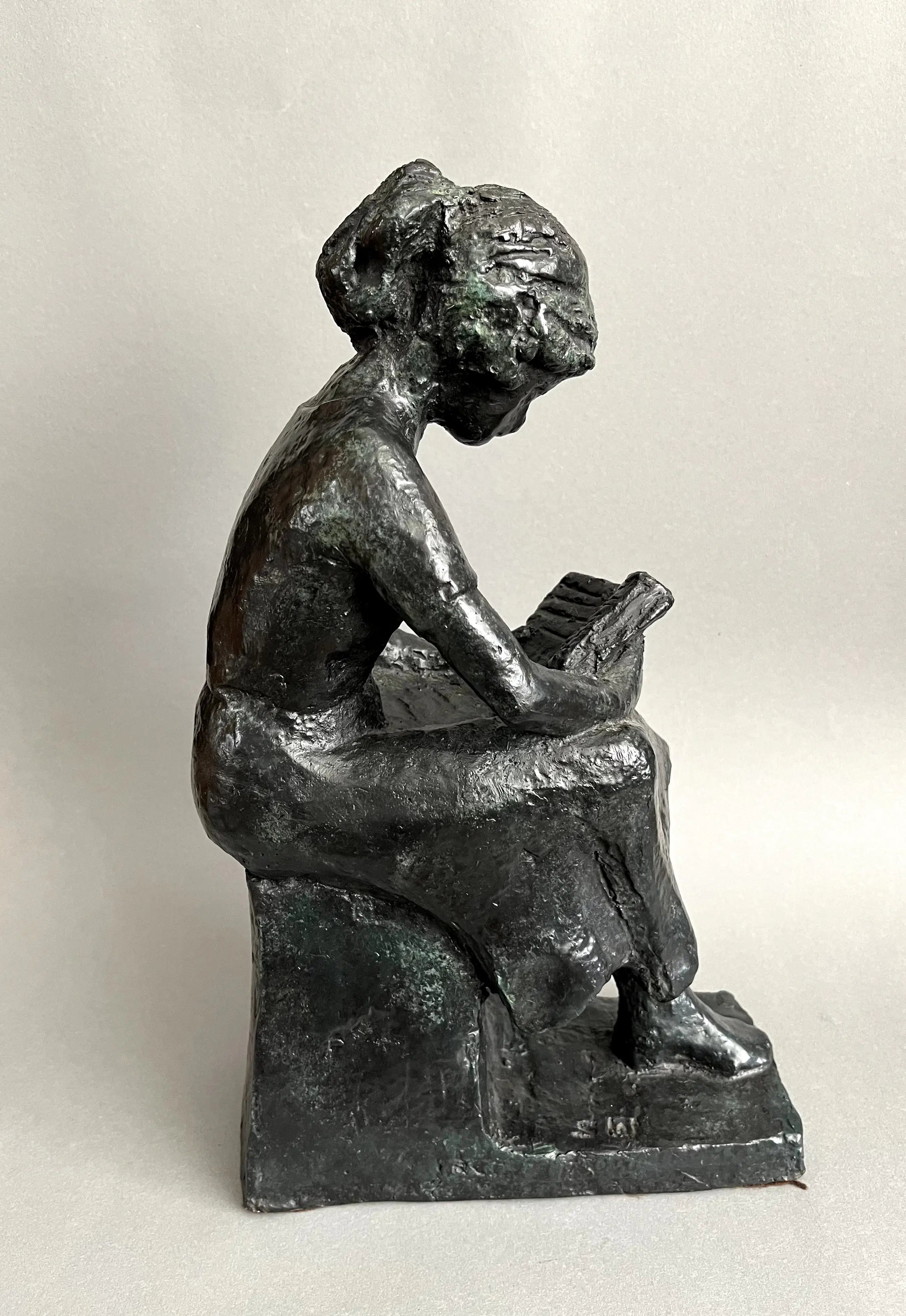 Mooi object van een jongedame in haar boek verzonken. Rustgevend beeld in houding en verhouding van de autodidact Siem Wardenaar.