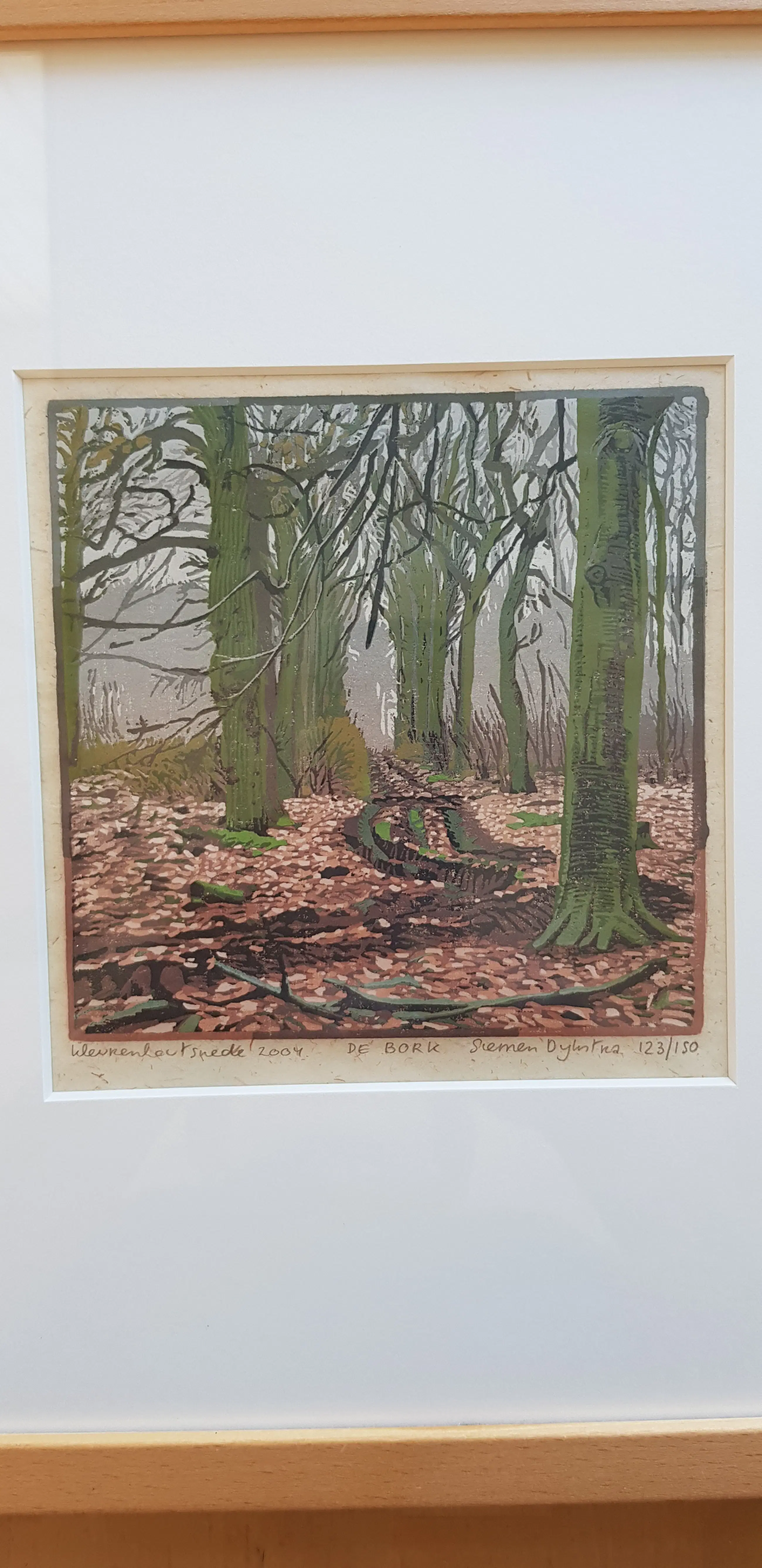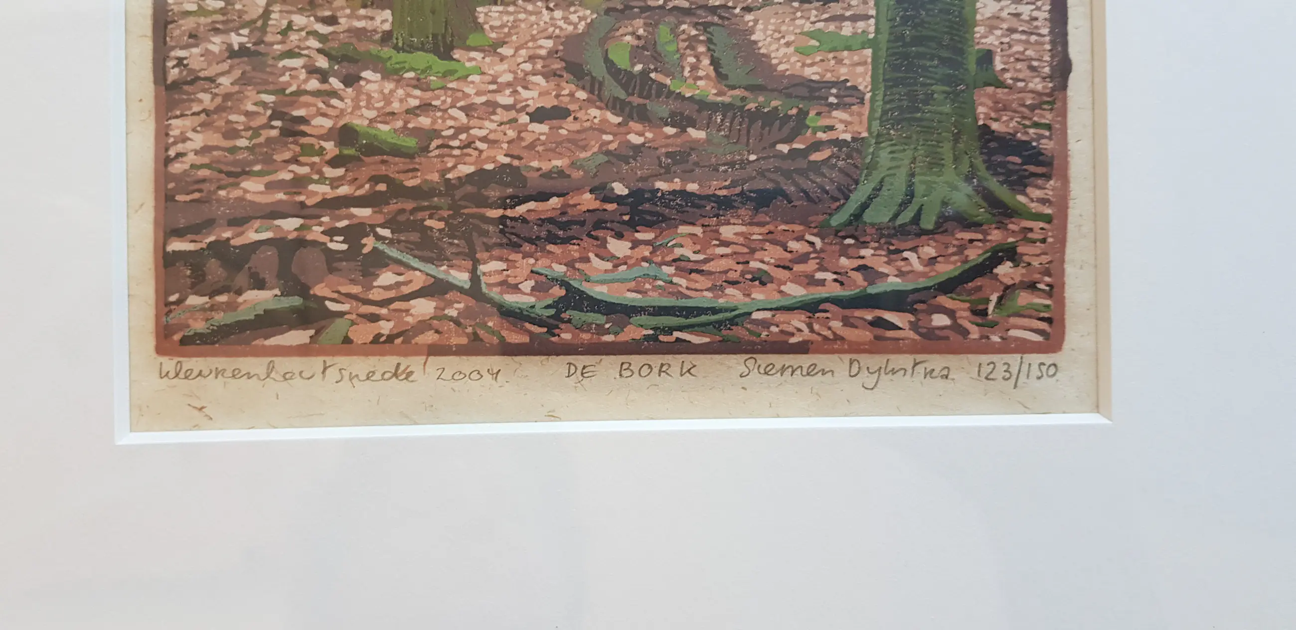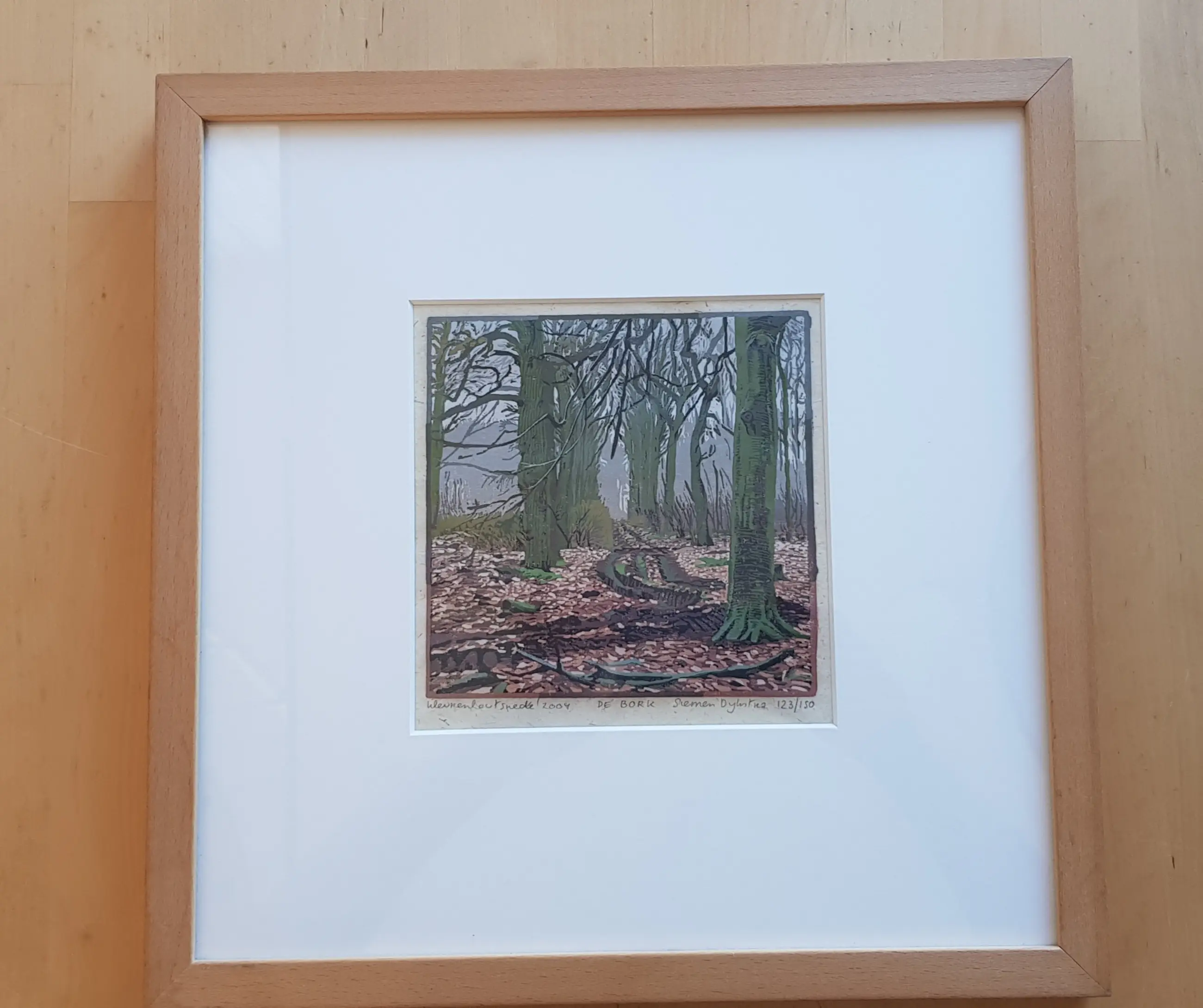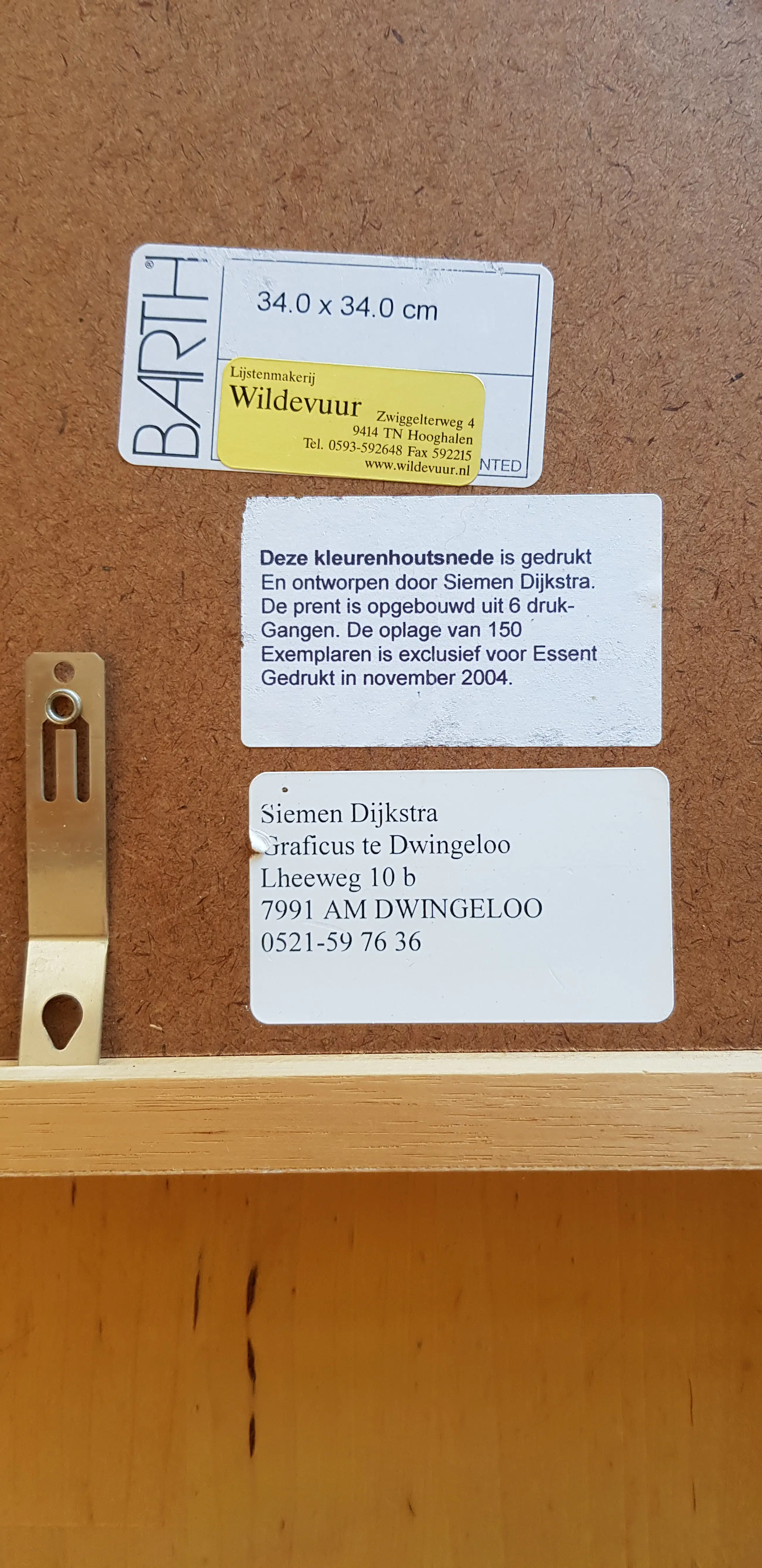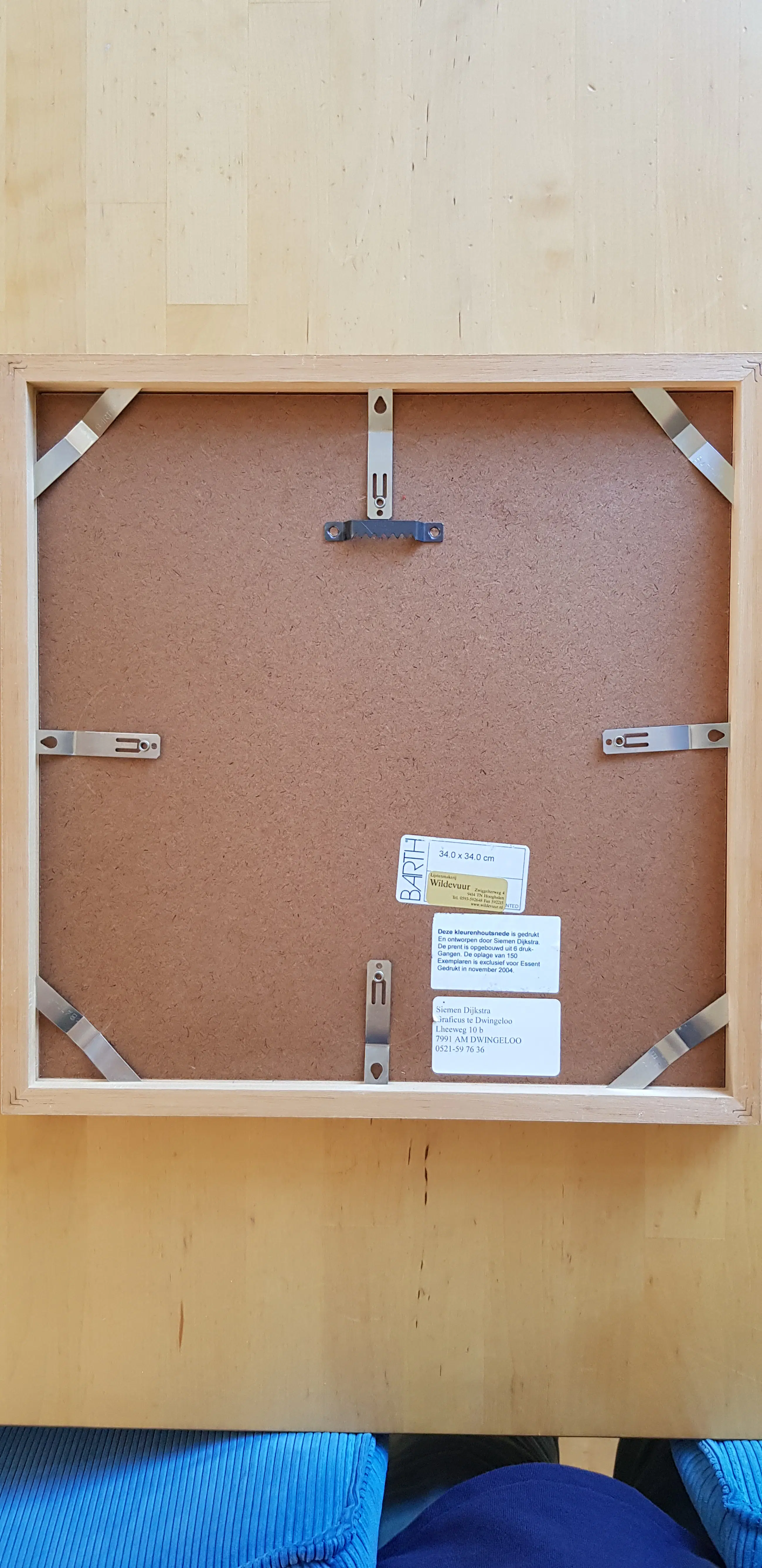Zeer mooie kleurenhoutsnede, opgebouwd uit zes drukgangen. In fraaie blankhouten lijst.