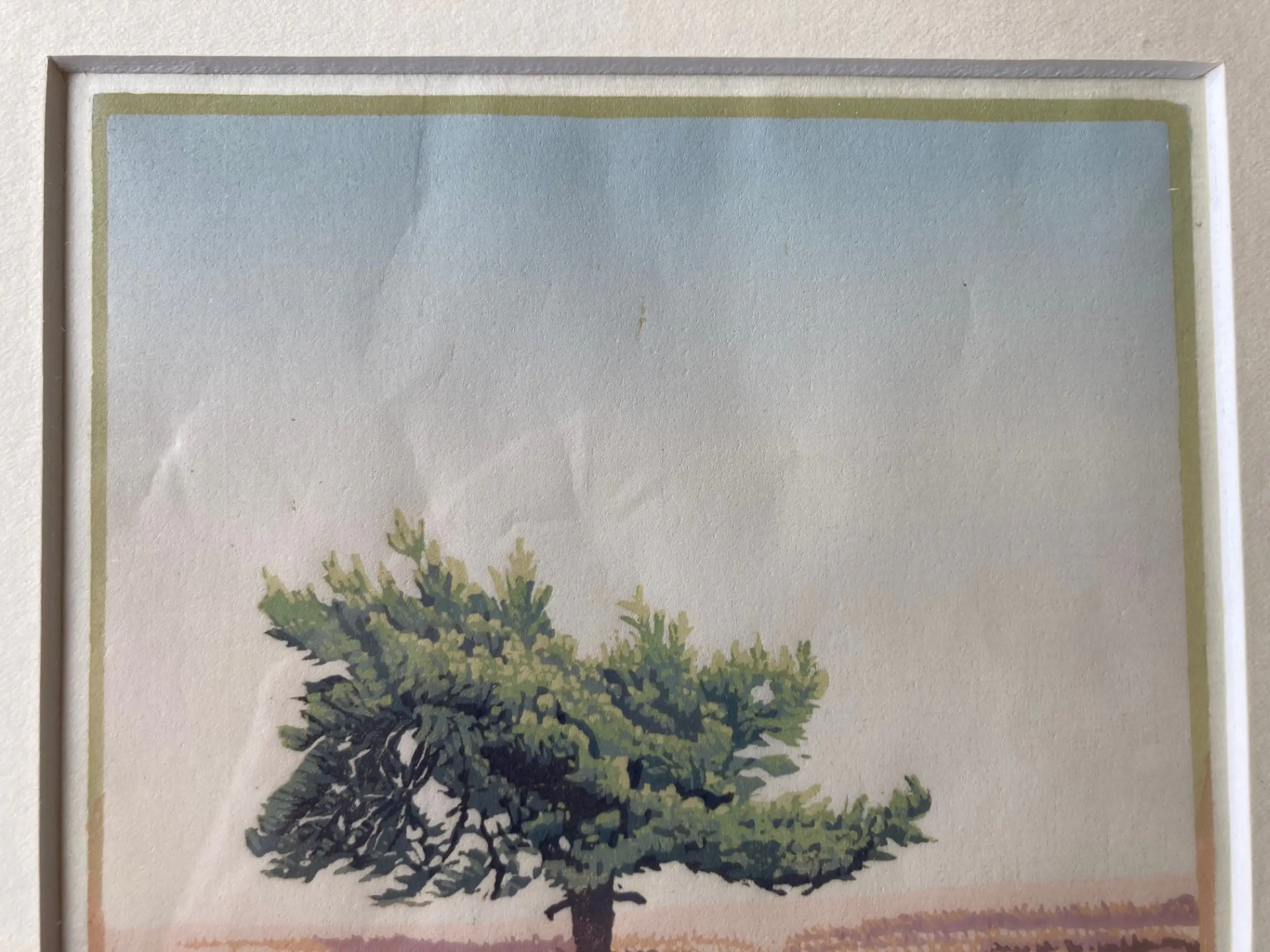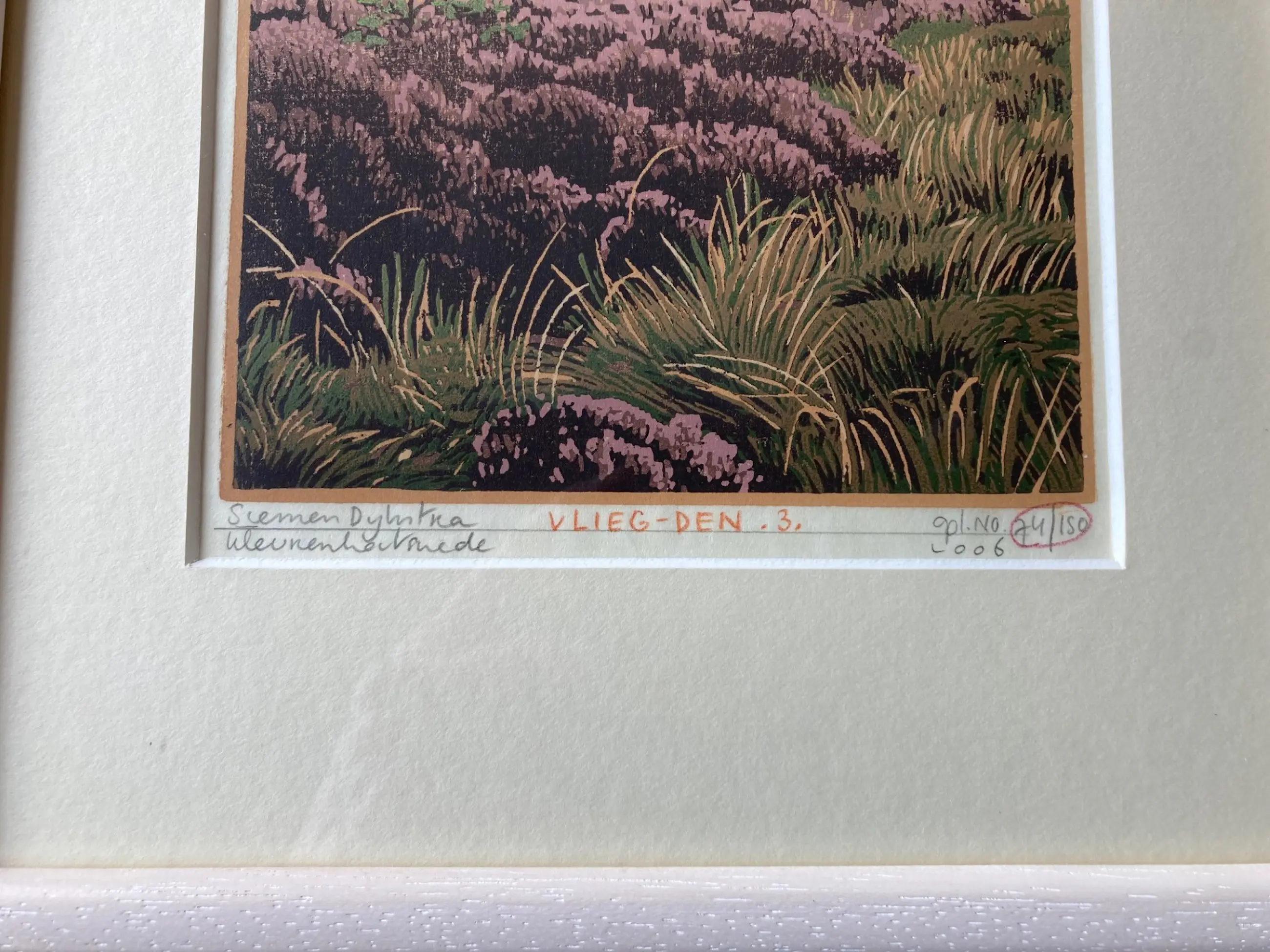 Kleurenhoutsnede, oplagenummer 74/150. Er zitten een paar heel lichte kreukels in het werk die te zien zijn bij directe lichtinval.