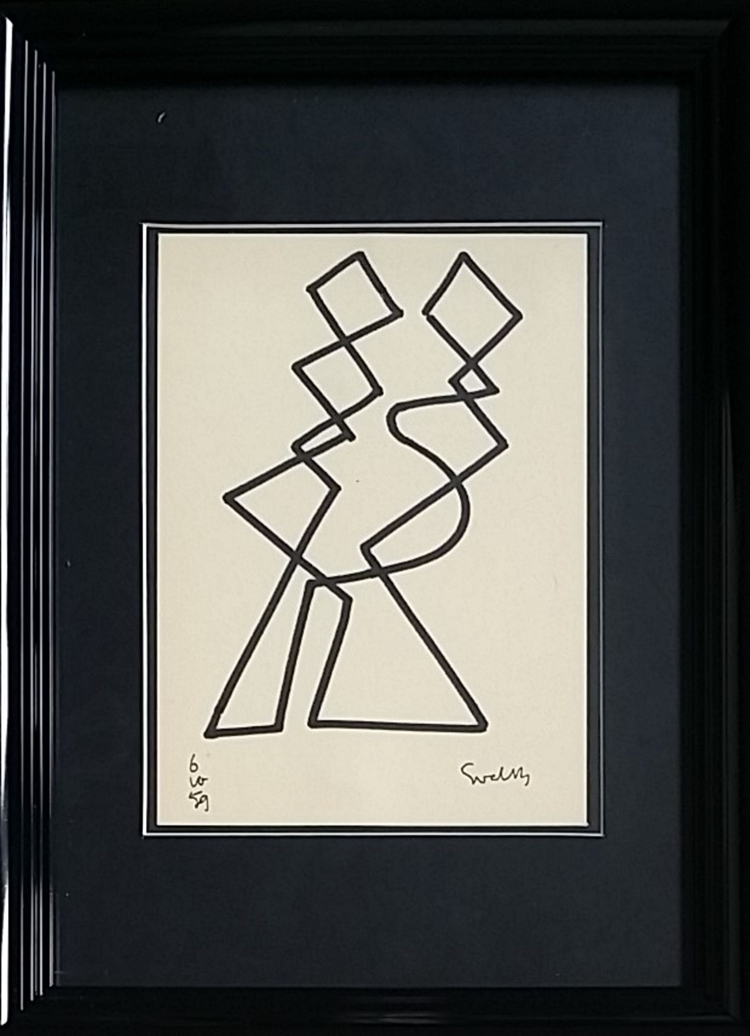 2 figuren - Tango dansenkunstwerkje in een mooie zwarte omlijsting met zuurvrij passe partout Afmeting zoals hierboven vermeld ( circa)Gesigneerd en met datum 6 10 59