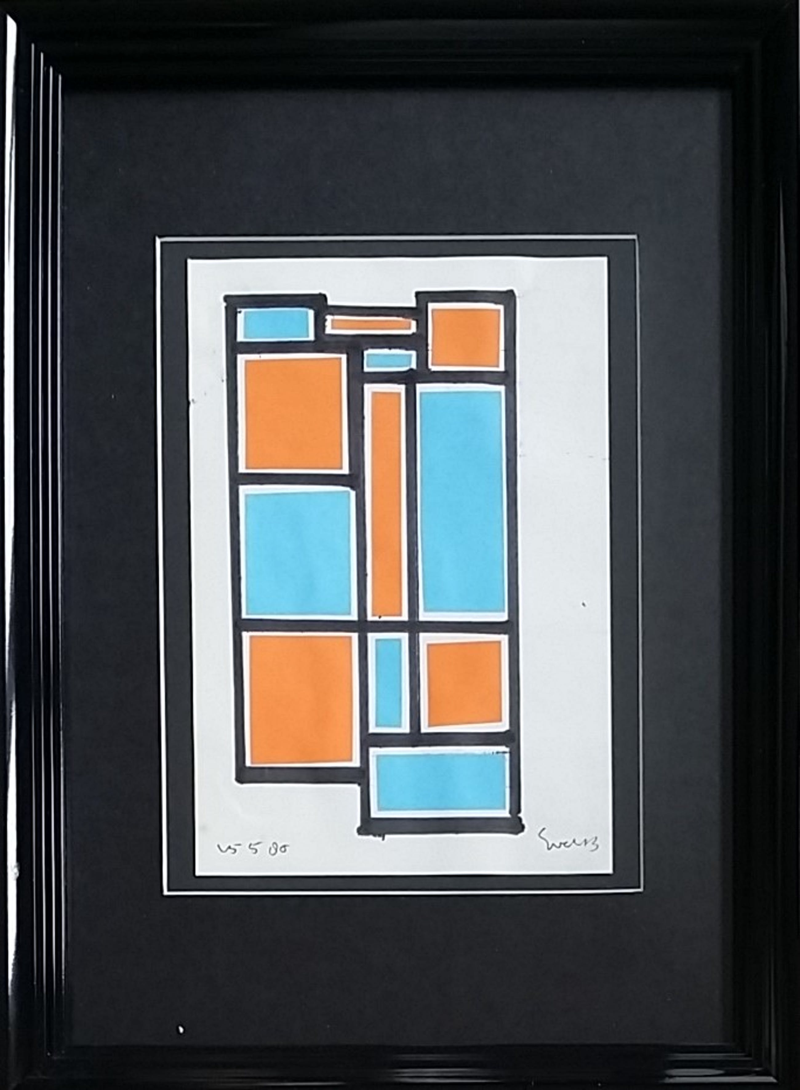 Mooie inkttekening en collage van Siep van den Berg abstract werkje in een mooie zwarte omlijsting met zuurvrij passe partout Afmeting zoals hierboven vermeld ( circa)Gesigneerd en met datum links 15 5 80