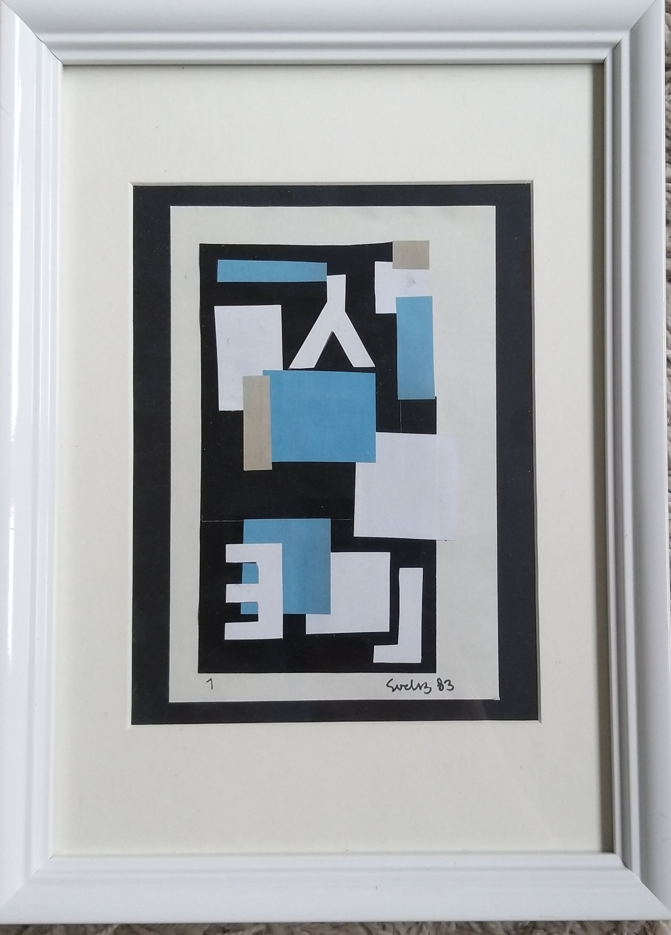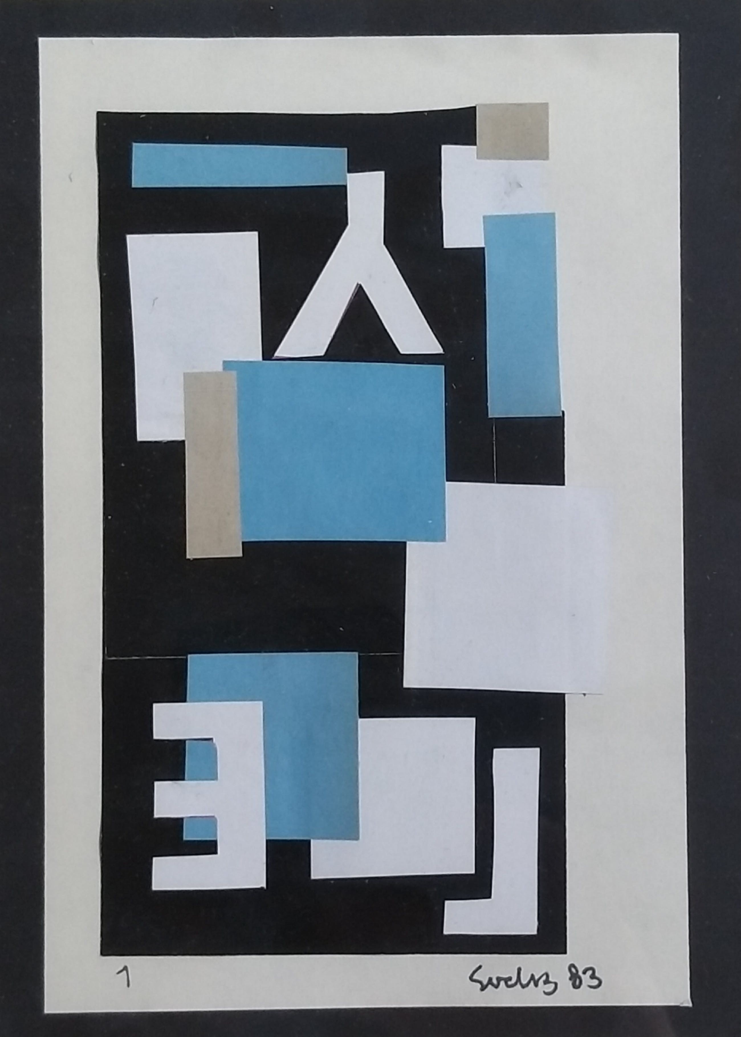 Collage op papier Gesigneerd en gedateerd 83 Afmeting plus minus zoals boven beschreven