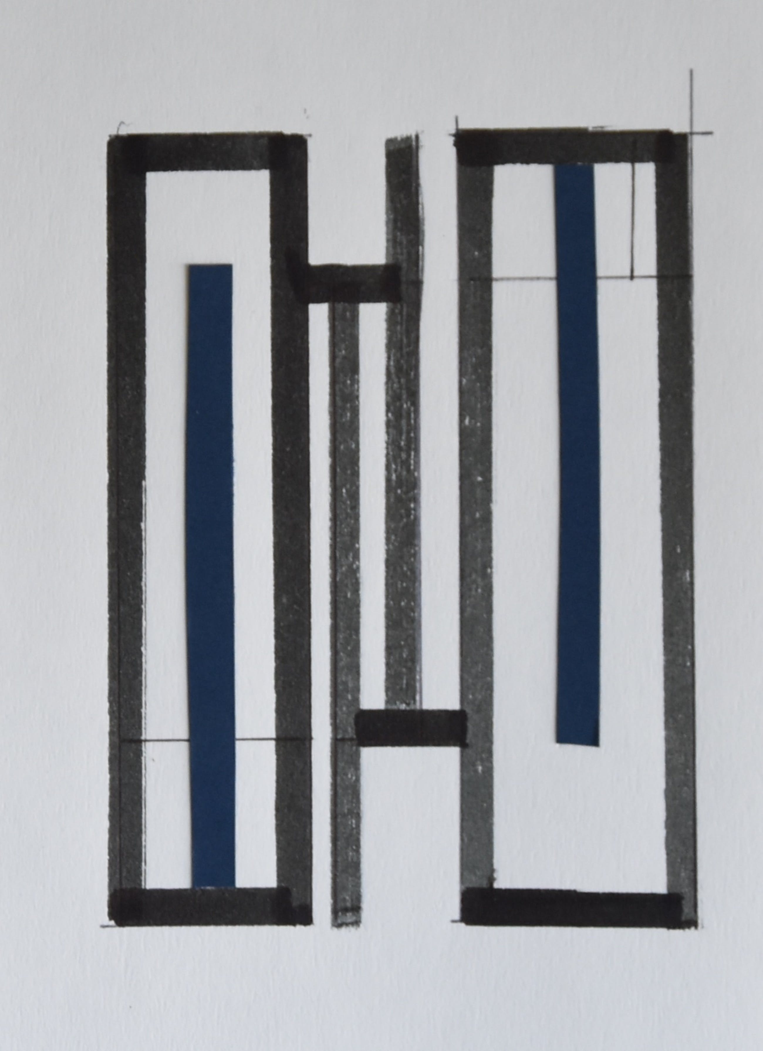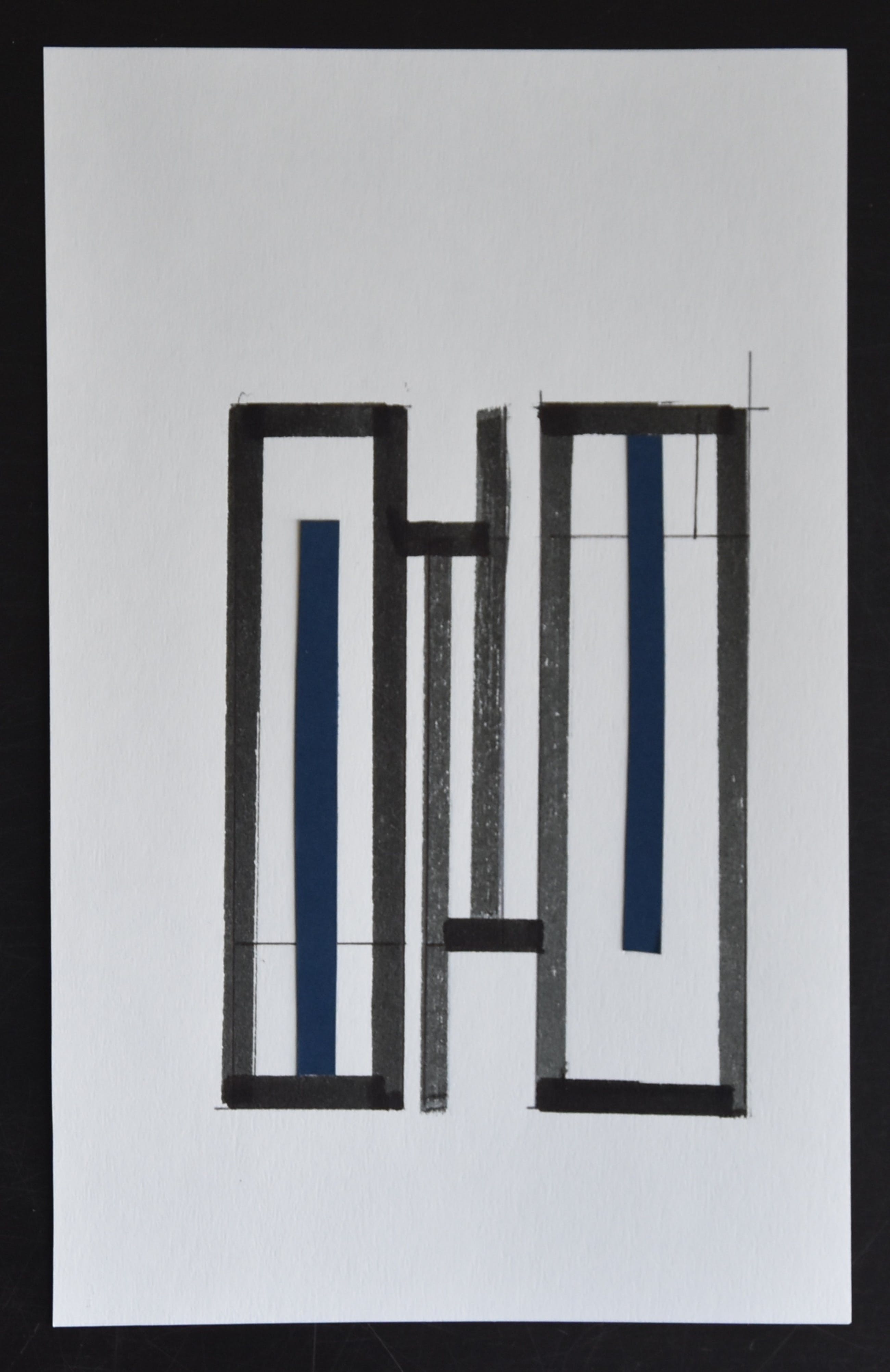 | Prachtig opgezette constructivistische collage uitgevoerd in oostindische inkt en blauw papier | |||