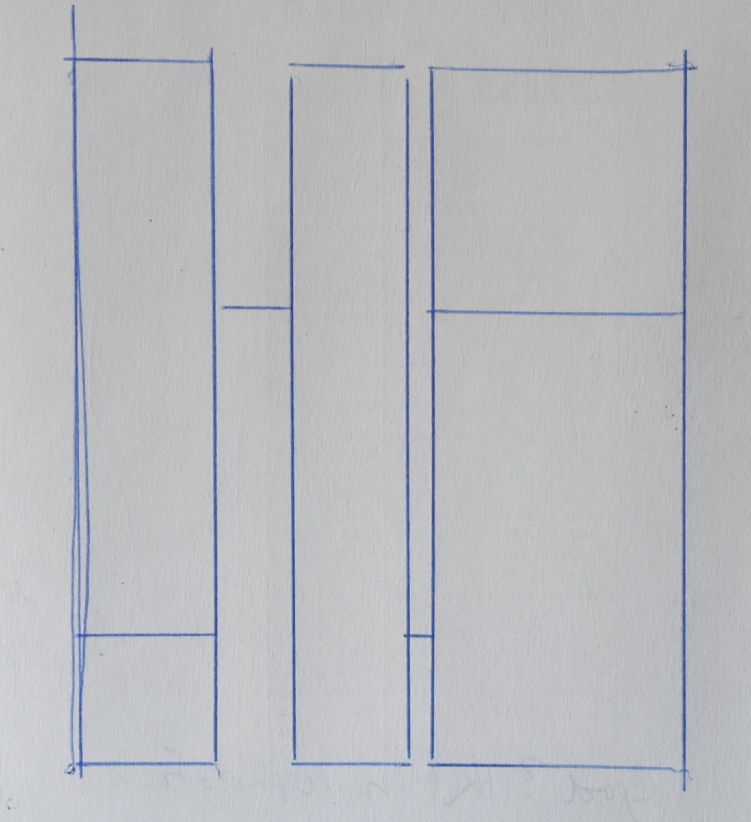Constructivistische tekening door Siep van den Berg. Pentekening. Aan de achterzijde een krantenartikel van de Volkskrant van 1 december 1990 met daaronder een door vd berg geschreven tekst in zwarte inkt