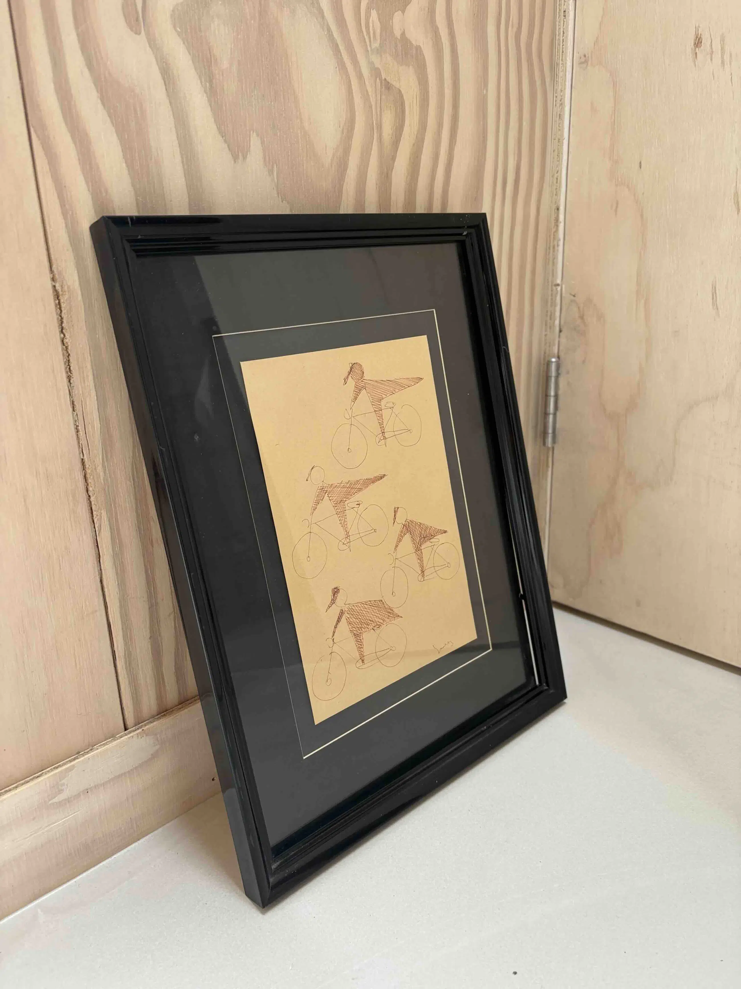 Siep van den Berg - originele pentekening uit 1954-1955. Titel is: Cyclists- Tour de France. Gesigneerd aan de rechteronderkant. Omlijst met een zwart passe-partout.