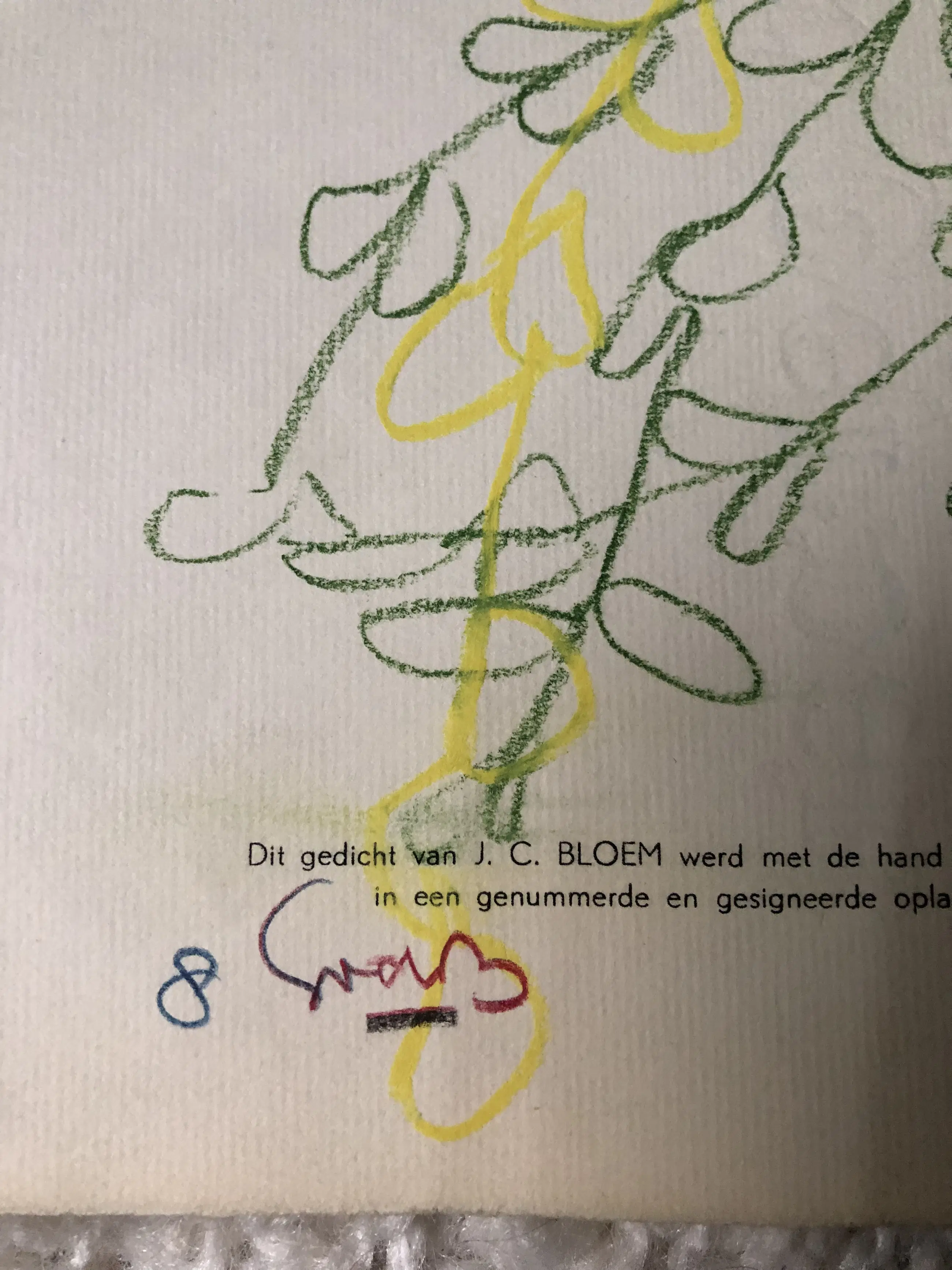 Ingekleurd gedicht uit 1953 door Siep van de Berg uit 1980 Gedicht komt uit 1953 Gesigneerd