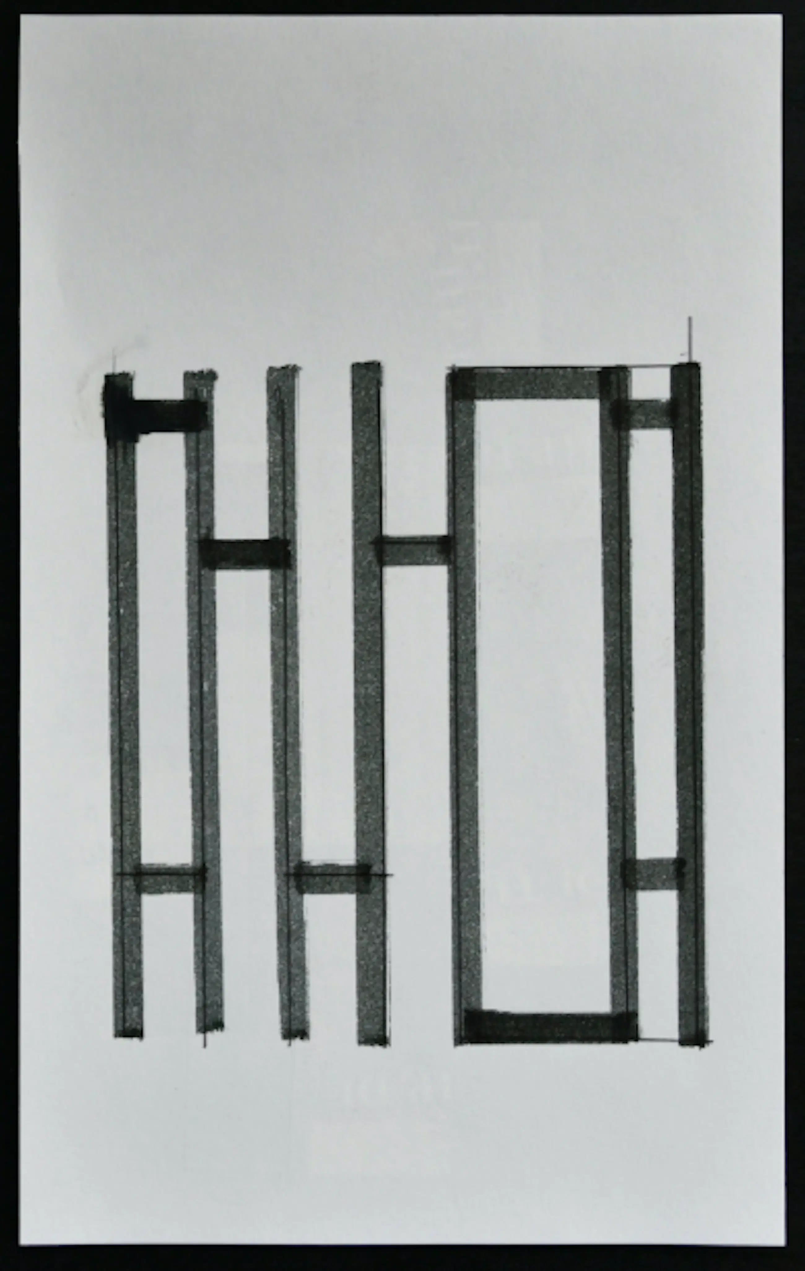 Recto mooie pentekening in potlood en inkt door Siep van den Berg. Pentekening in oost indische inkt . Verso zijde abstracte compositie collage + pen tekening.
