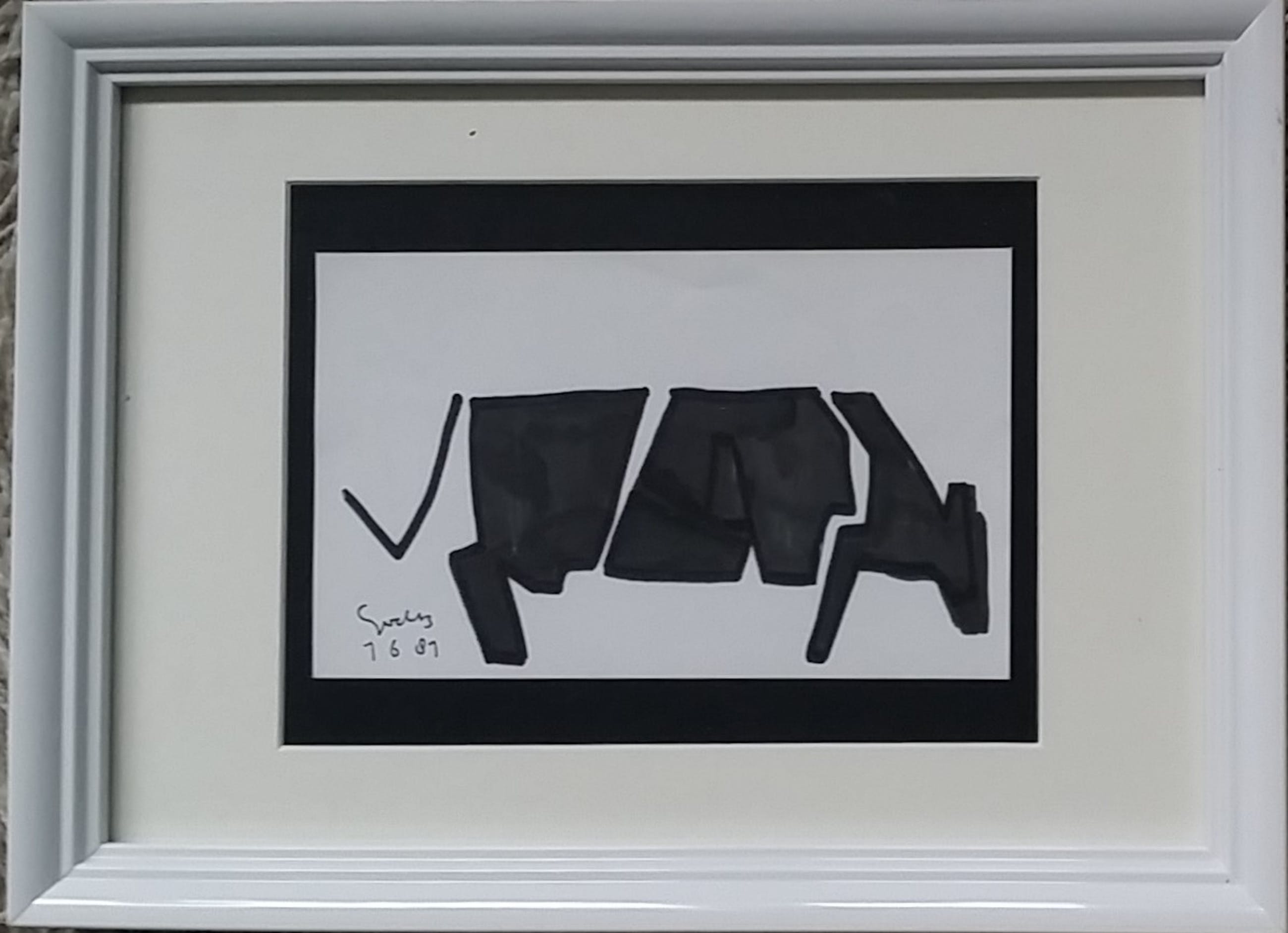 Originele inkt op papier van Siep van den Berg uit +/-1981Titel : koe Afmeting : +/- 18 x 13 cm Gesigneerd en gedateerd 1 6 1981 Ingelijst en onder zuurvrij passepartout