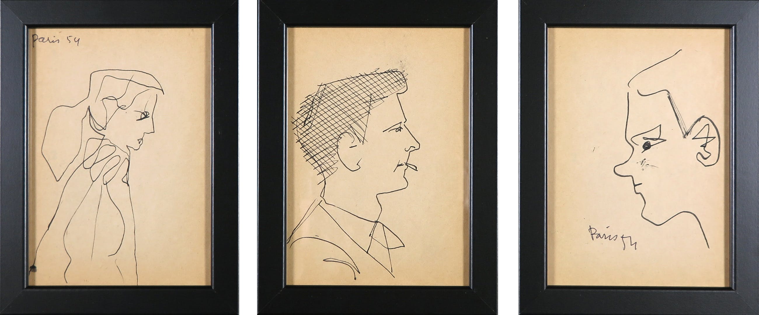 Siep van den Berg - Lot van drie tekeningen, Portretten en profil - Ingelijst kopen? Bied vanaf 1!