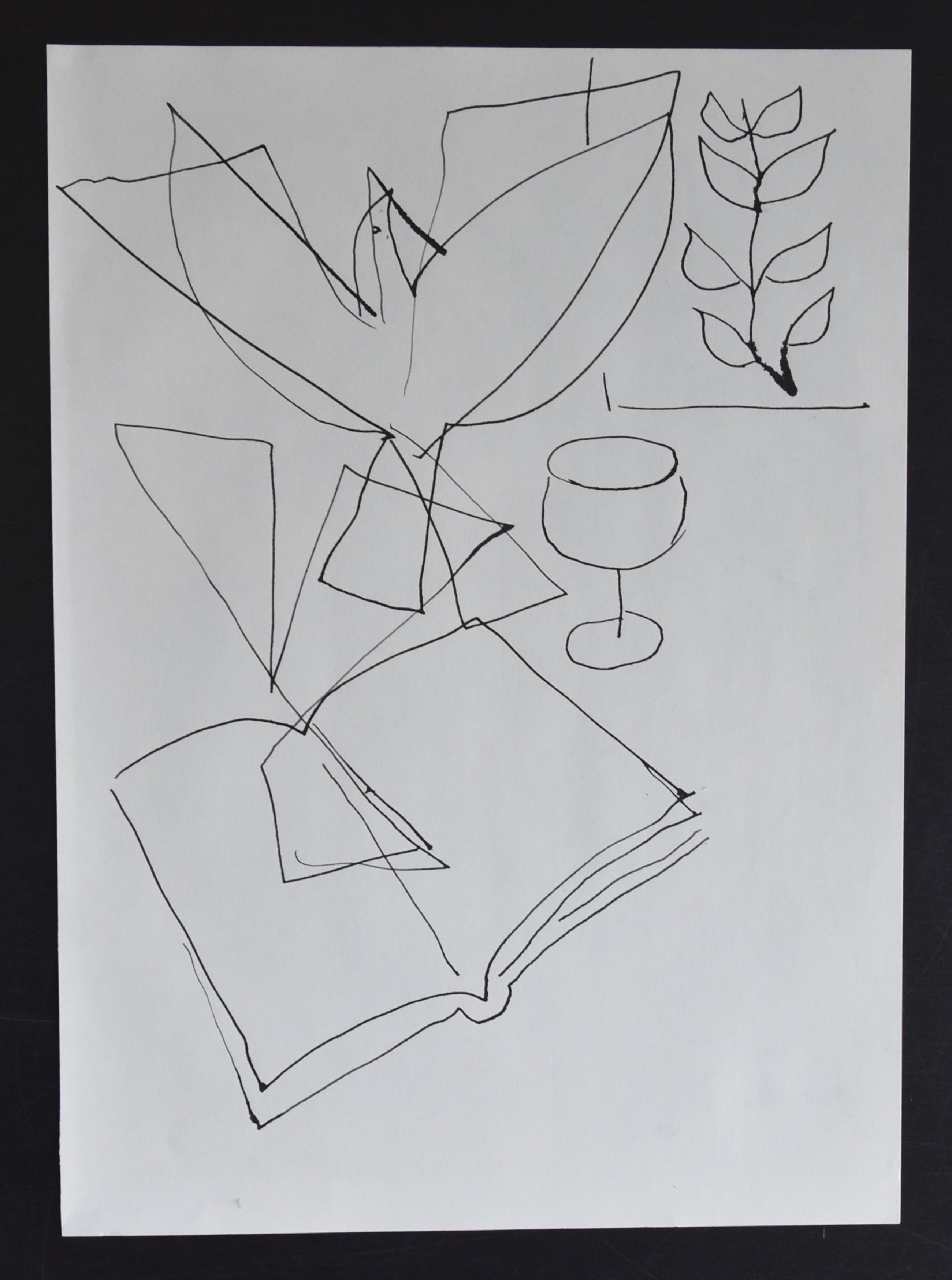 | Mooi uitgewerkte tekening waarbij de vredesduif loskot uit een boek. een van de weinige tekeningen uit het schetsboek waar Siep van den berg NIETS heeft bijgeschreven. Conditie is uitstekend. | |||