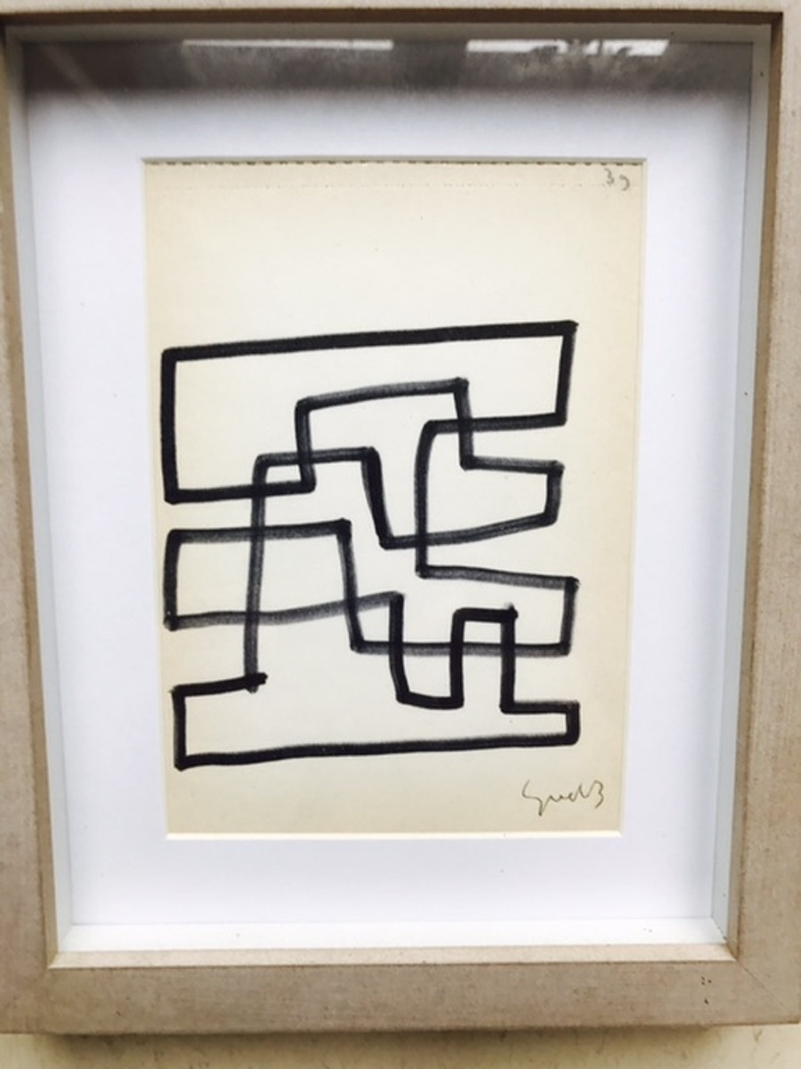 Dit werk is getiteld : Geometrische constructie en meet 20 bij 15 cm. Het is tevens gesigneerd rechtsonder aan.