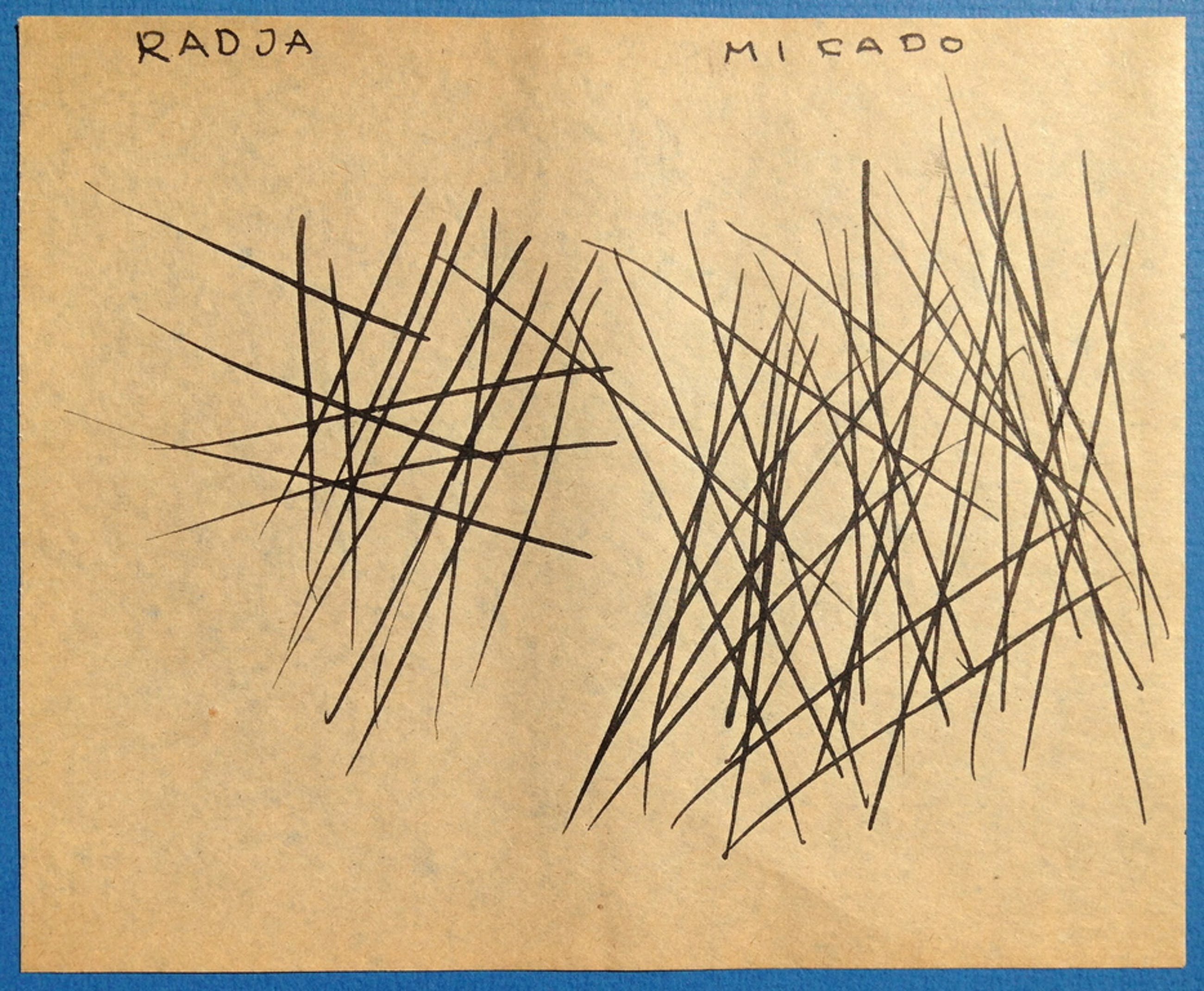 Bijzondere tekening uit 1956 van Siep van den Berg. Micado is een thematiek die Van den Berg zelden heeft gebruikt in zijn oeuvre. Boven de handgeschreven titel " Radja Micado"