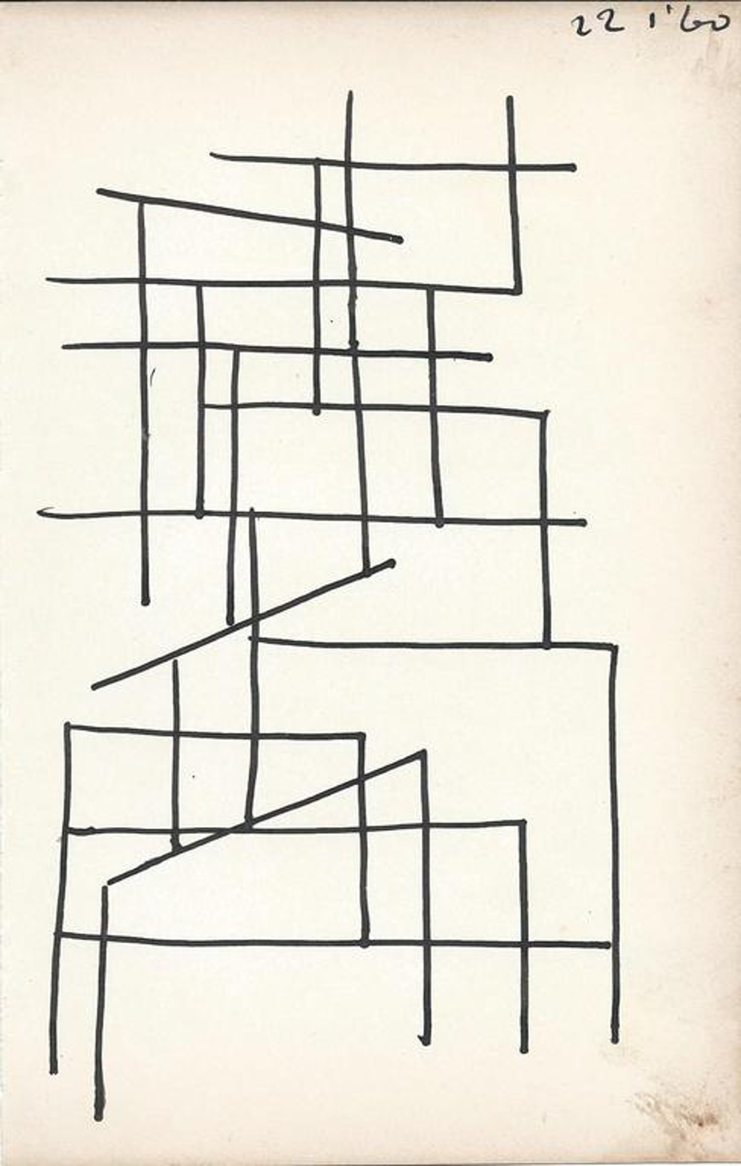 1 originele inkttekening (zwarte inkt enrechtsboven gedateerd 22-01-1960) op papier , mooie compositie afkomstig uit reeks tekeningen uit de periode 1959-1960