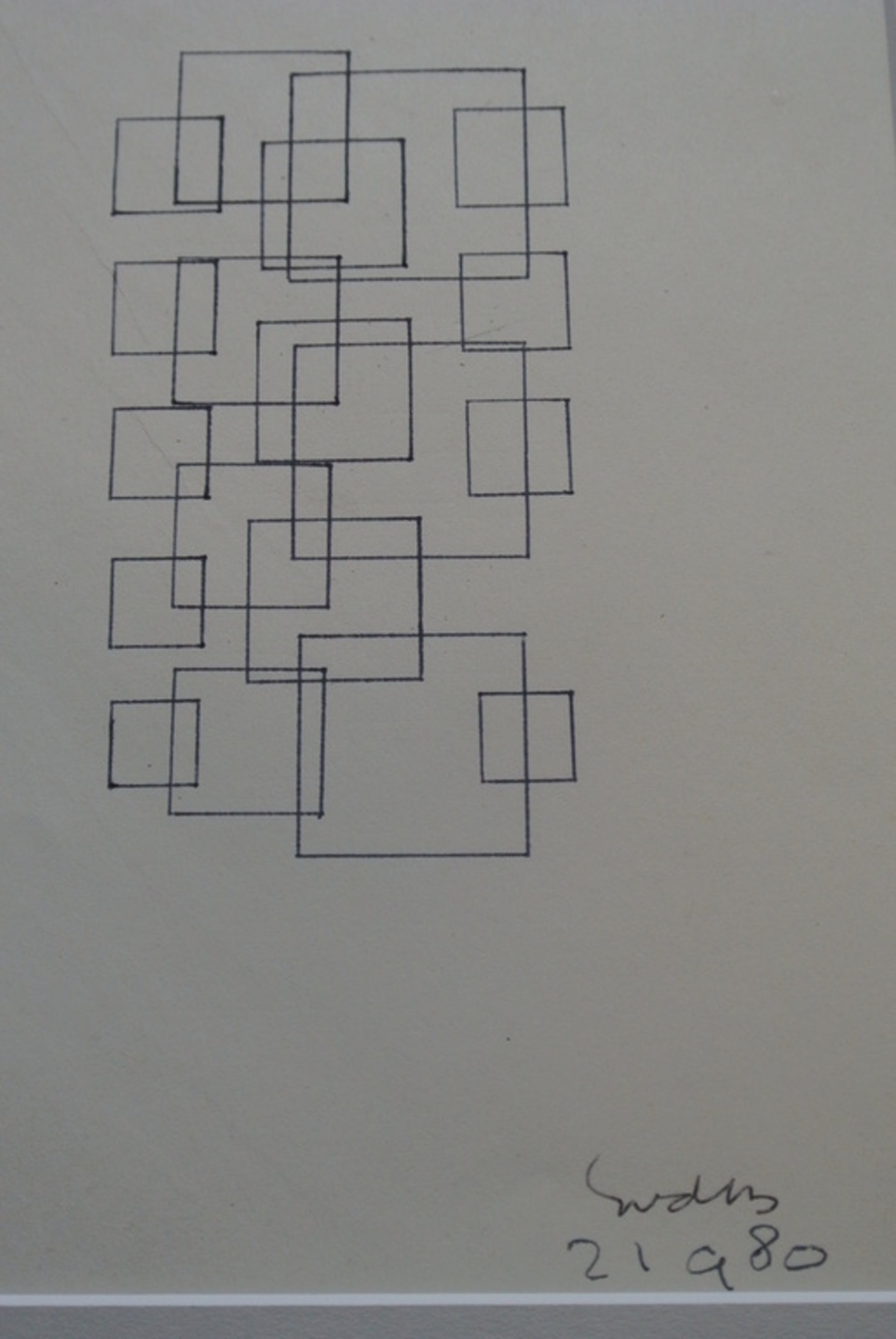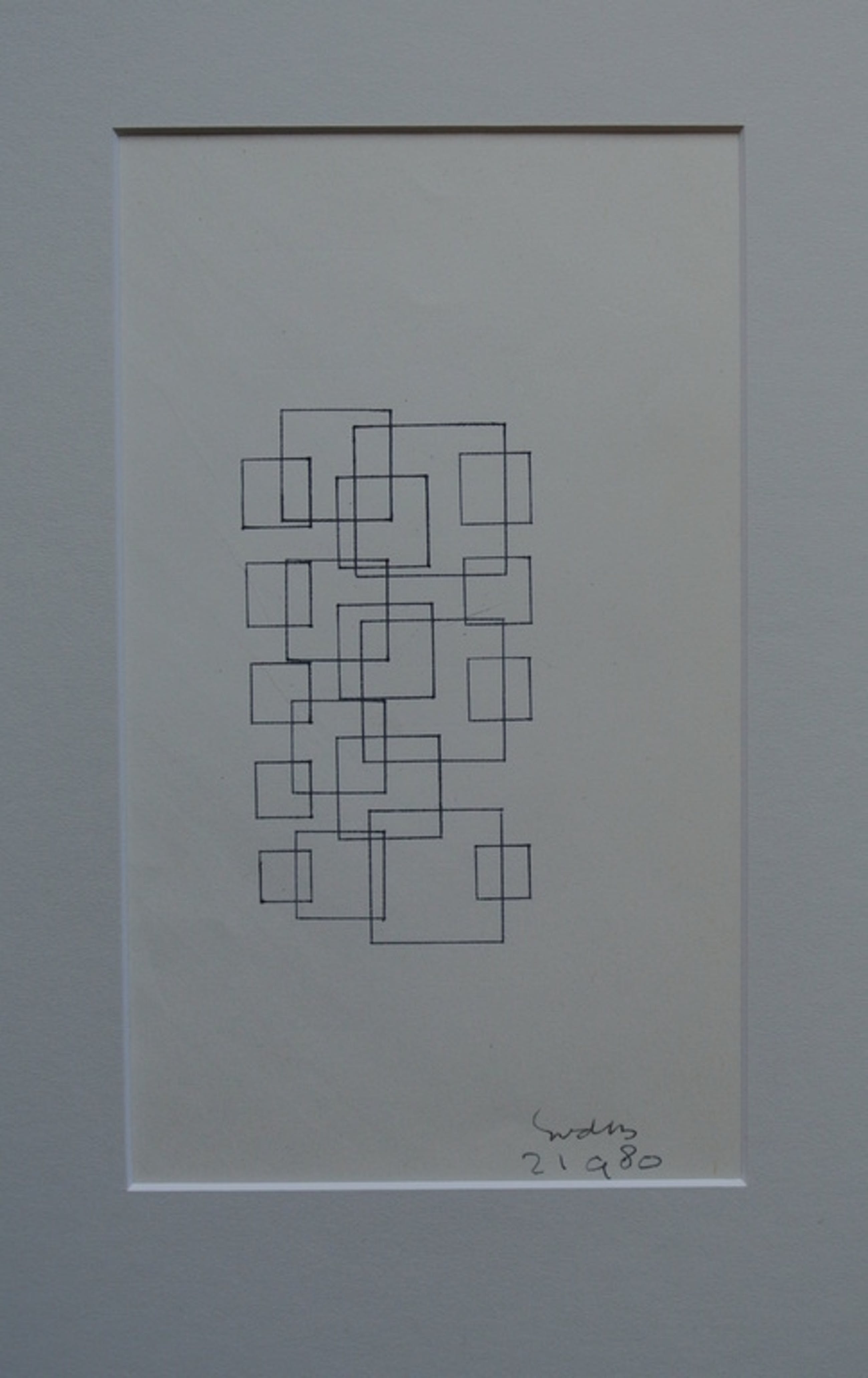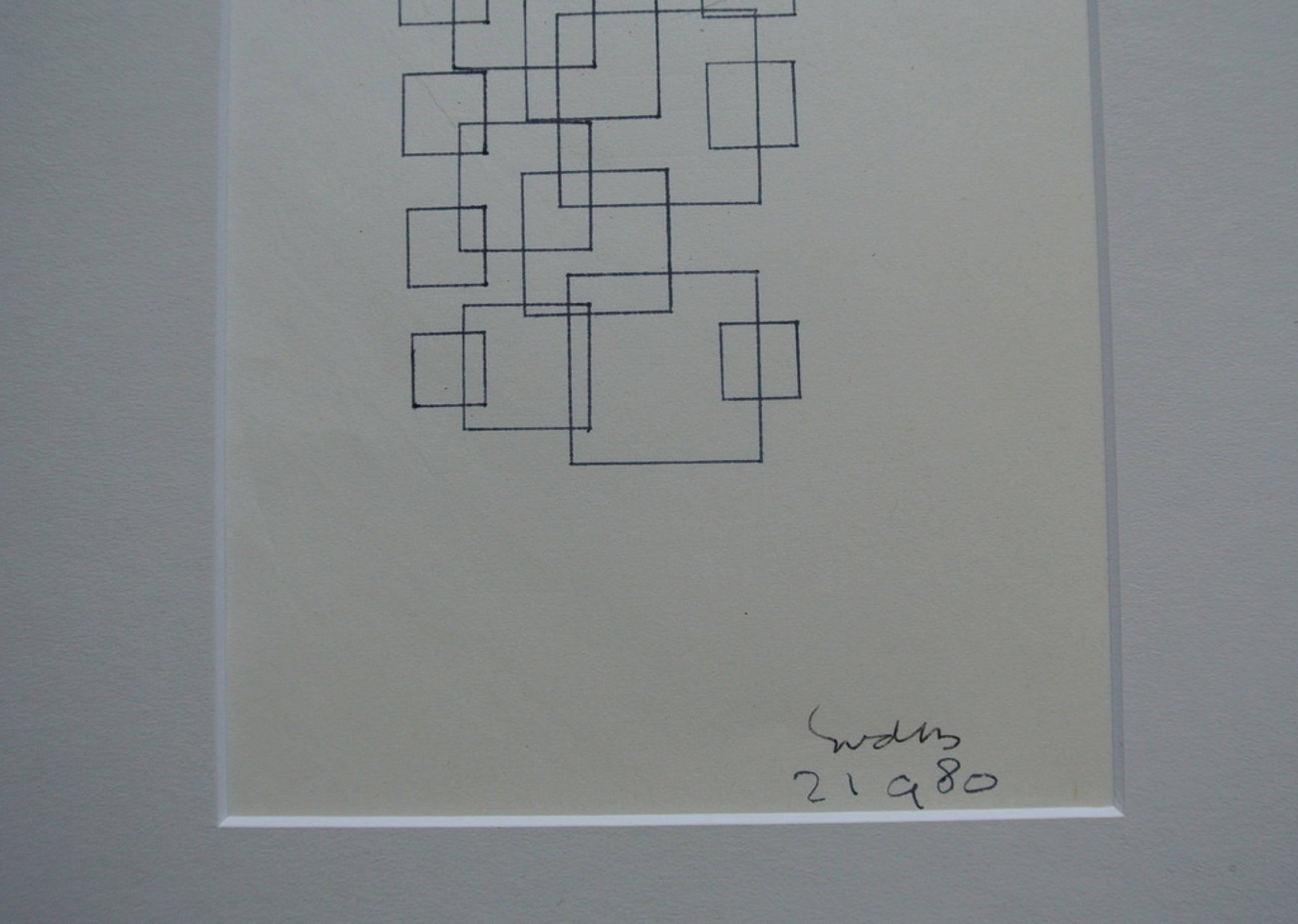 Op zoek naar het ultieme grotere werk tekende hij in zijn atelier heel veel voorbereidende schetsen. Vele uren per dag besteedde hij om, met zijn enorme vakmanschap, tot een bevredigend resultaat te komen. Geometrie was zijn thema en deze tekening is een variatie hier op.