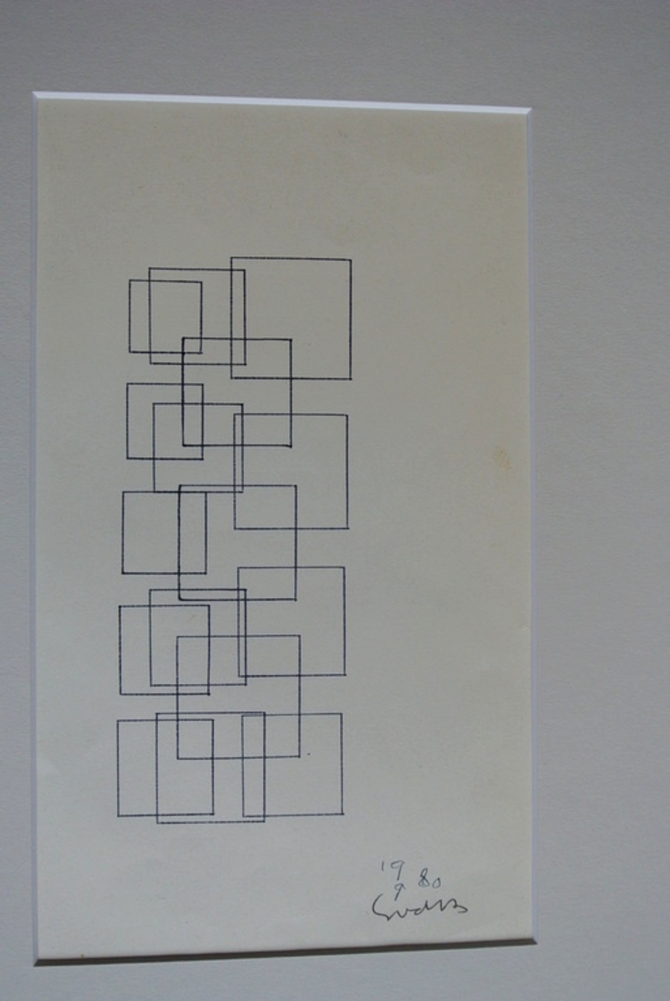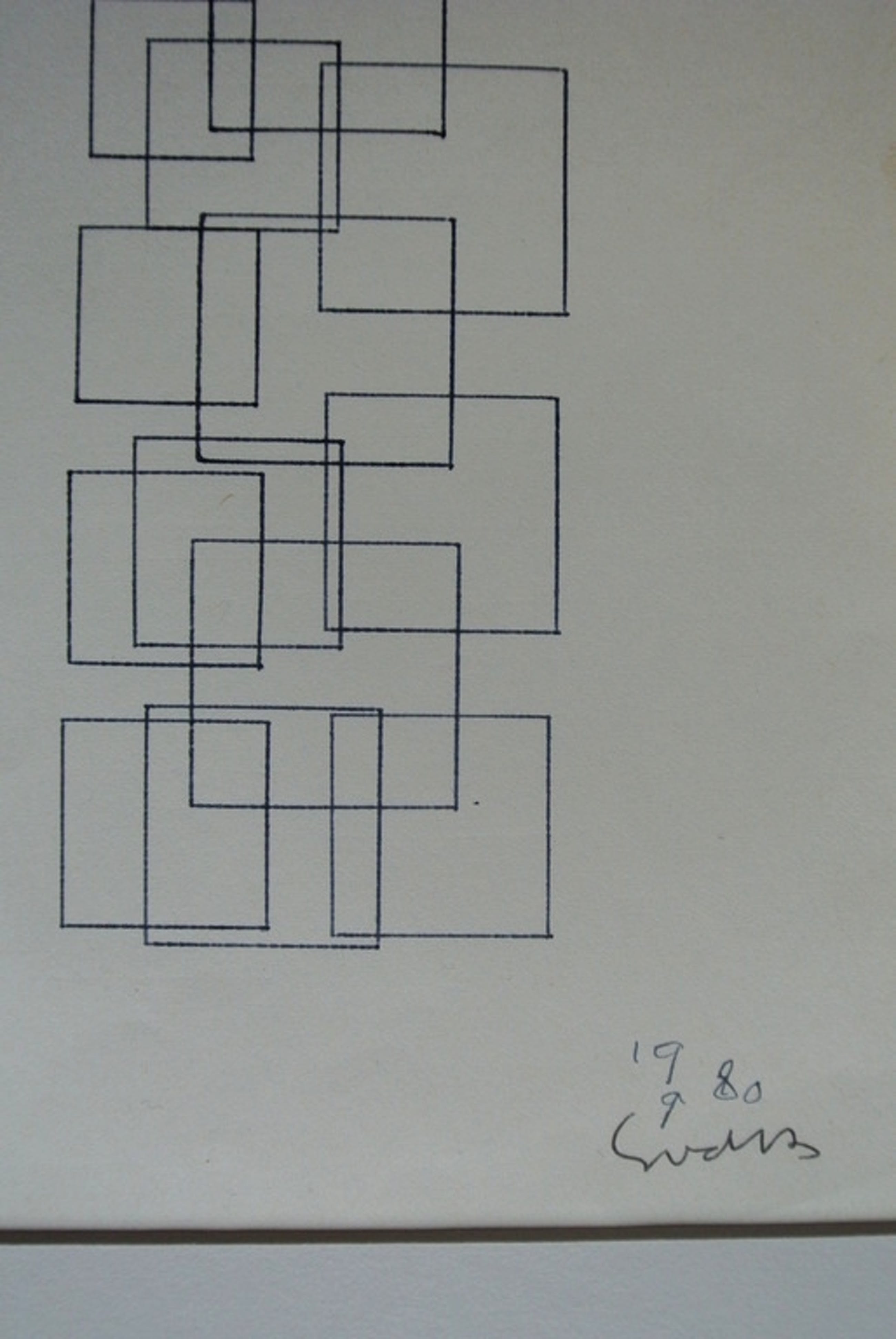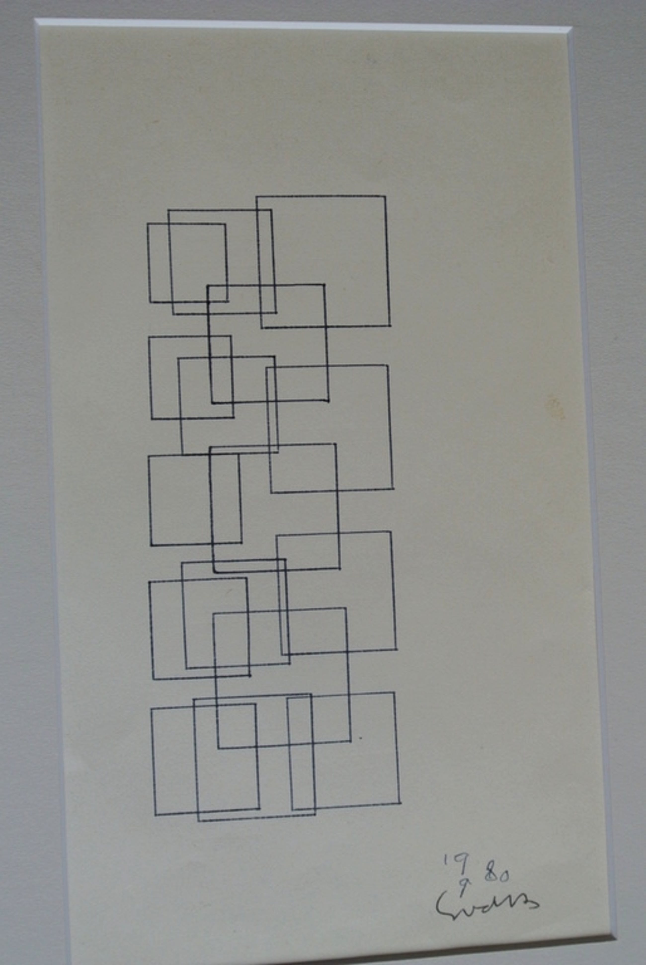 Op zoek naar het ultieme grotere werk tekende hij in zijn atelier heel veel voorbereidende schetsen. Vele uren per dag besteedde hij om, met zijn enorme vakmanschap, tot een bevredigend resultaat te komen. Geometrie was zijn thema en deze tekening is een variatie hier op.