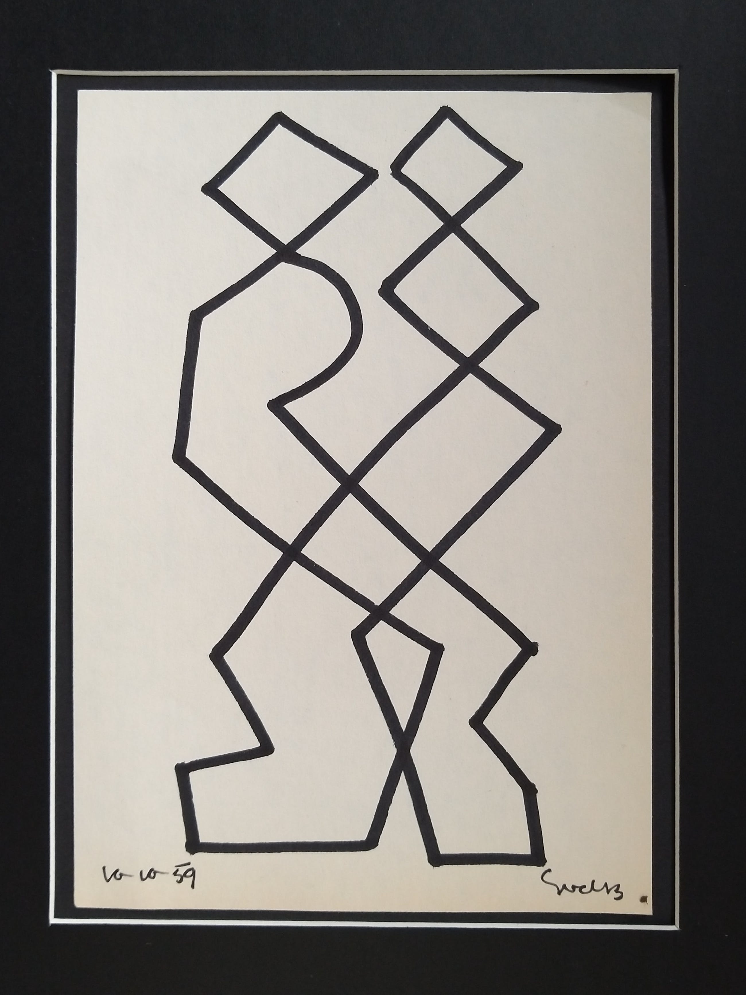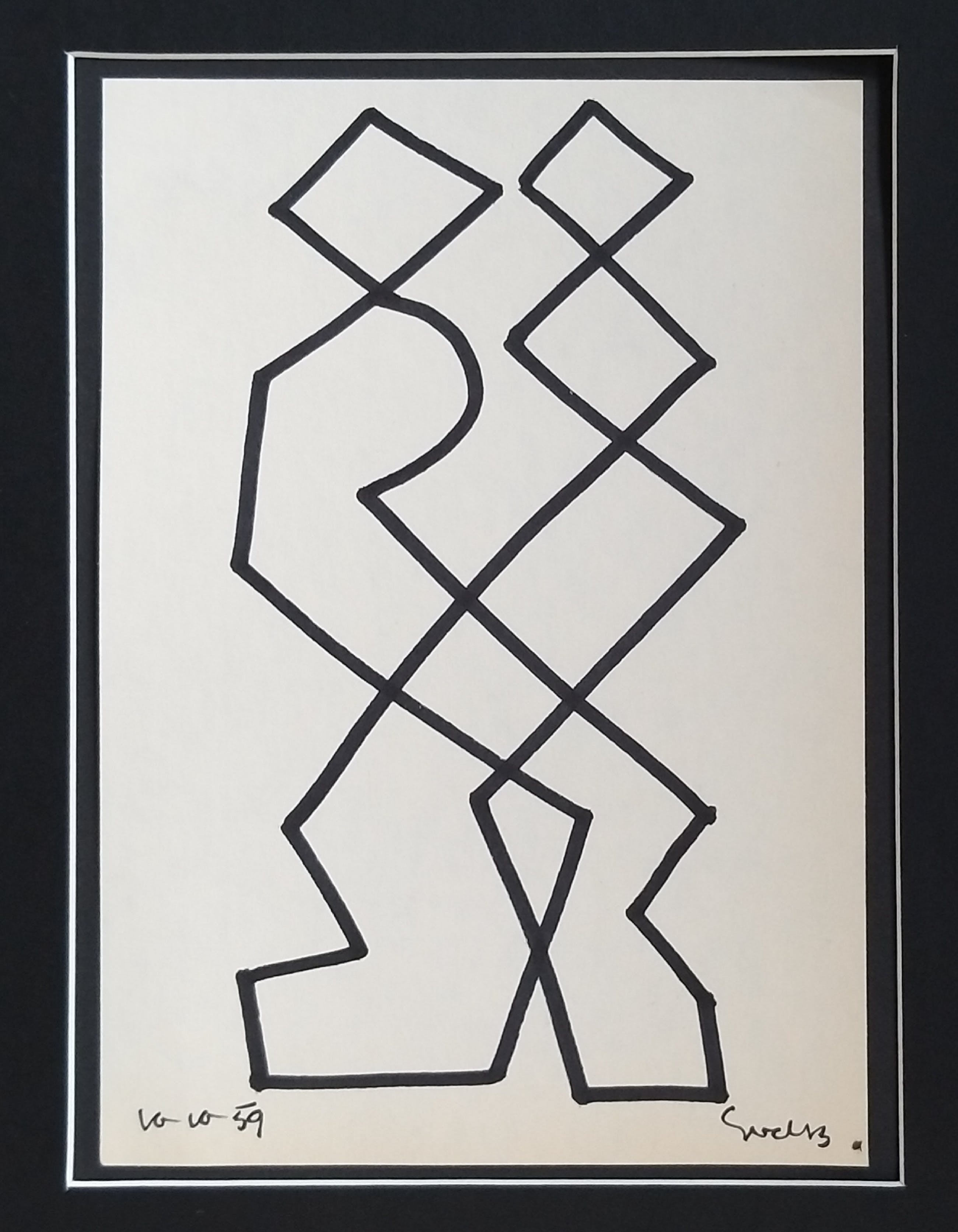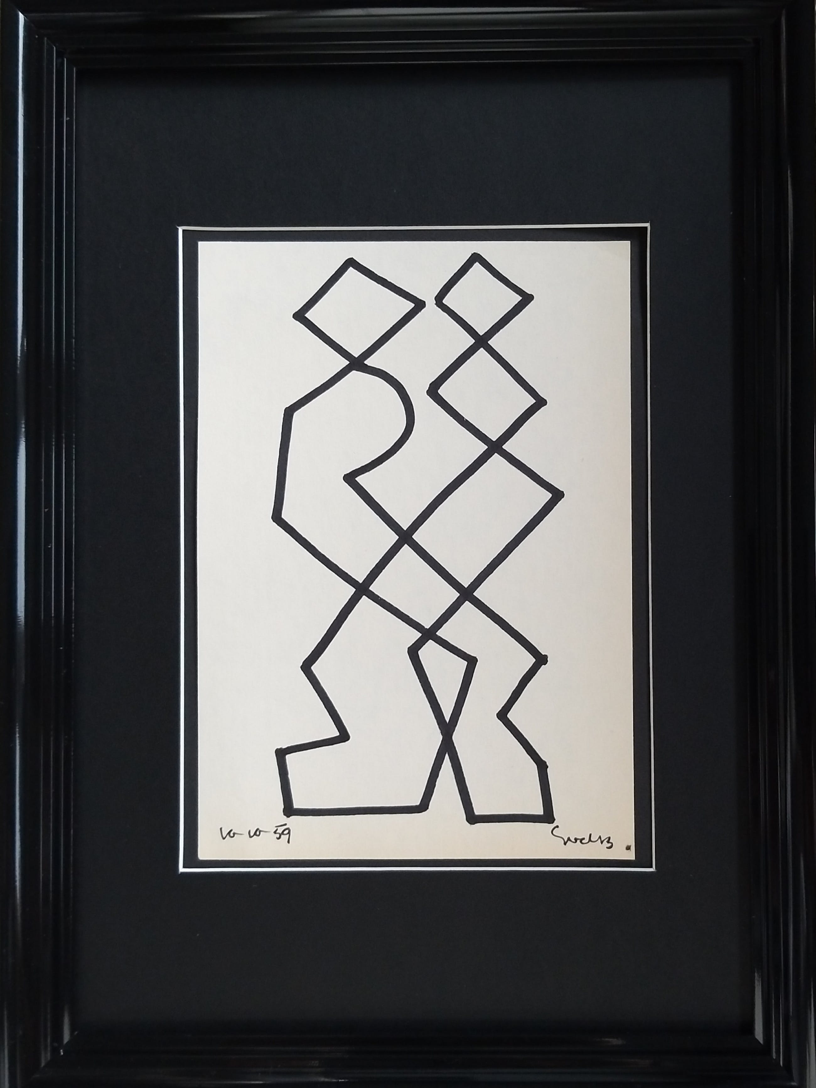 Originele inkt op papier van Siep van den Berg uit +/-1959 Titel : Tango dansen Afmeting : +/- 18 x 13 cm Gesigneerd en gedateerd 10 10 59 Ingelijst en onder zuurvrij passepartout