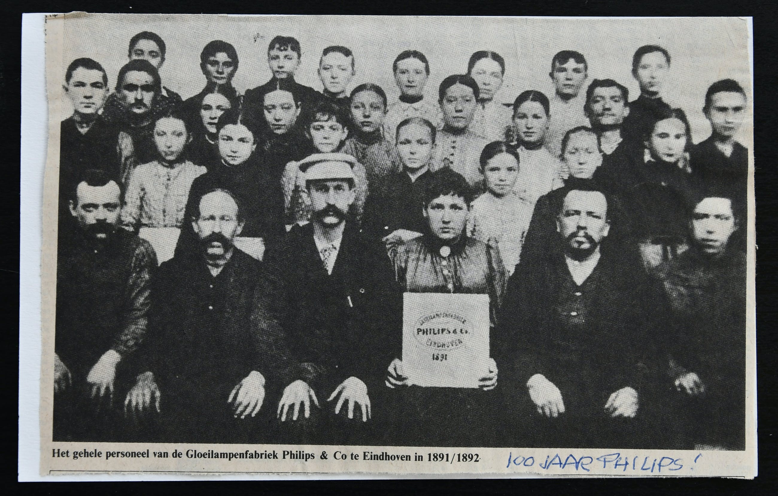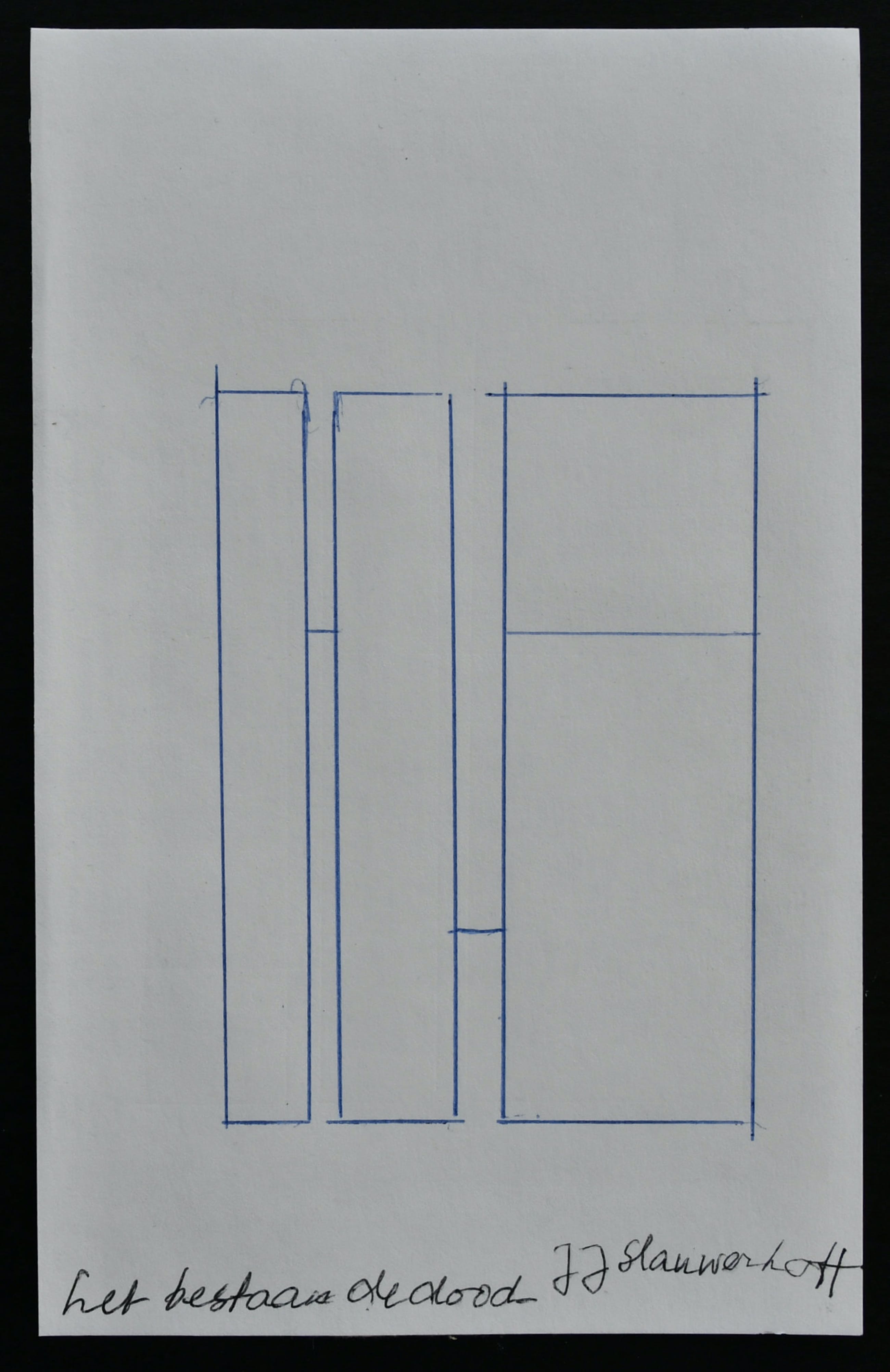 in balpen . Met handgeschreven tekst door Siep van de Berg " Het bestaan de dood JJ Slauerhoff en op de achterzijde een foto van 100 jaar Philips met daarbij handgeschreven"100 jaar Philips!"