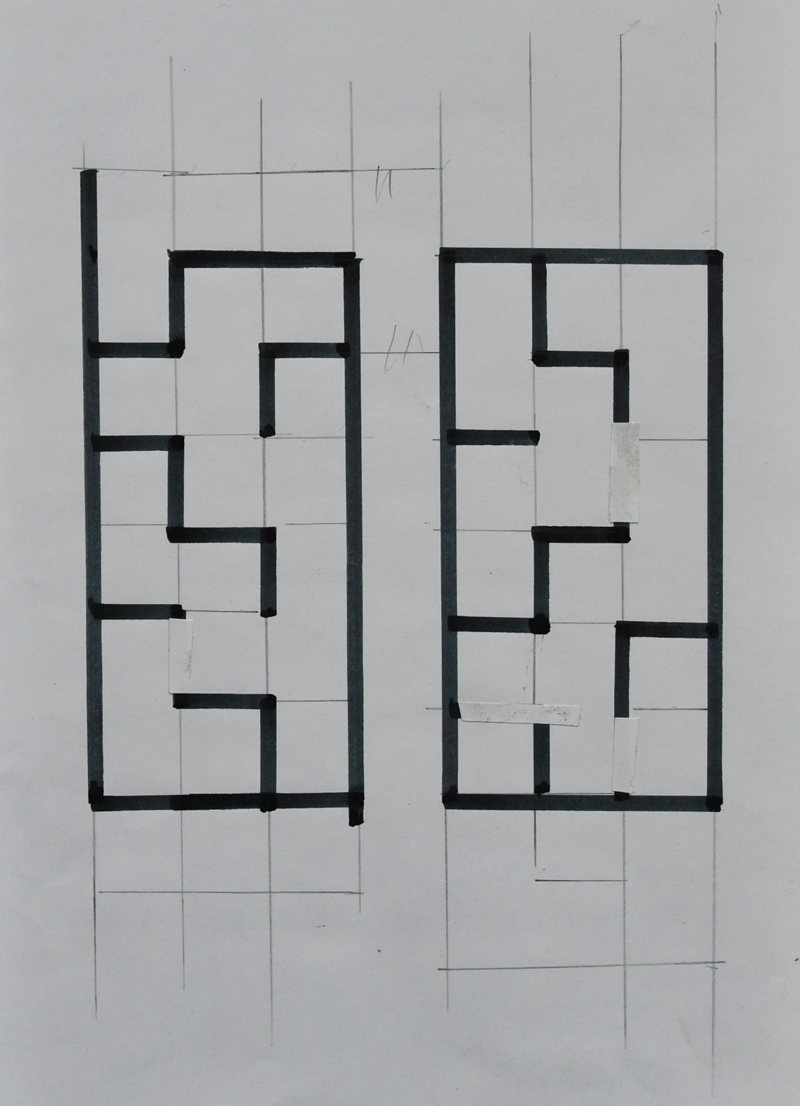 Bijzondere van den Berg tekening waarbij geexperimenteerd wordt met 2 vergelijkbare composities naast elkaar. Gescheiden door een blank middenstuk