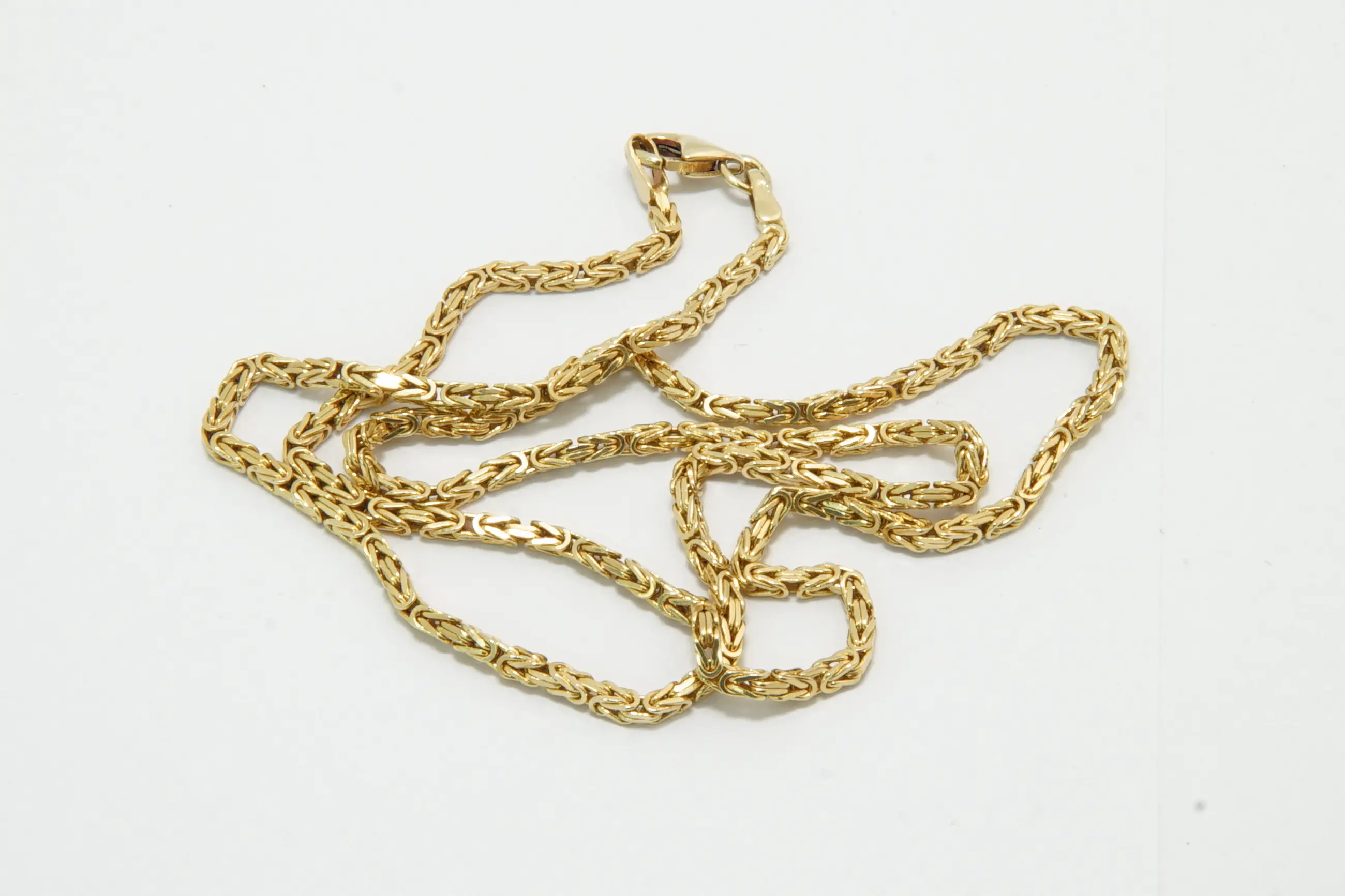 • U biedt op een fraai 14 karaats geel gouden konings collier. Dit exemplaar heeft vierkante schakels en verkeert in zeer goede conditie.