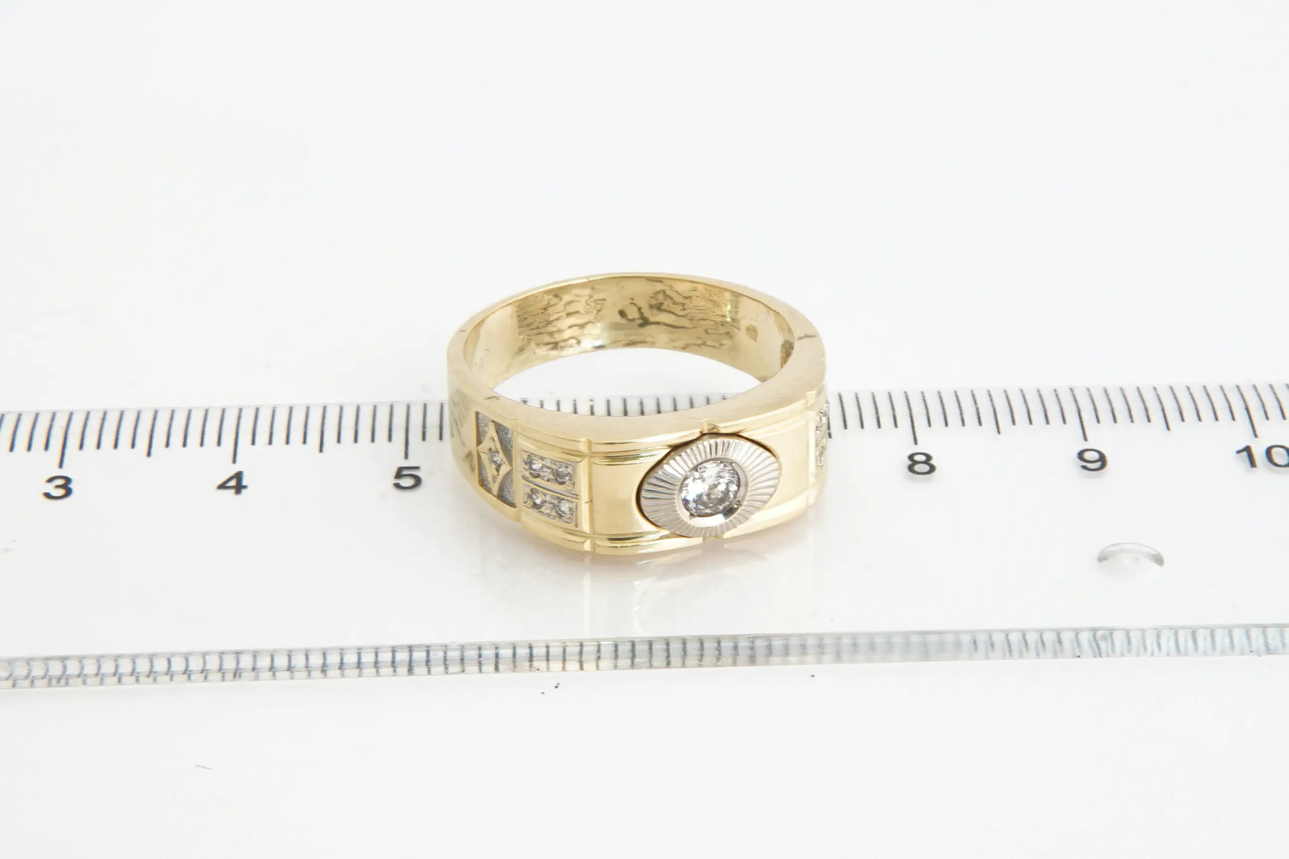 103- Vintage SEVENTIES bicolor 18Krt FANTASIE heren ring - Verkocht