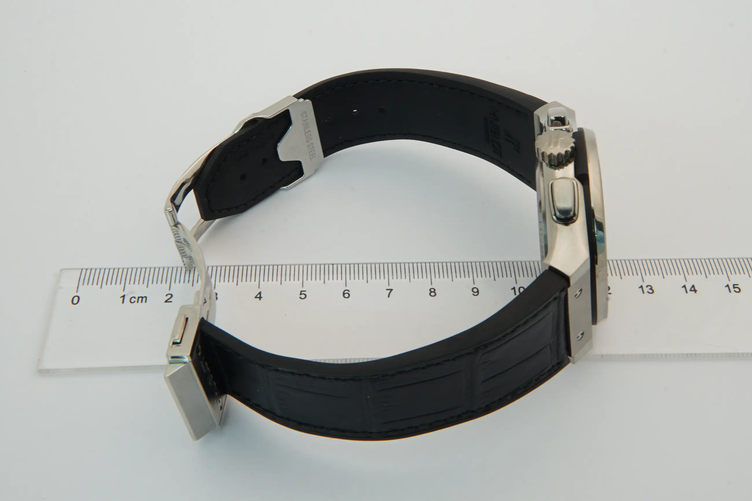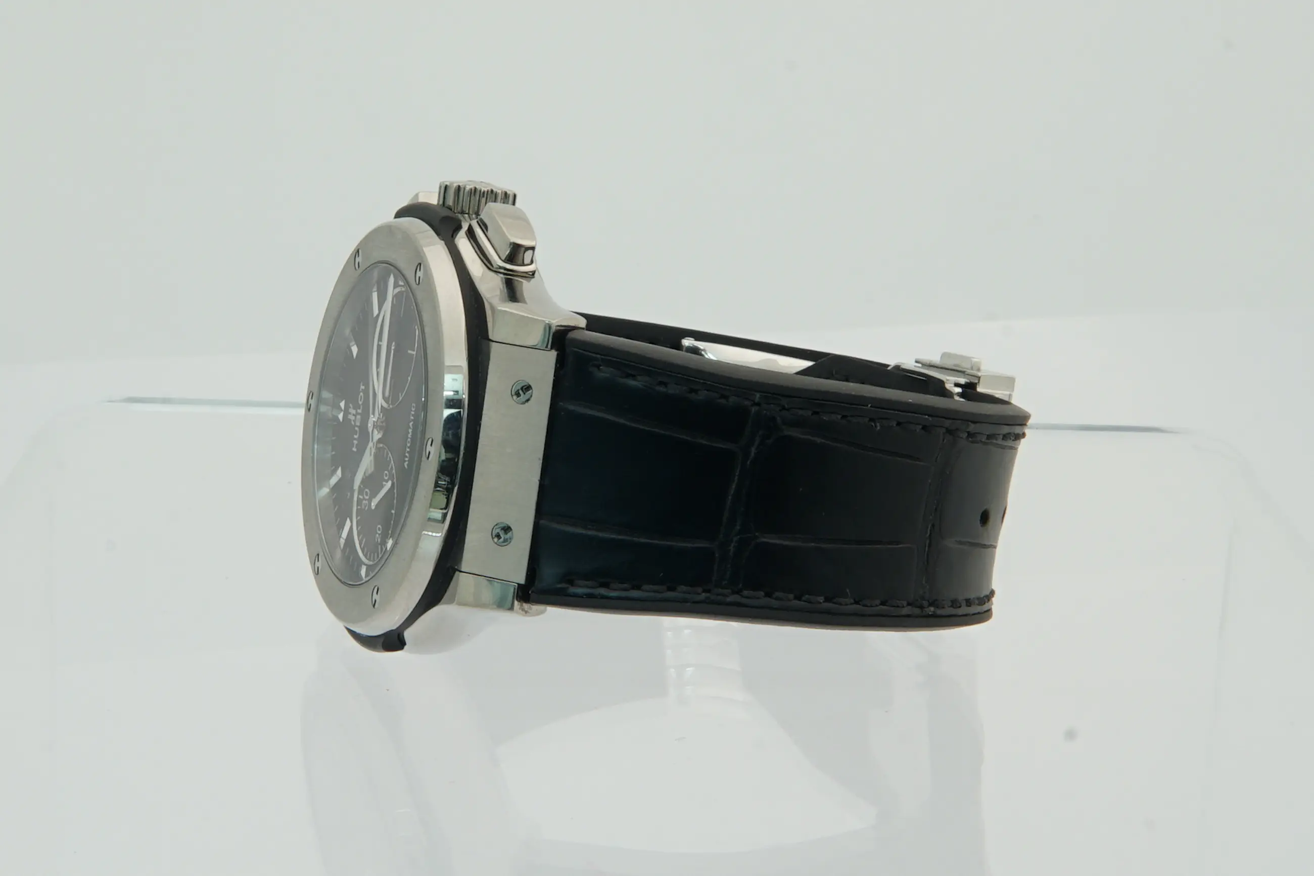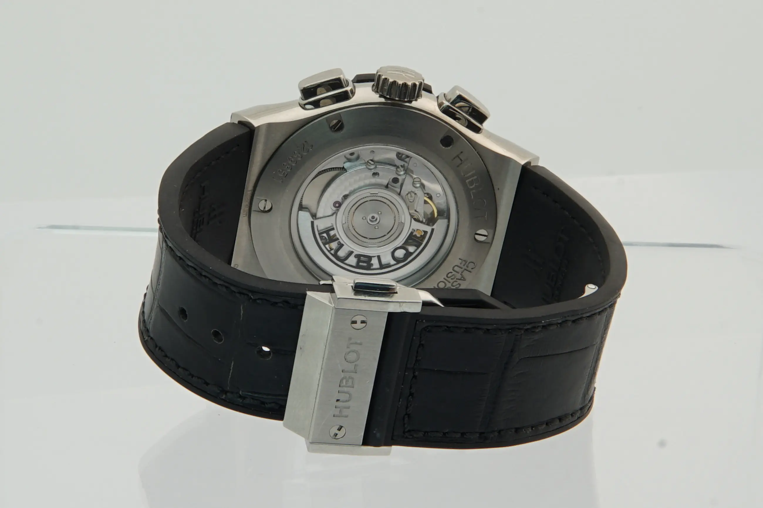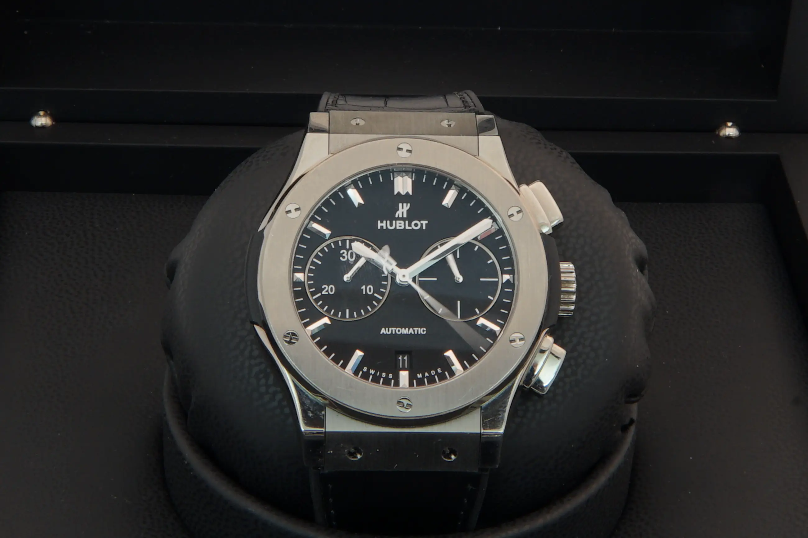 U biedt op een Exclusief Hublot Classic Fusion 45mm Titanium heren polshorloge met zwarte lederen band. Automaat wijzerplaat zwart met zilver kleurige indexen. 1289851.