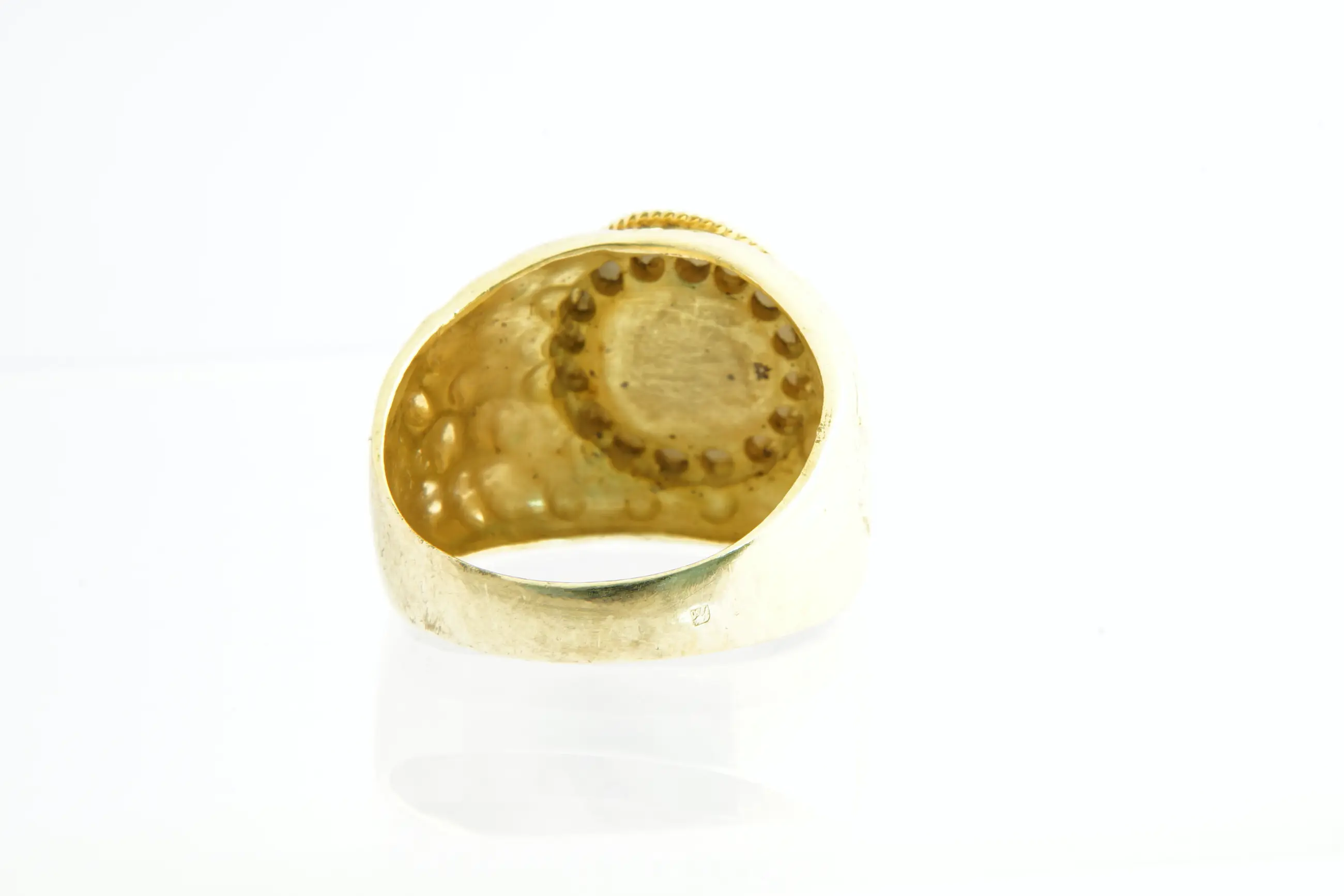 112- Grote Surinaamse mooi bewerkte 18 krt geel gouden kleursteen (wit) ring kopen? Bied vanaf 370!