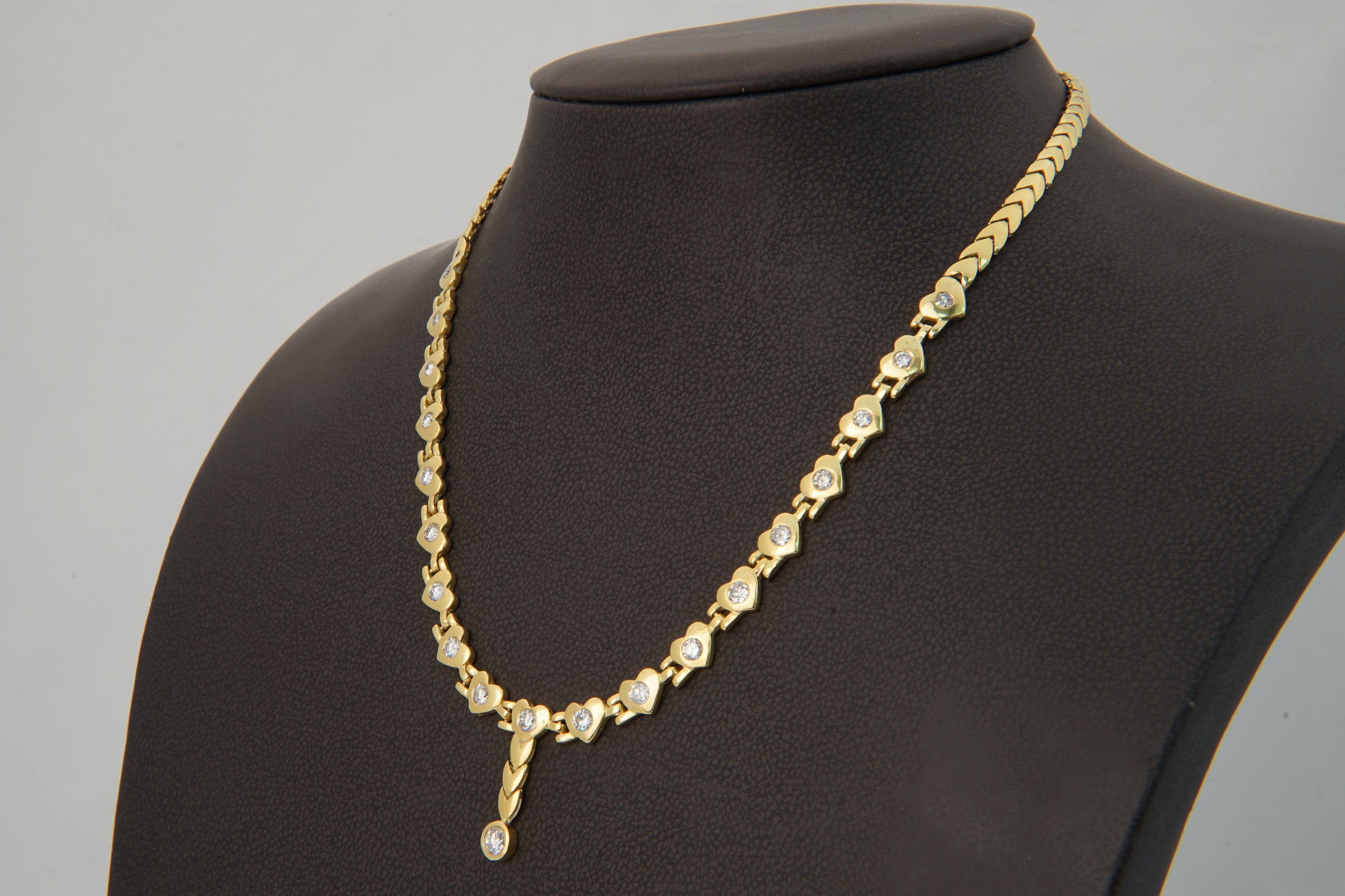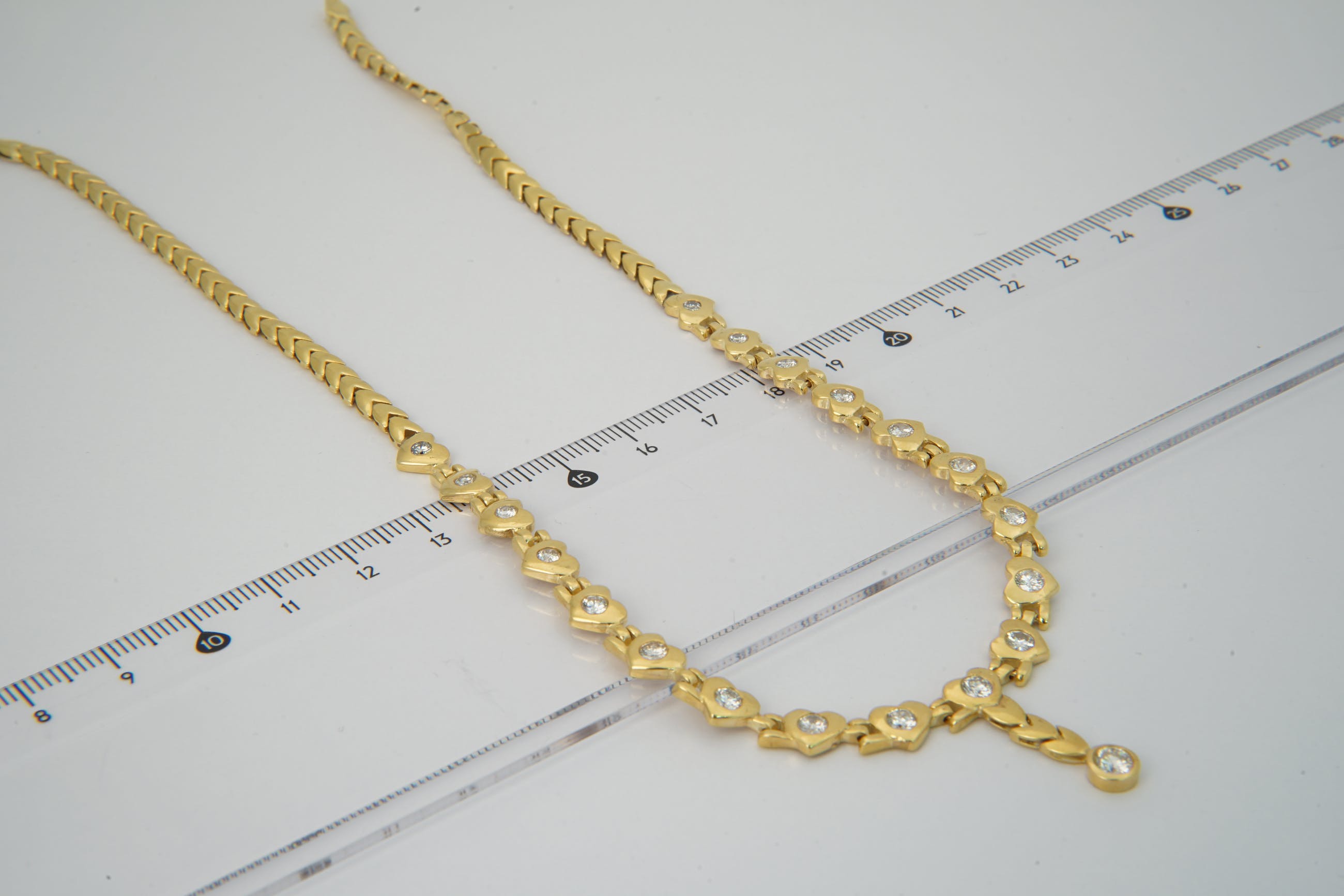 1218 - Fraai gouden (14 kt) & diamanten (2.00ct) hartjes-model "Foxtail" collier - Verkocht
