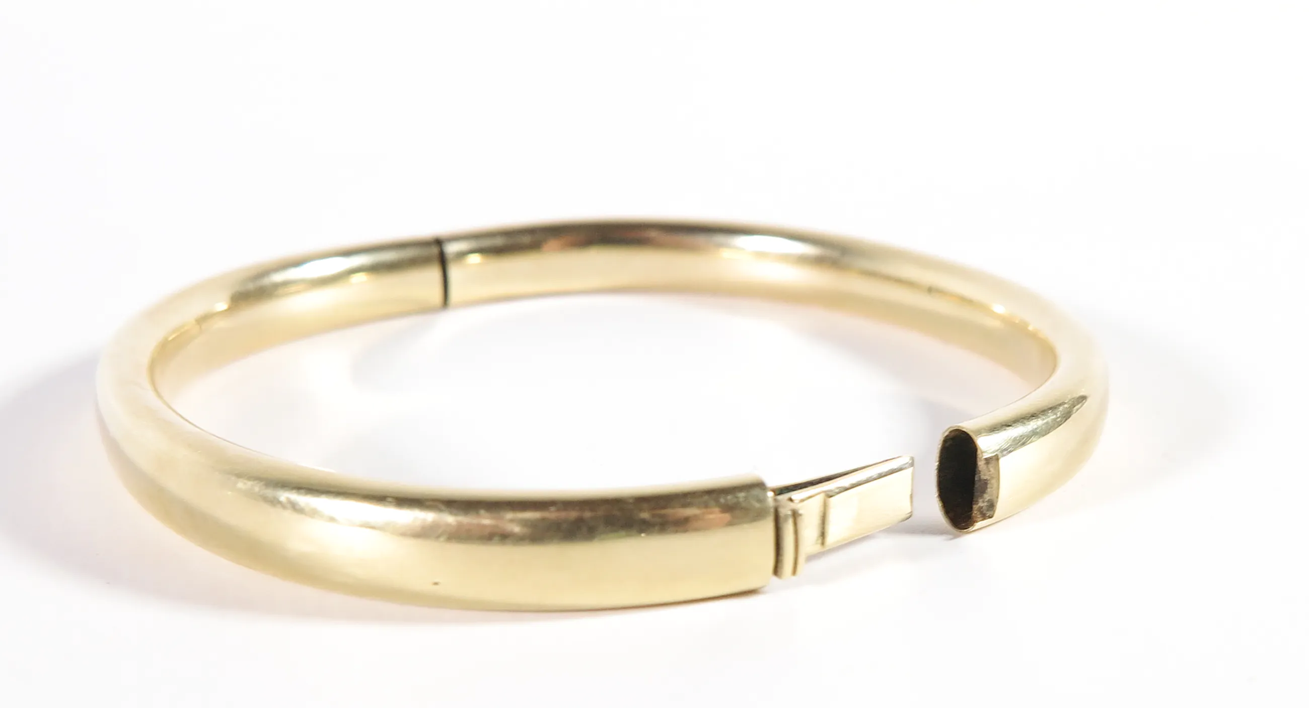 14 kt. geelgouden ovale slavenarmband met scharnier.
