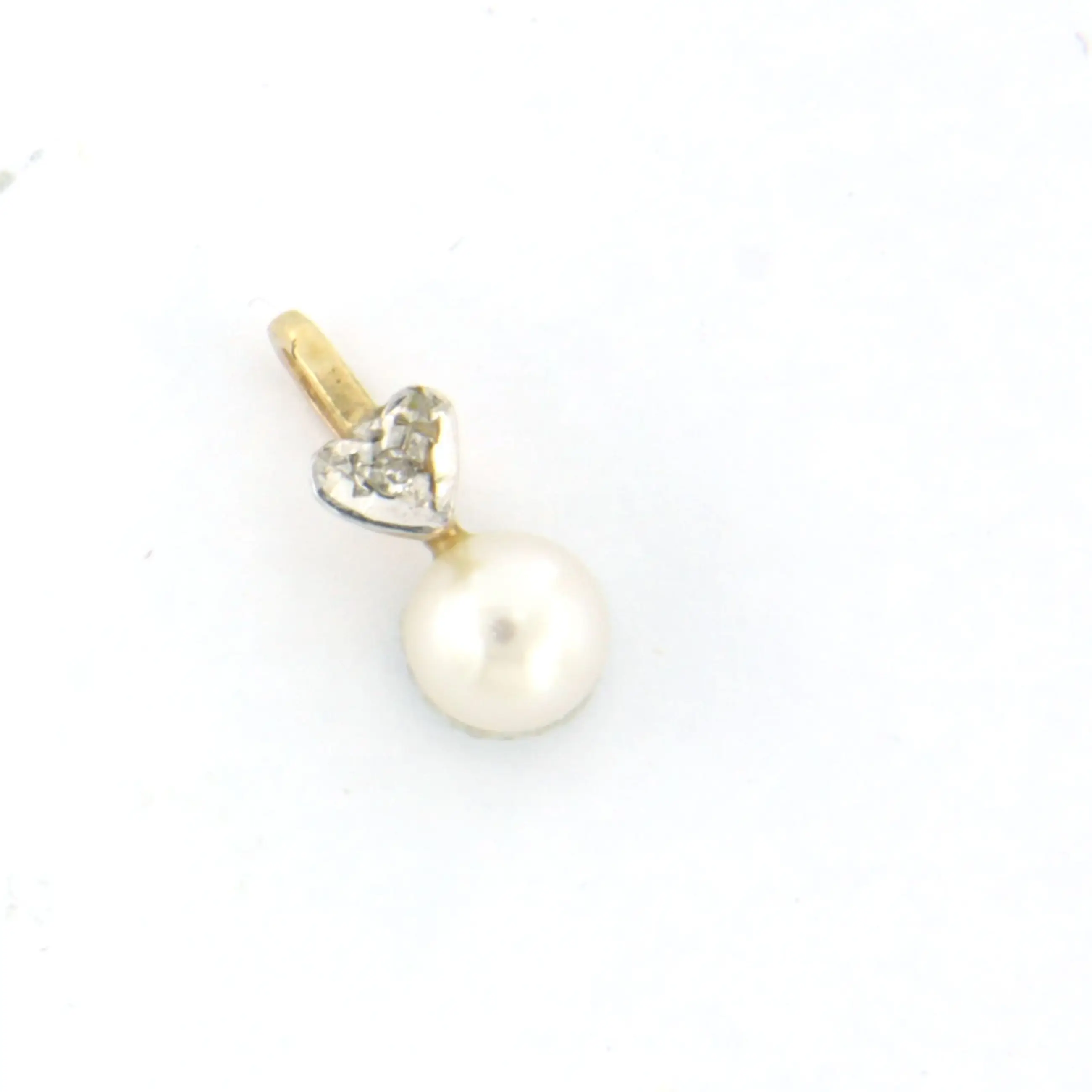 14k bicolour gouden hanger met parel en single cut geslepen diamant tot. 0.005ct - afm. 1.0 cm x 4.2 mm