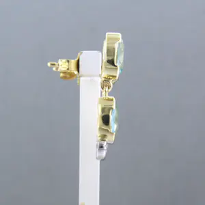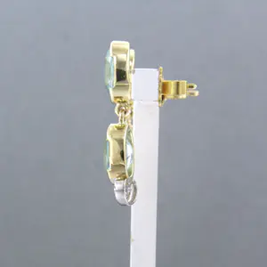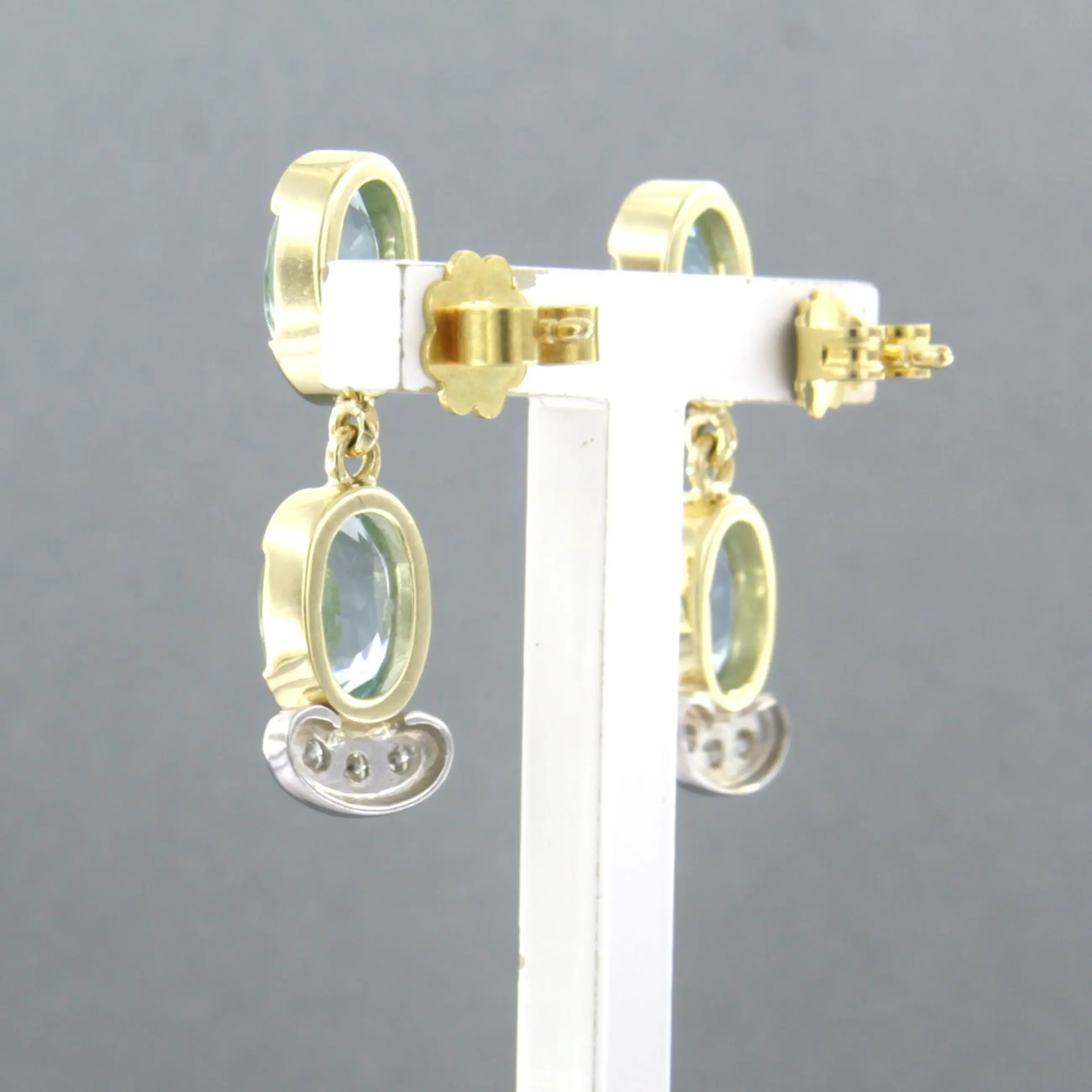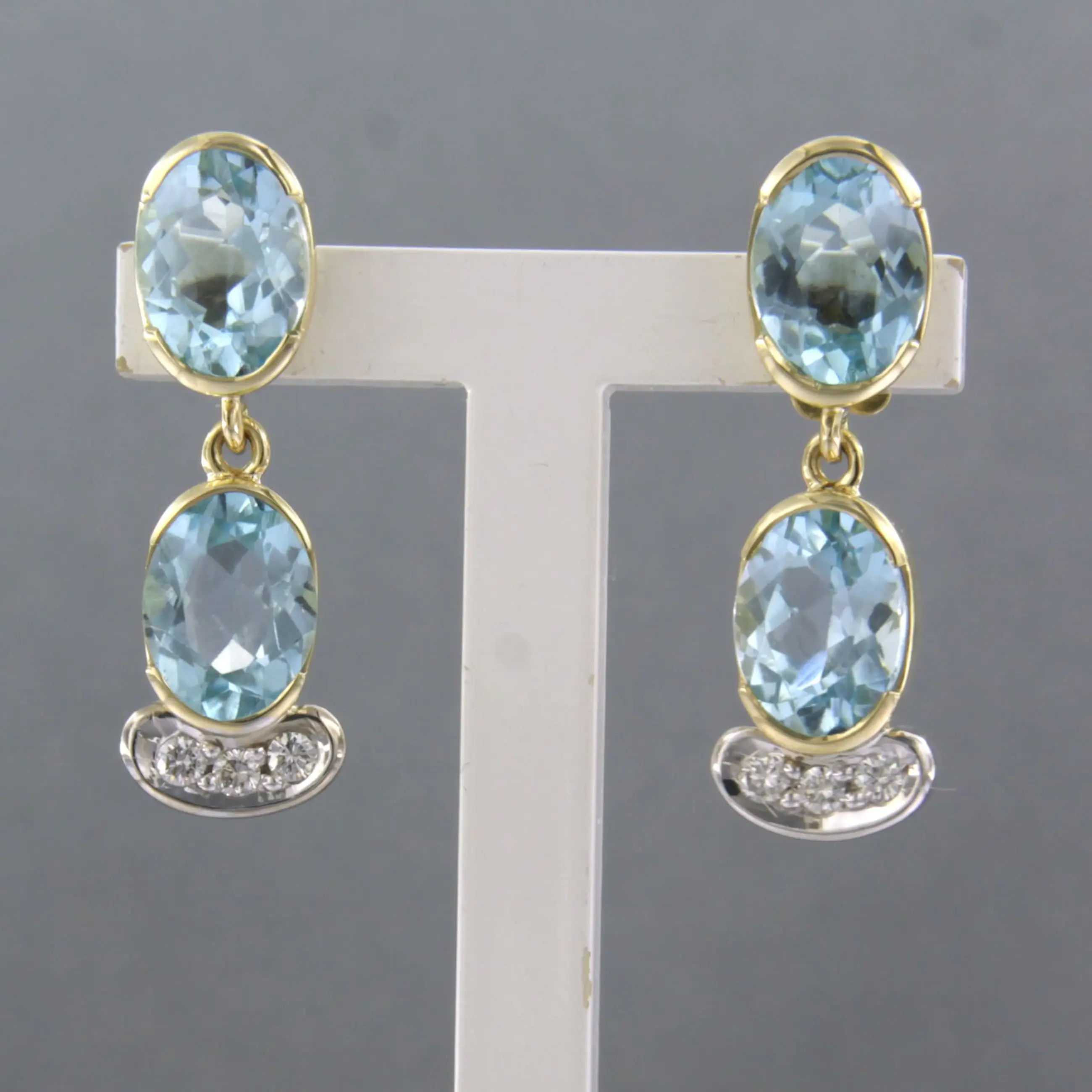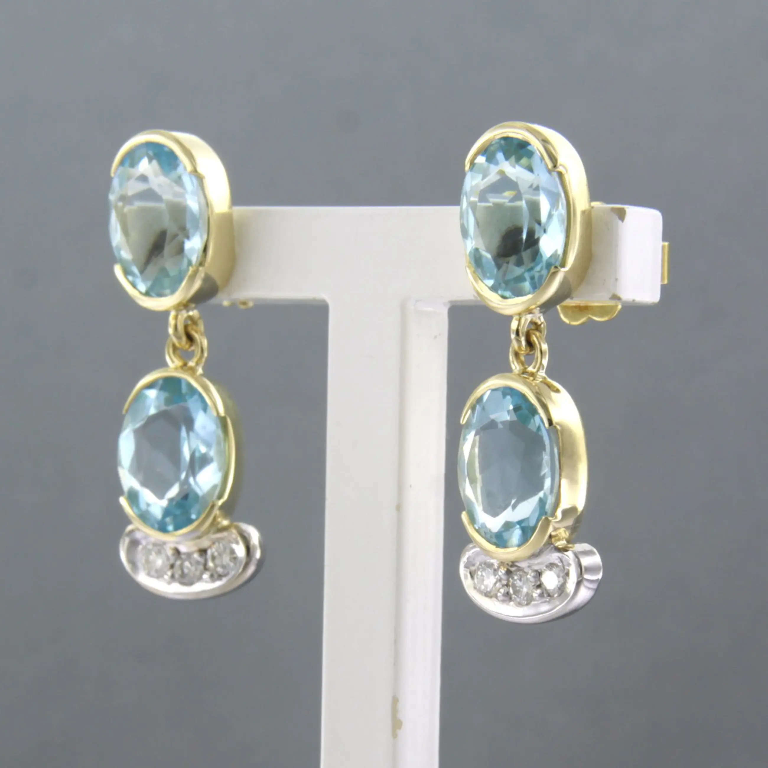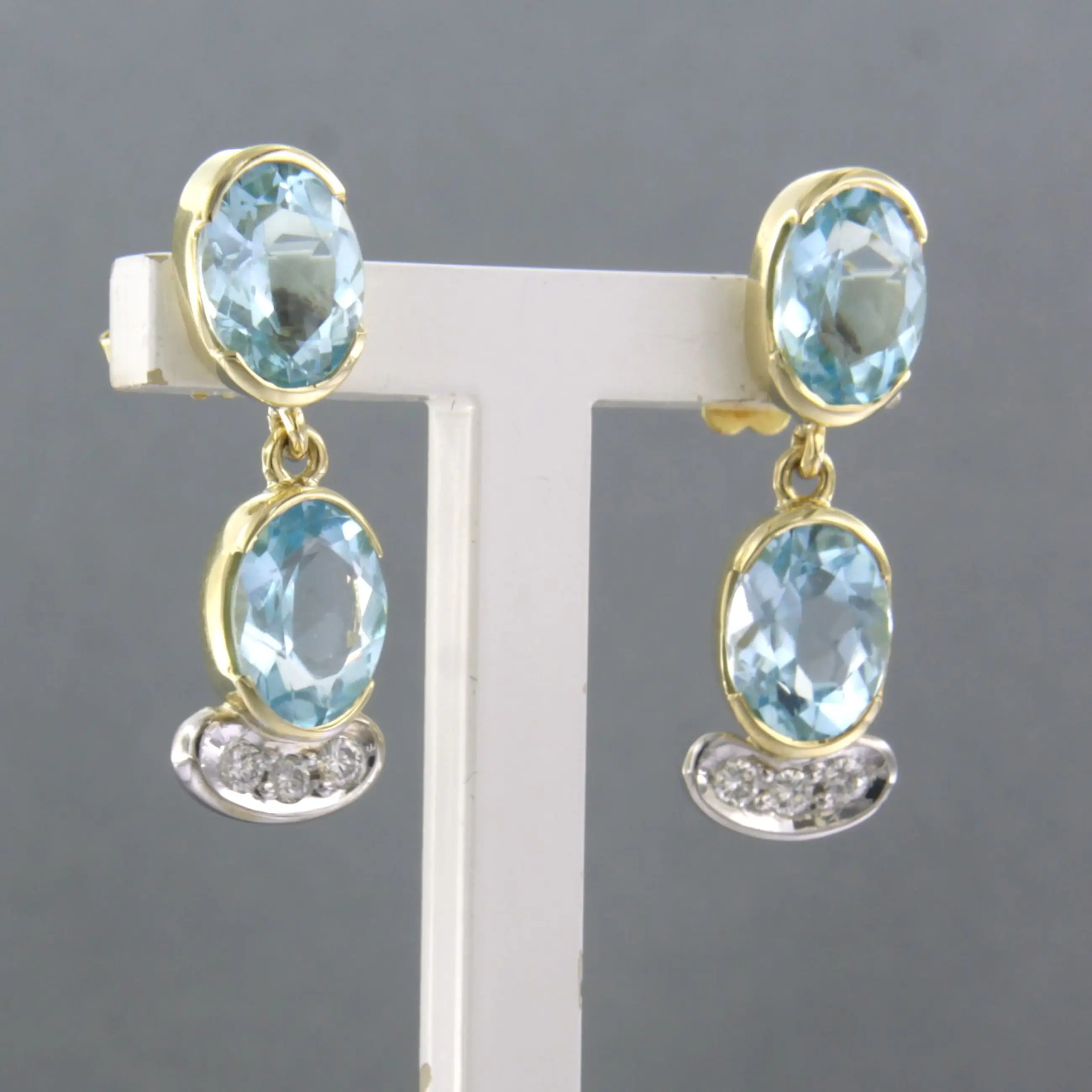 14k bicolour gouden oorhangers met topaz en briljant geslepen diamant 0.12 ct F/G VS/SI