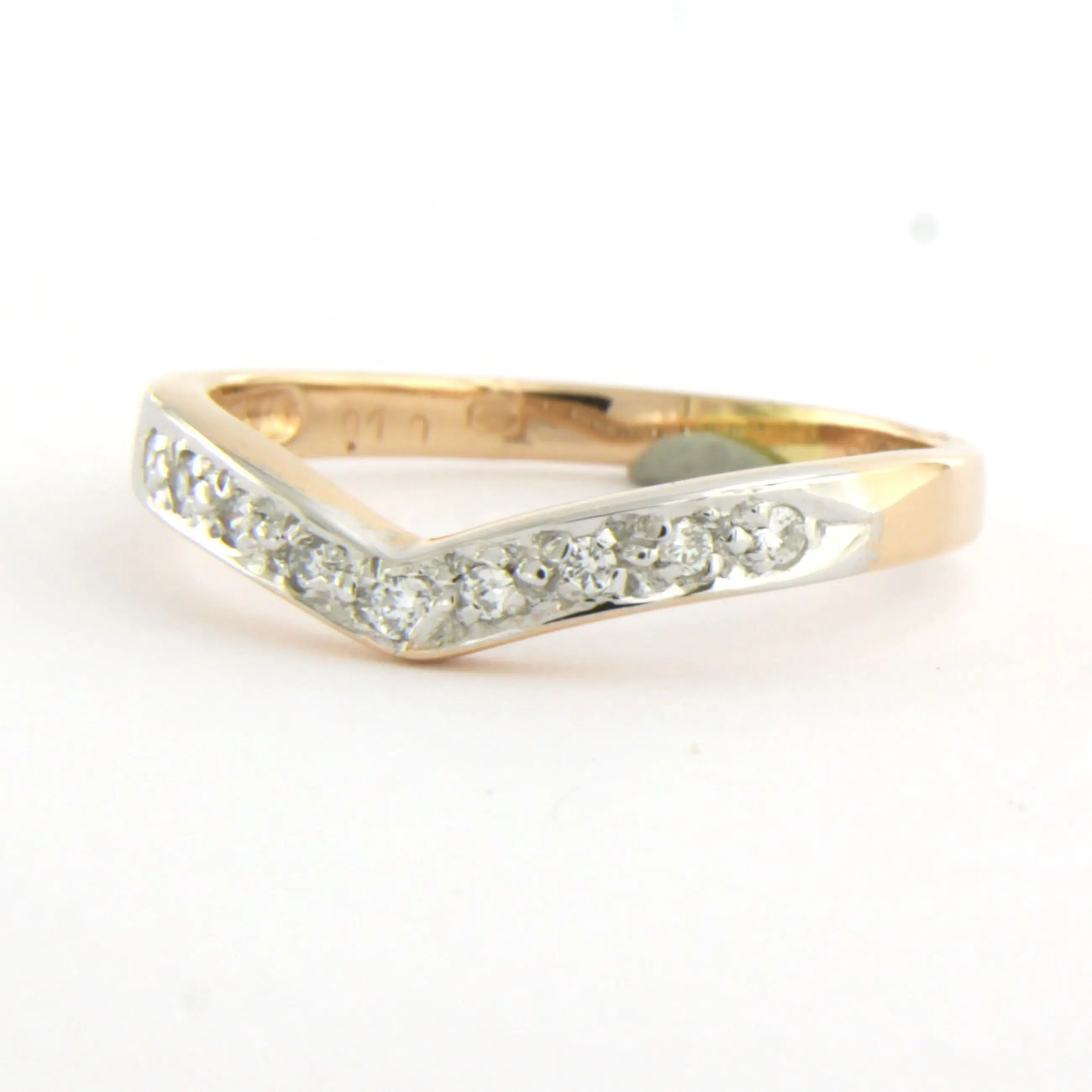 14k bicolour gouden ring bezet met briljant diamant tot. 0.05ct – F/G – VS/SI - ringmaat 17(53)