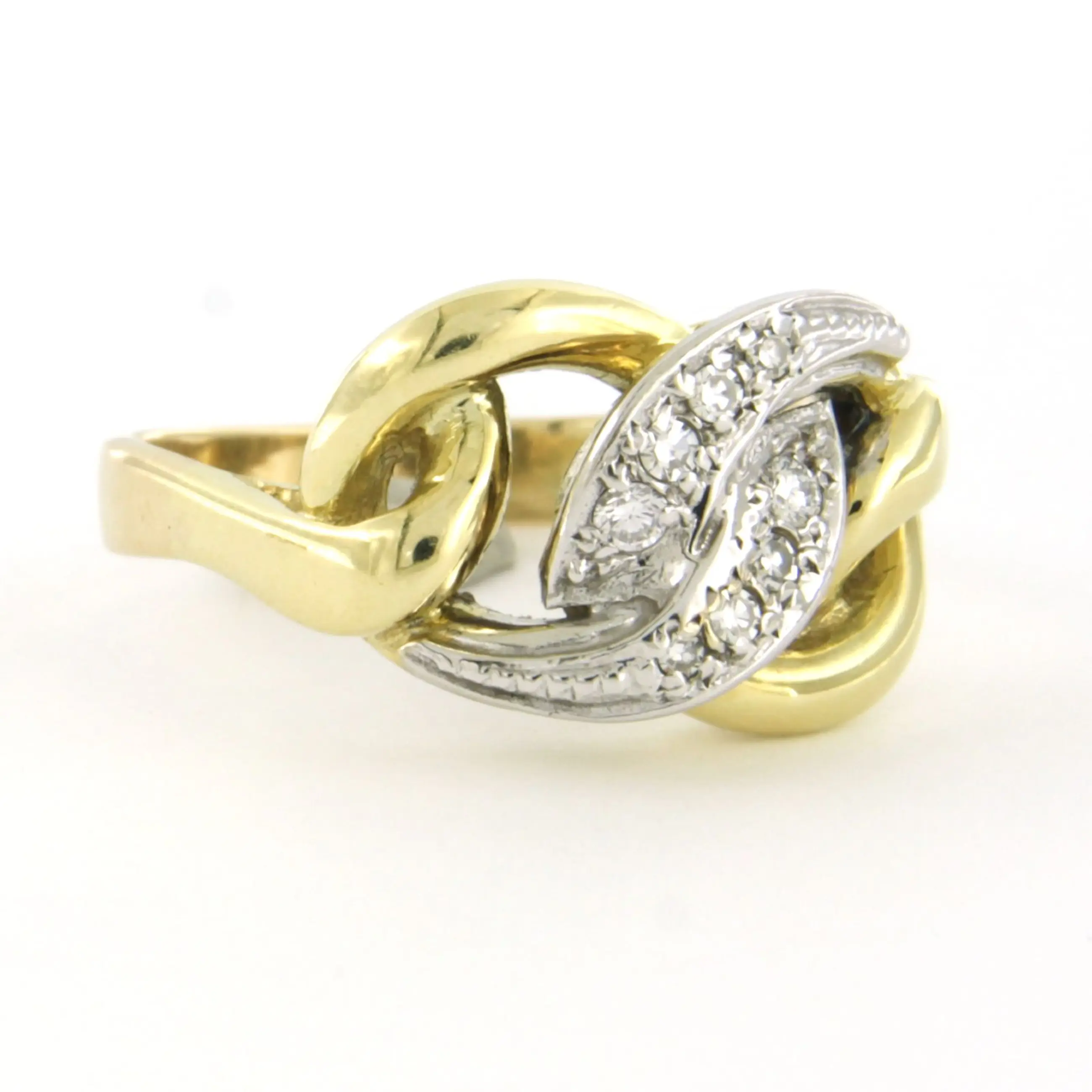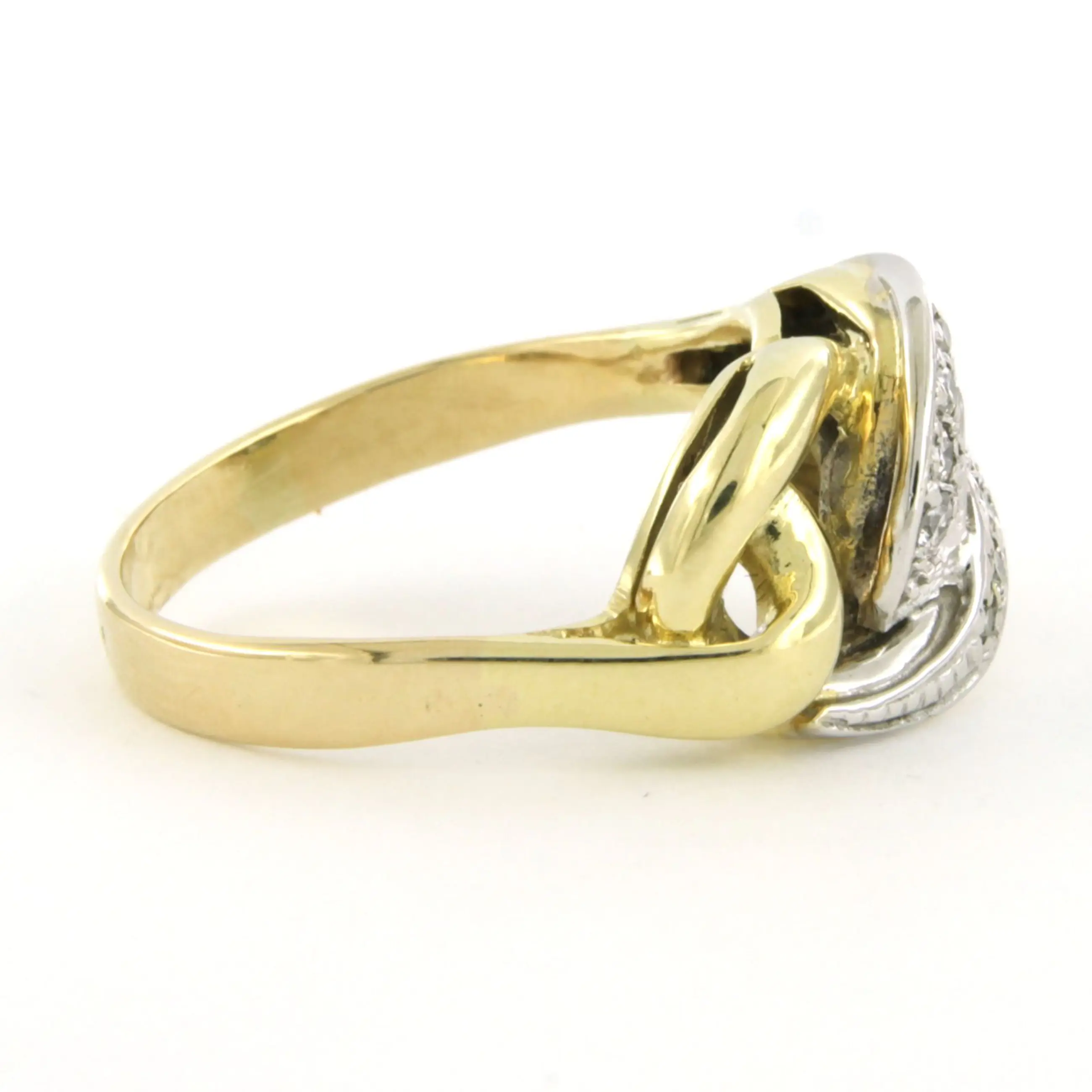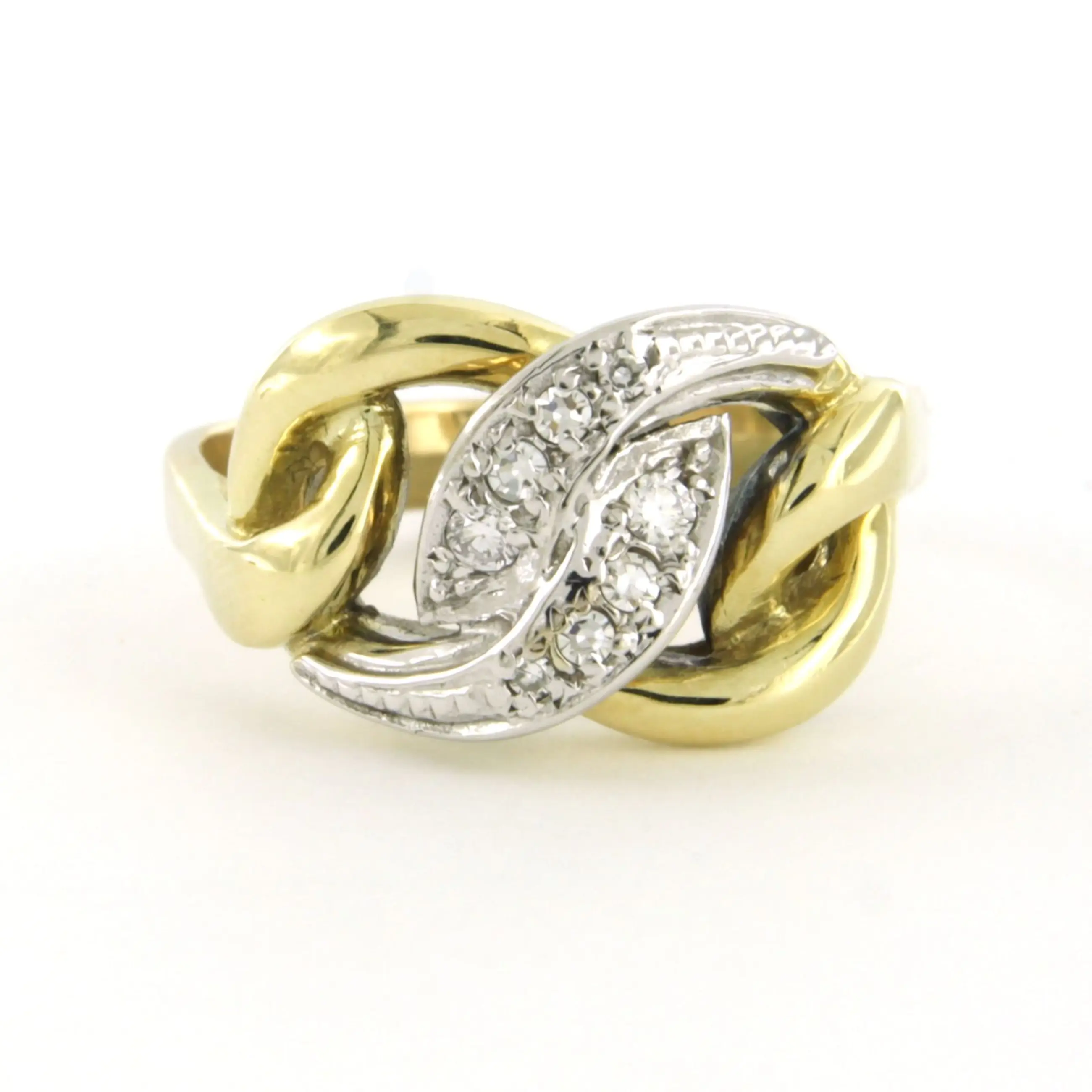 14k bicolour gouden ring met briljant geslepen diamanten tot. 0.15ct – F/G - VS/SI - ringmaat 19.25(60)