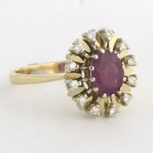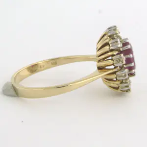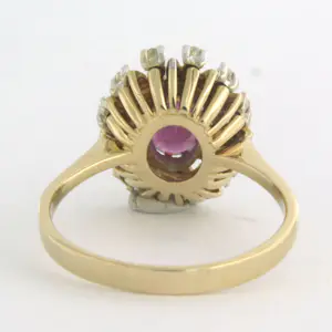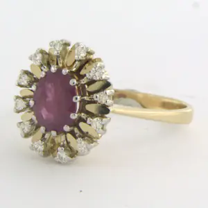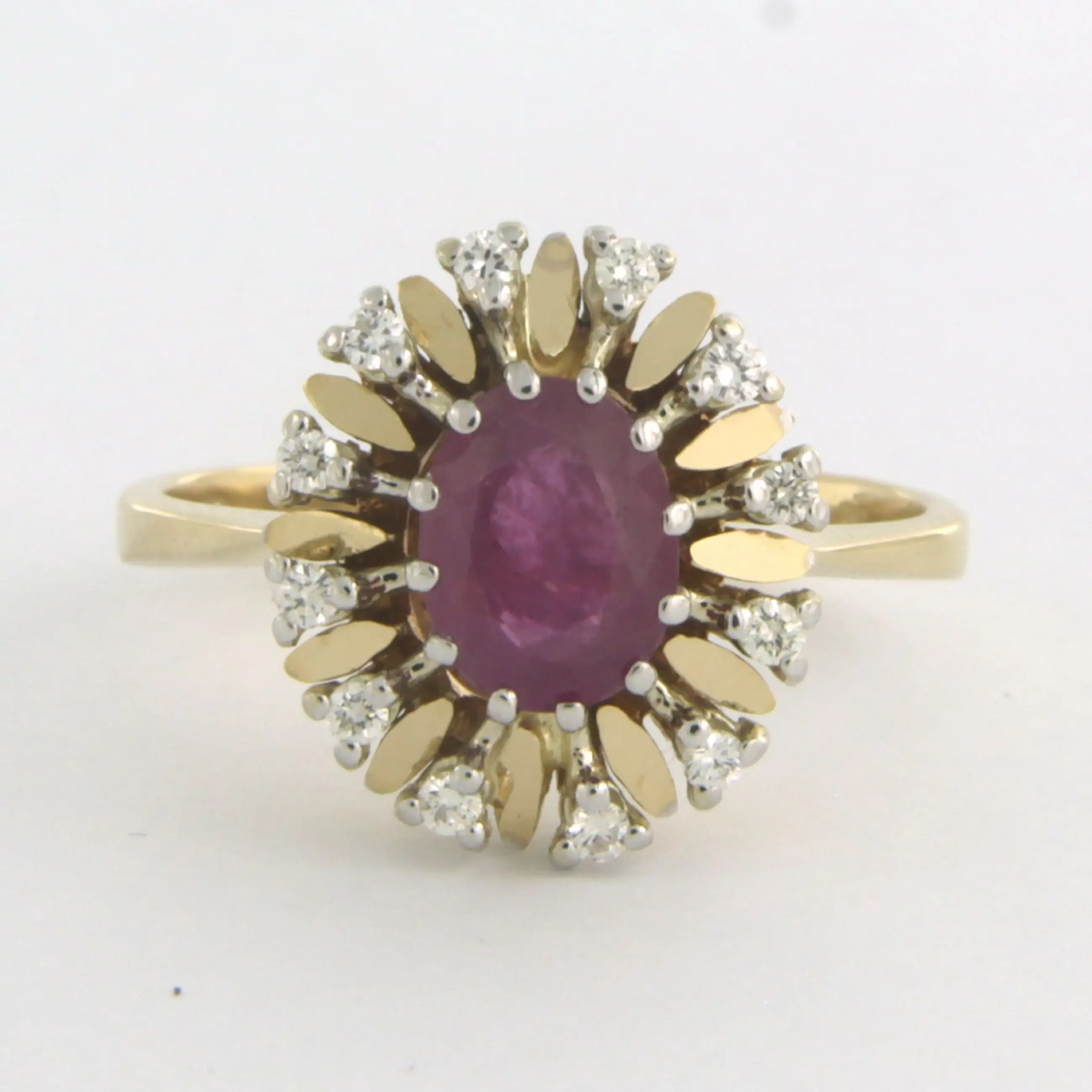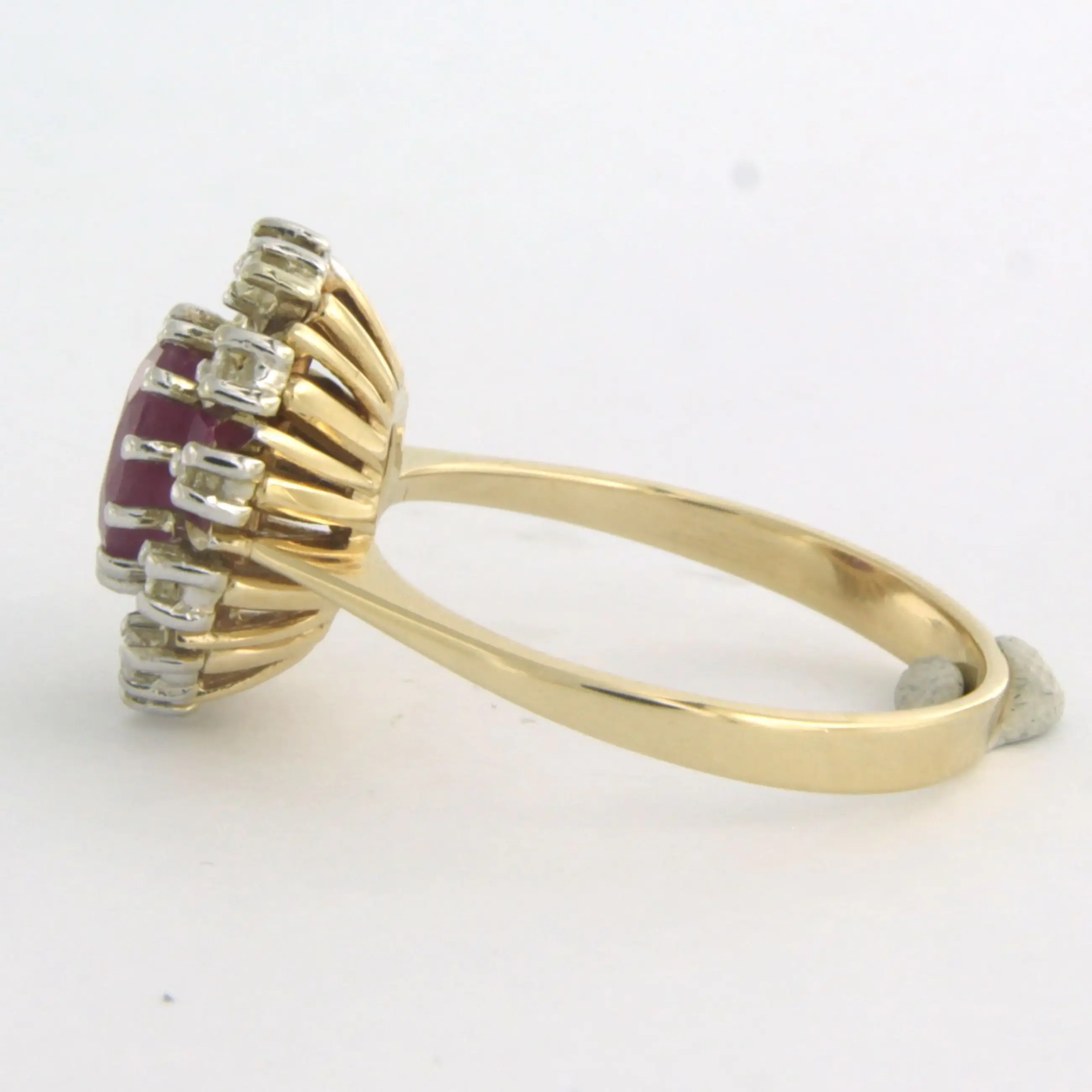 14k bicolour gouden ring met robijn en briljant geslepen diamant 0.12 karaat F/G VS/SI -ringmaat 19.25 (60)