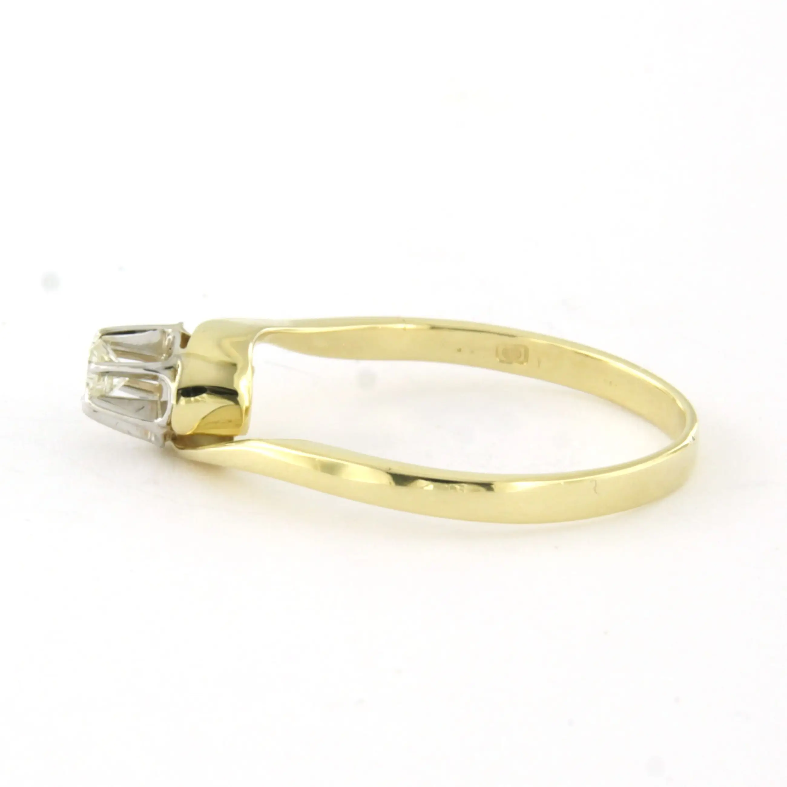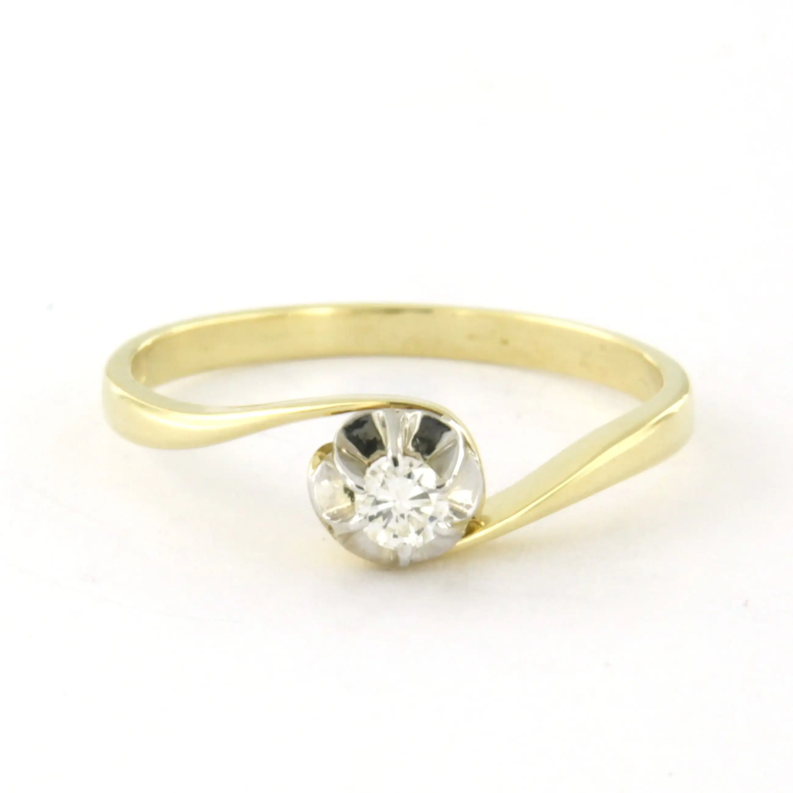 14k bicolour gouden solitair ring met briljant geslepen diamant tot. 0.10ct – F/G - VS/SI - ringmaat 18.5(58)