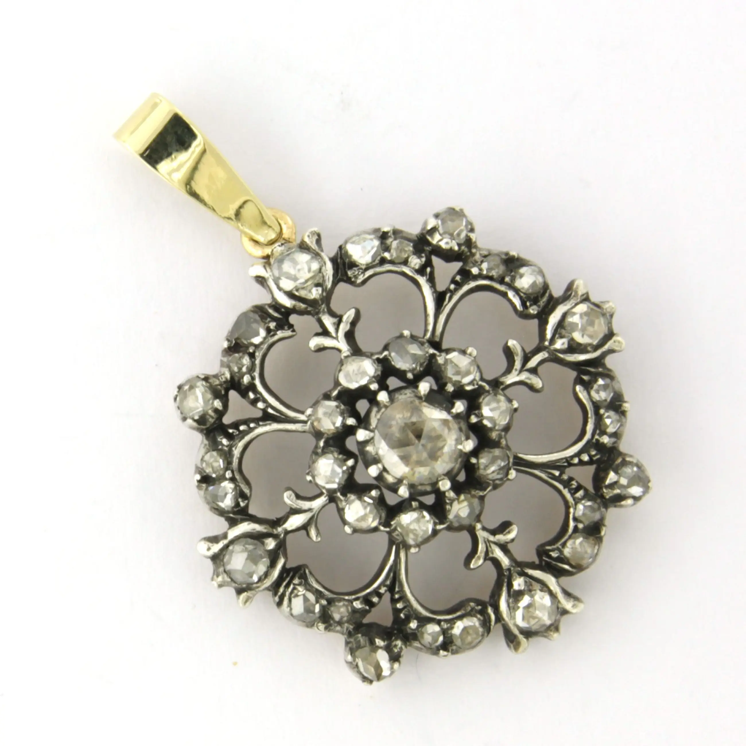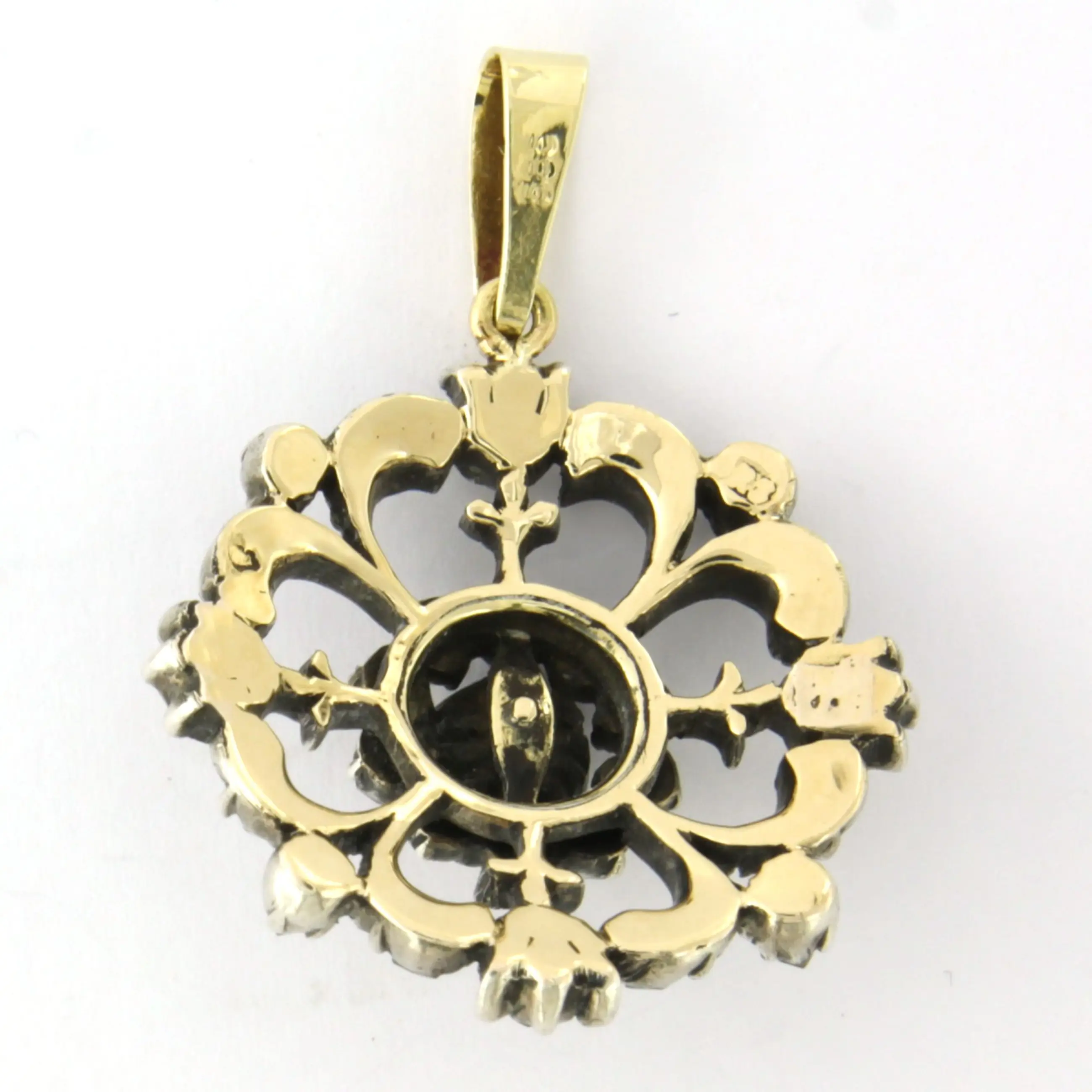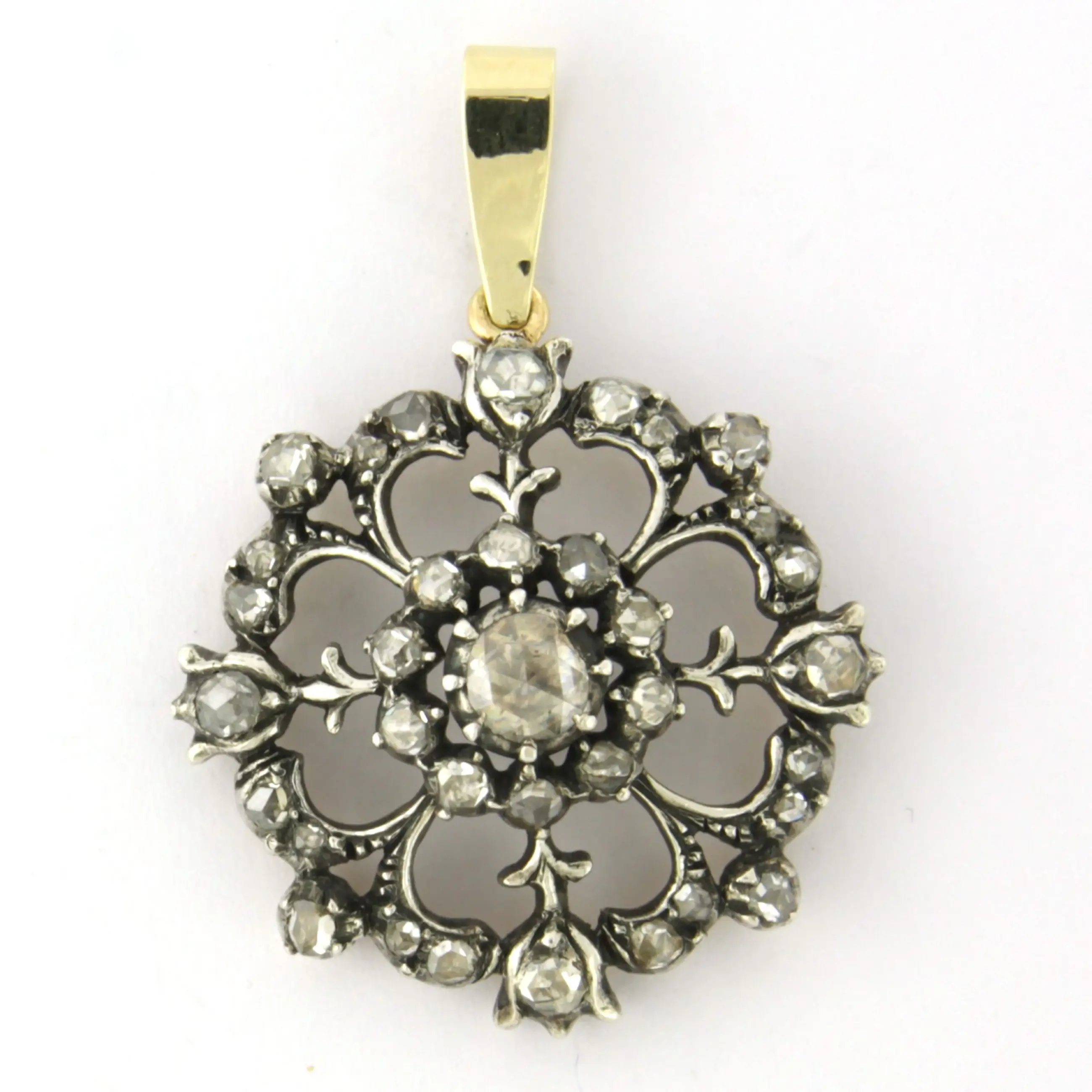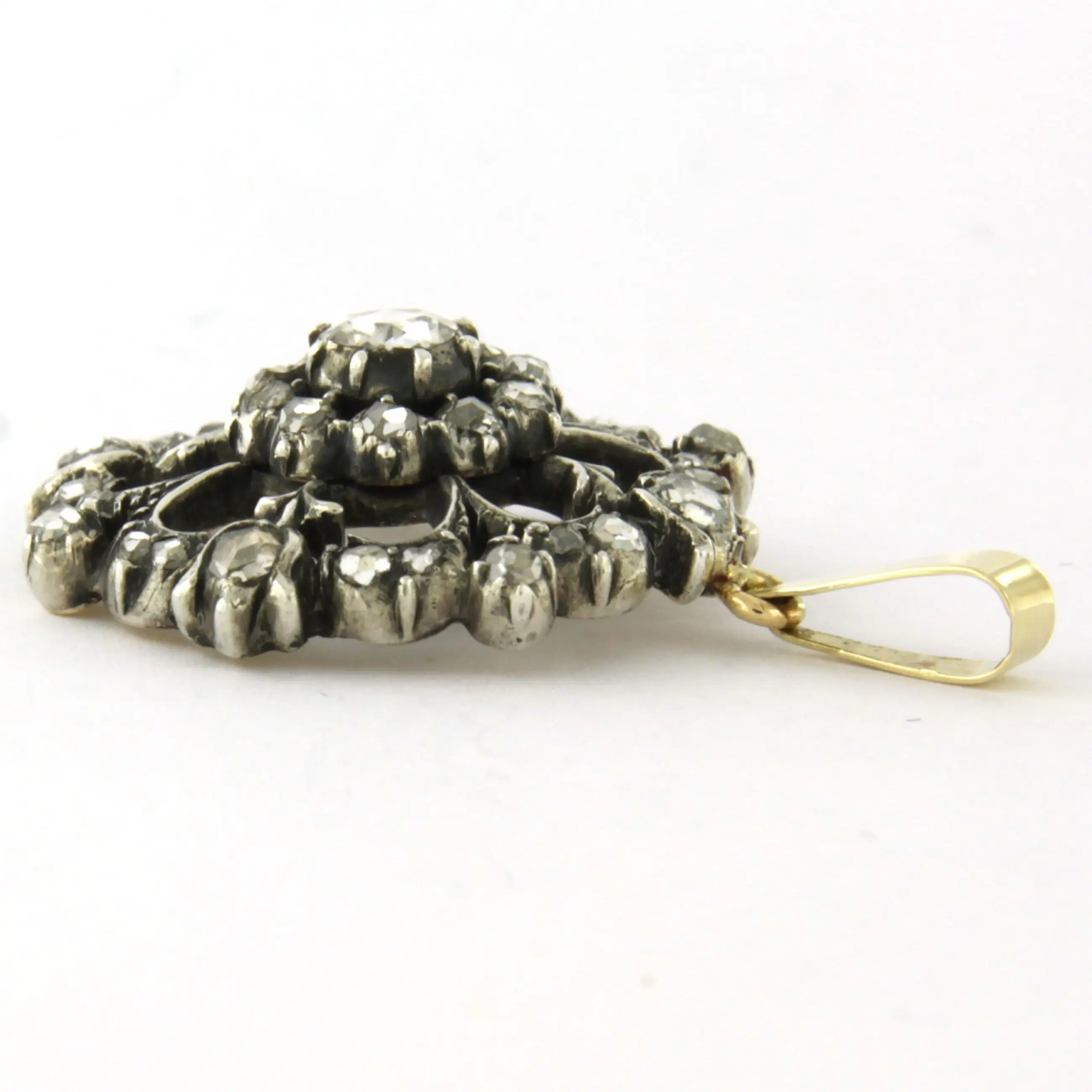 14k geel goud en zilver hanger bezet met roos diamant totaal circa 0.50ct – G/H - SI – afm. 3.1 cm x 2.3 cm breed