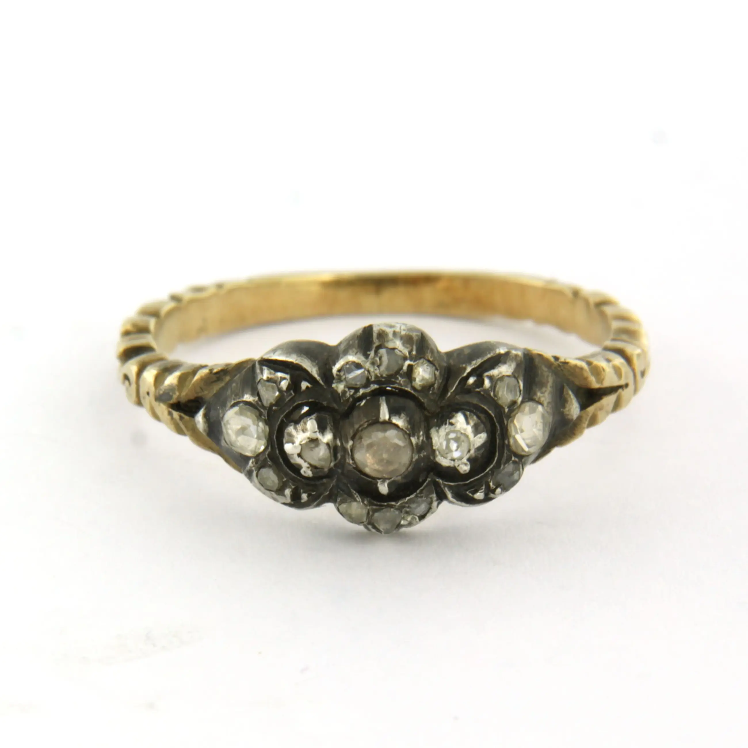 14k geel goud met zilver ring met roos geslepen diamant tot. 0.10ct