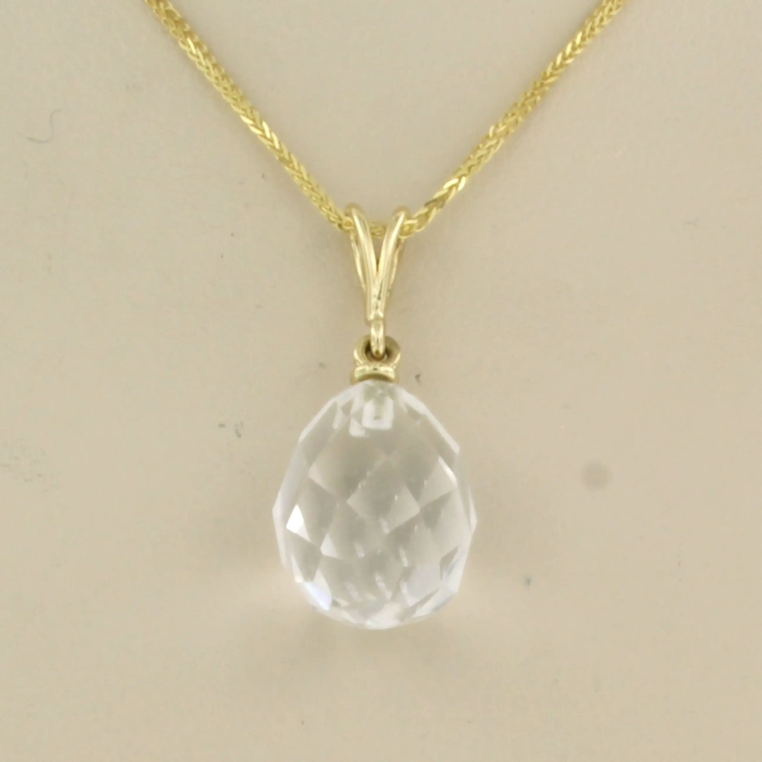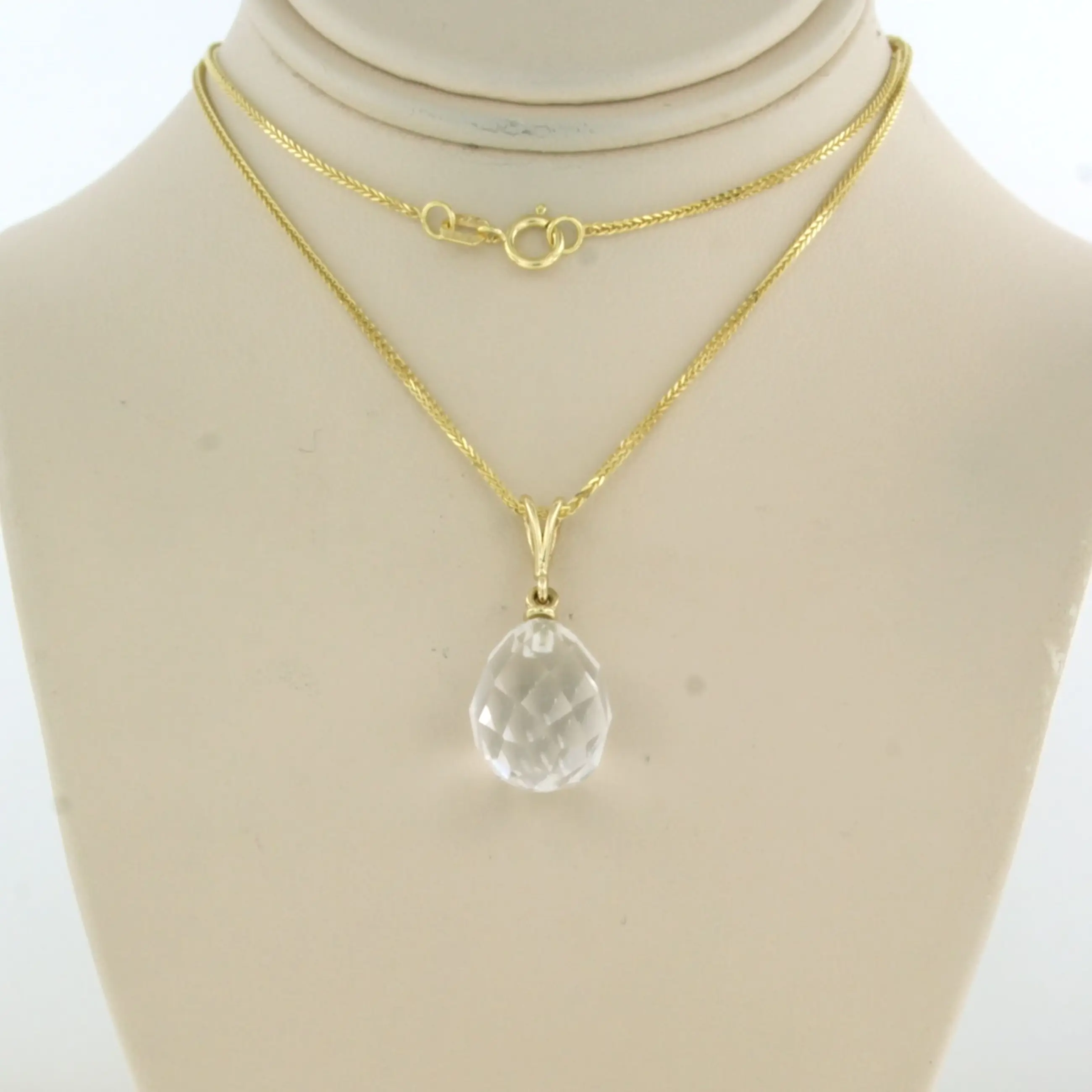 14k geel gouden collier met hanger bezet met druppel vormig berg kristal - 45 cm lang