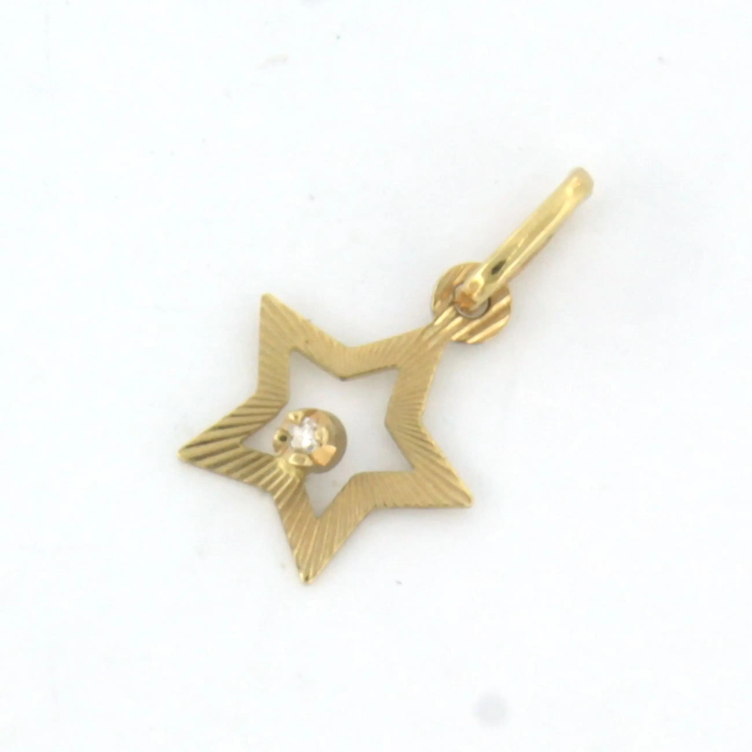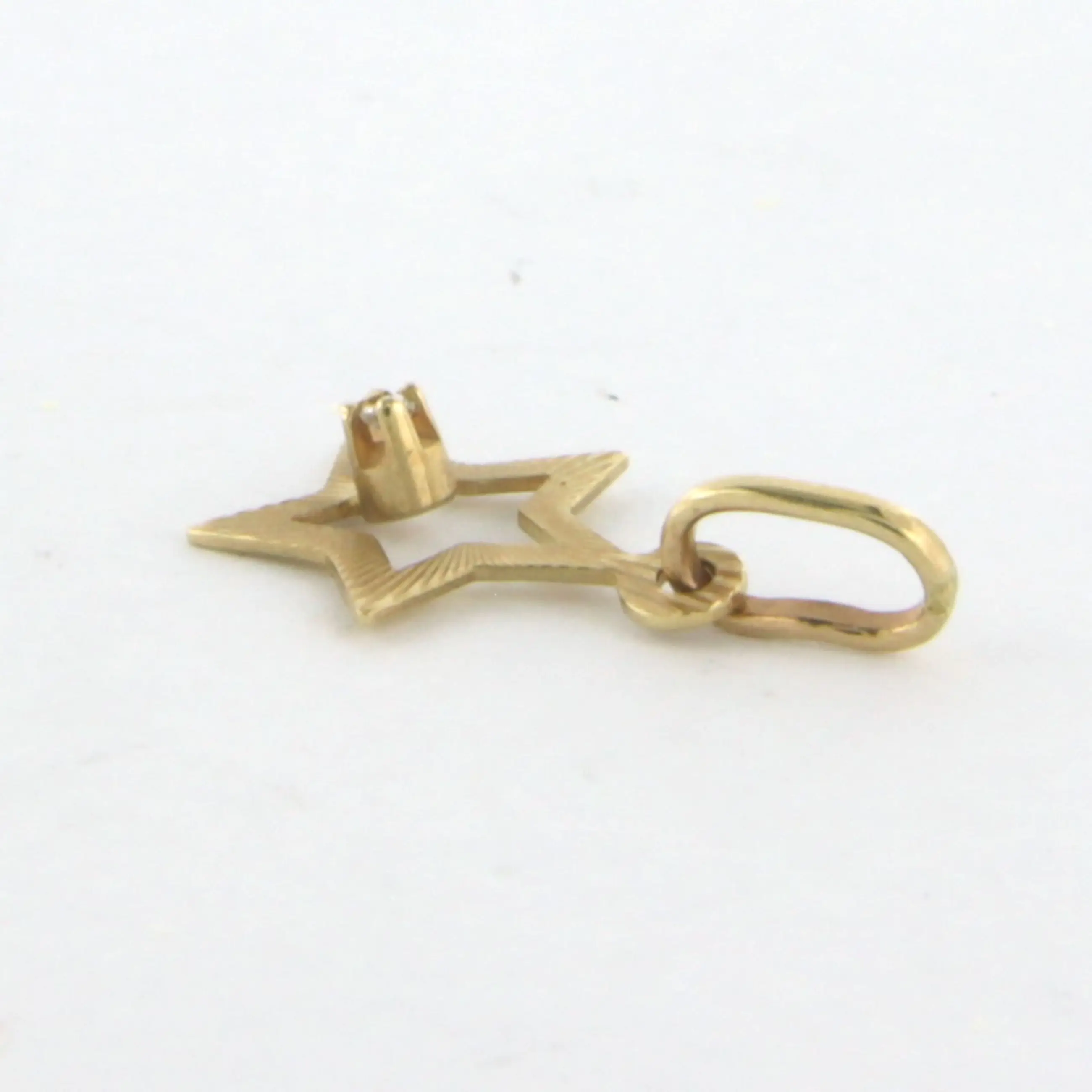 14k geel gouden hanger in een vorm van ster met single cut geslepen diamant tot. 0.005ct - afm. 1.5 cm x 9.0 mm