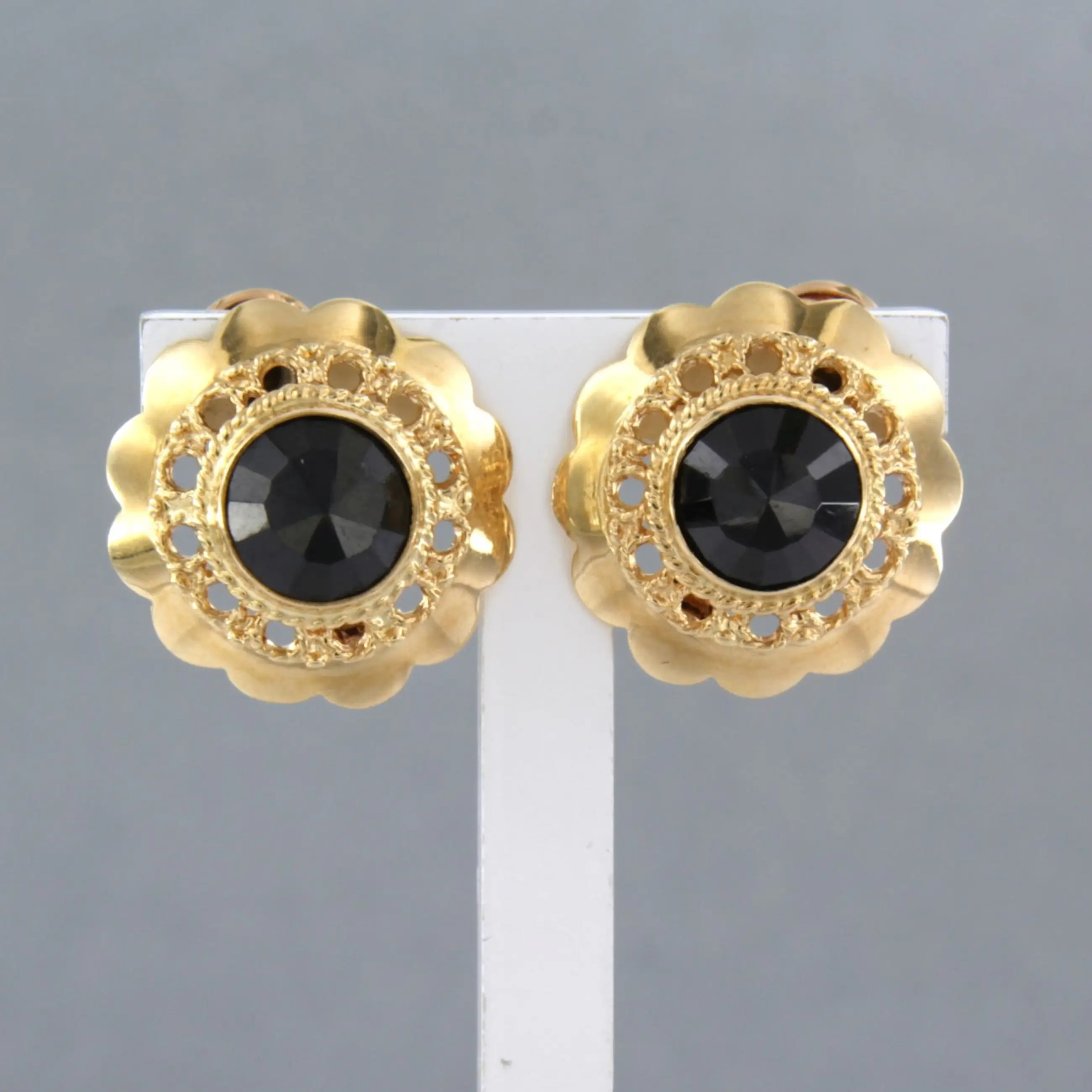 14k geel gouden oorclips bezet met granaat - 5.1 gram