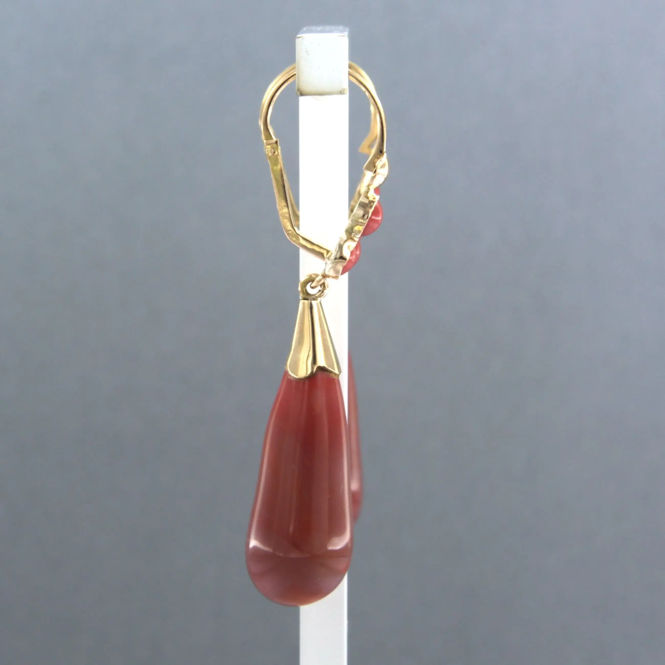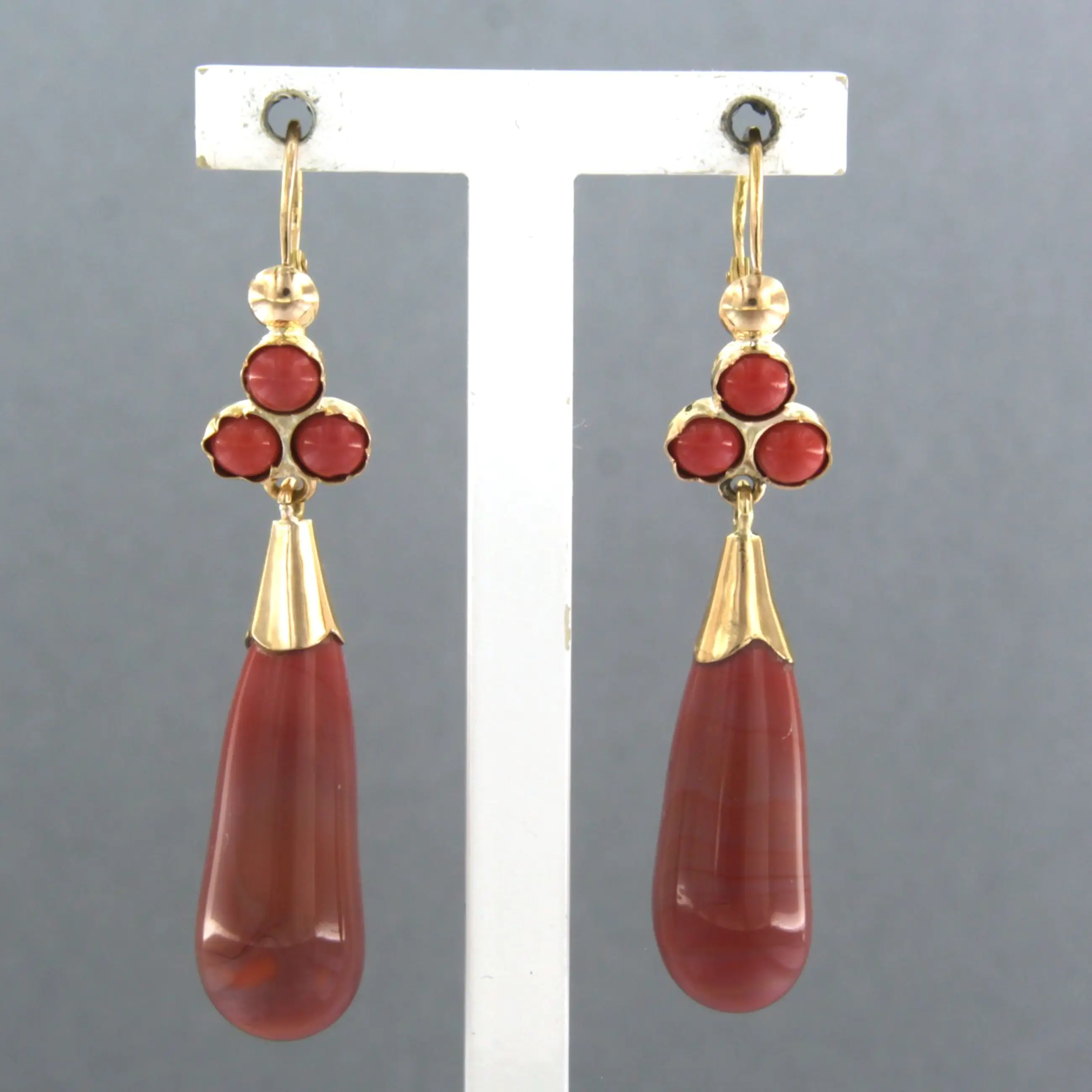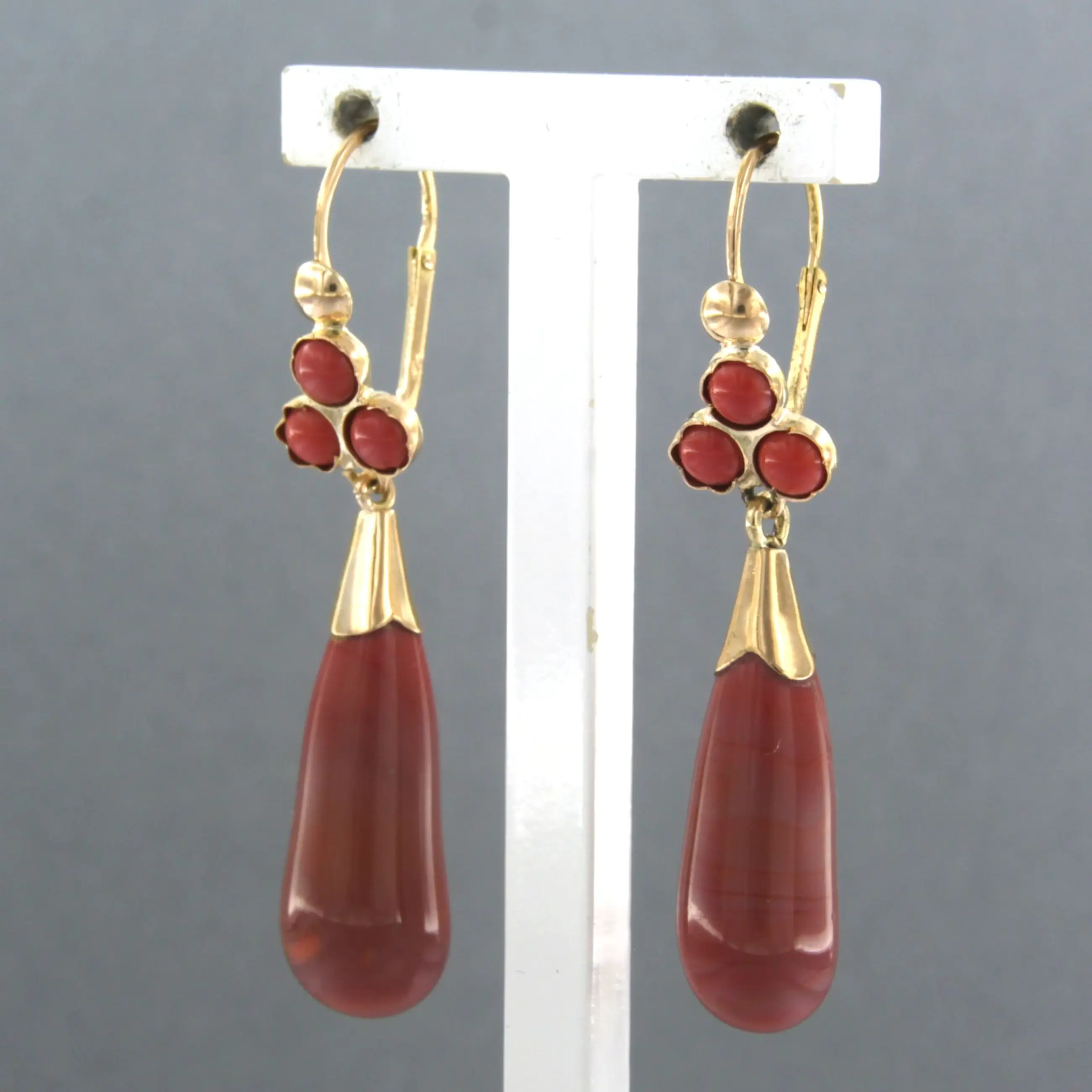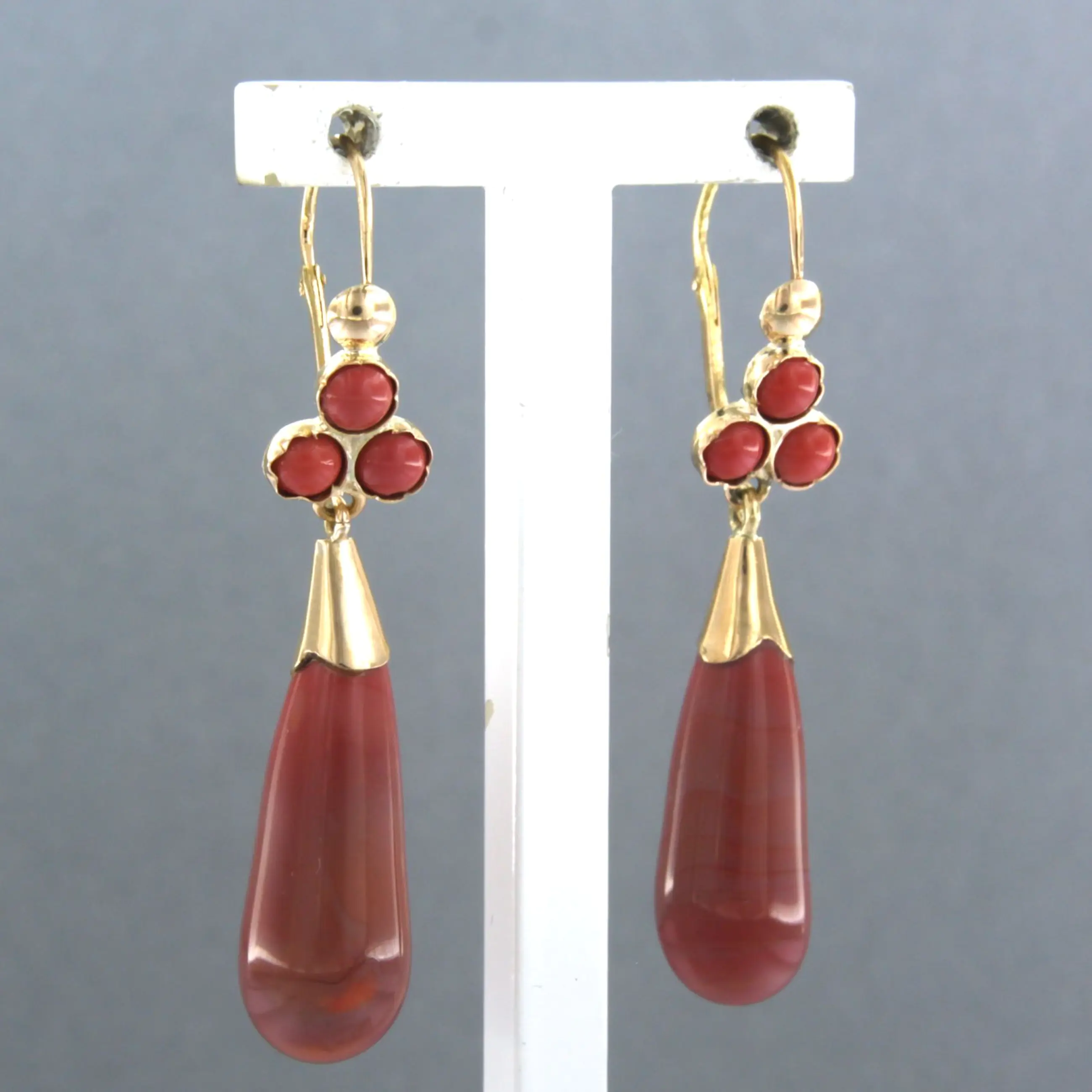 14k geel gouden oorhangers bezet met agaat - Verkocht