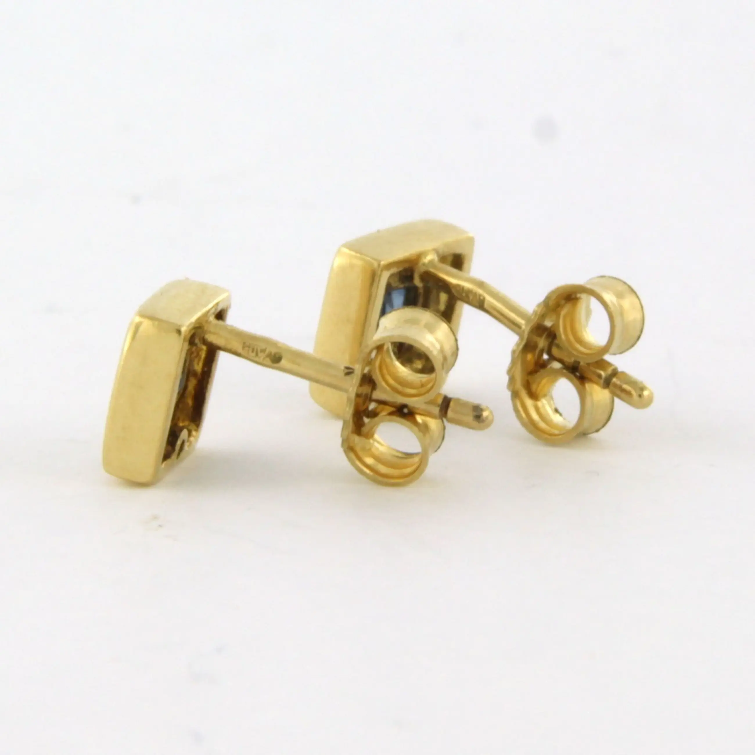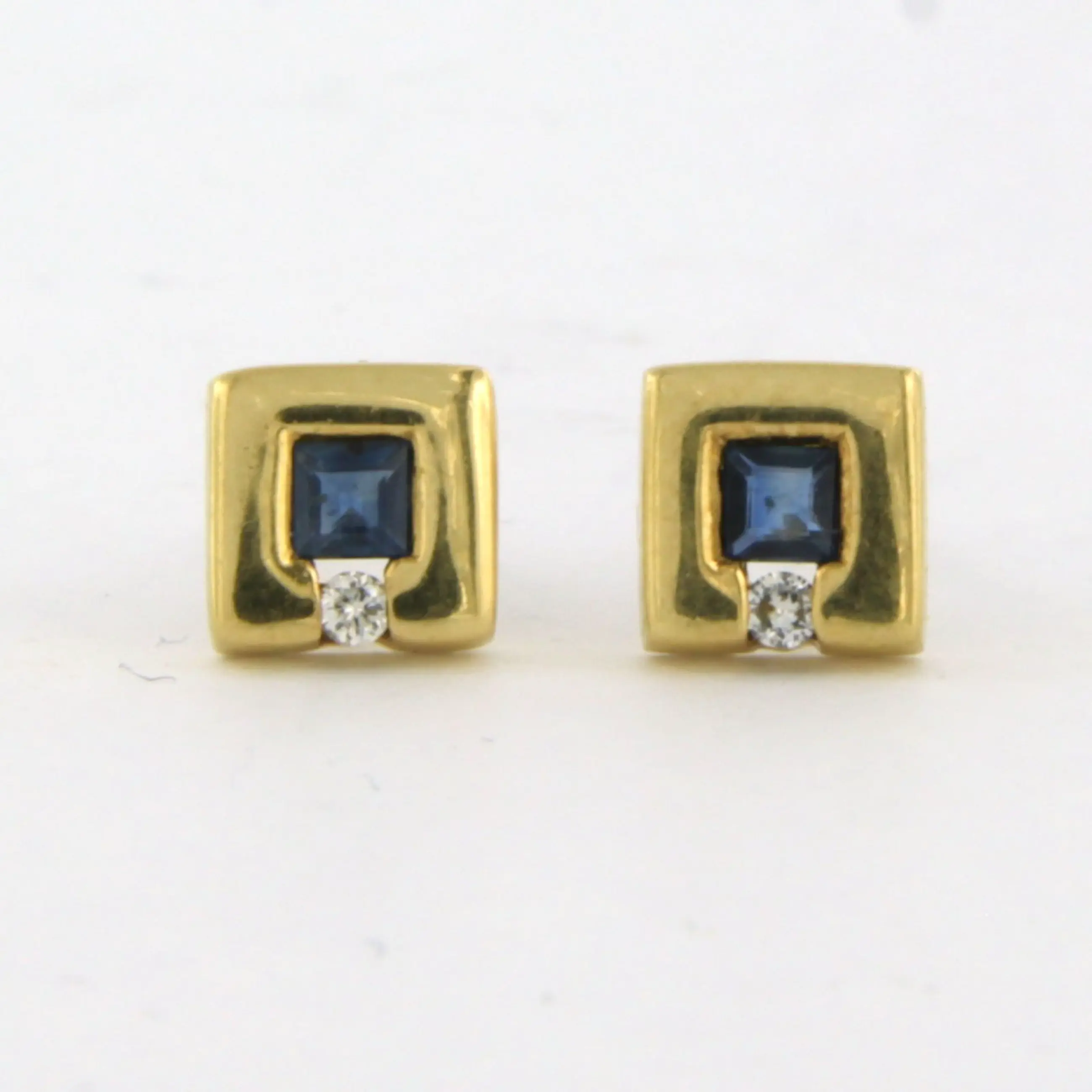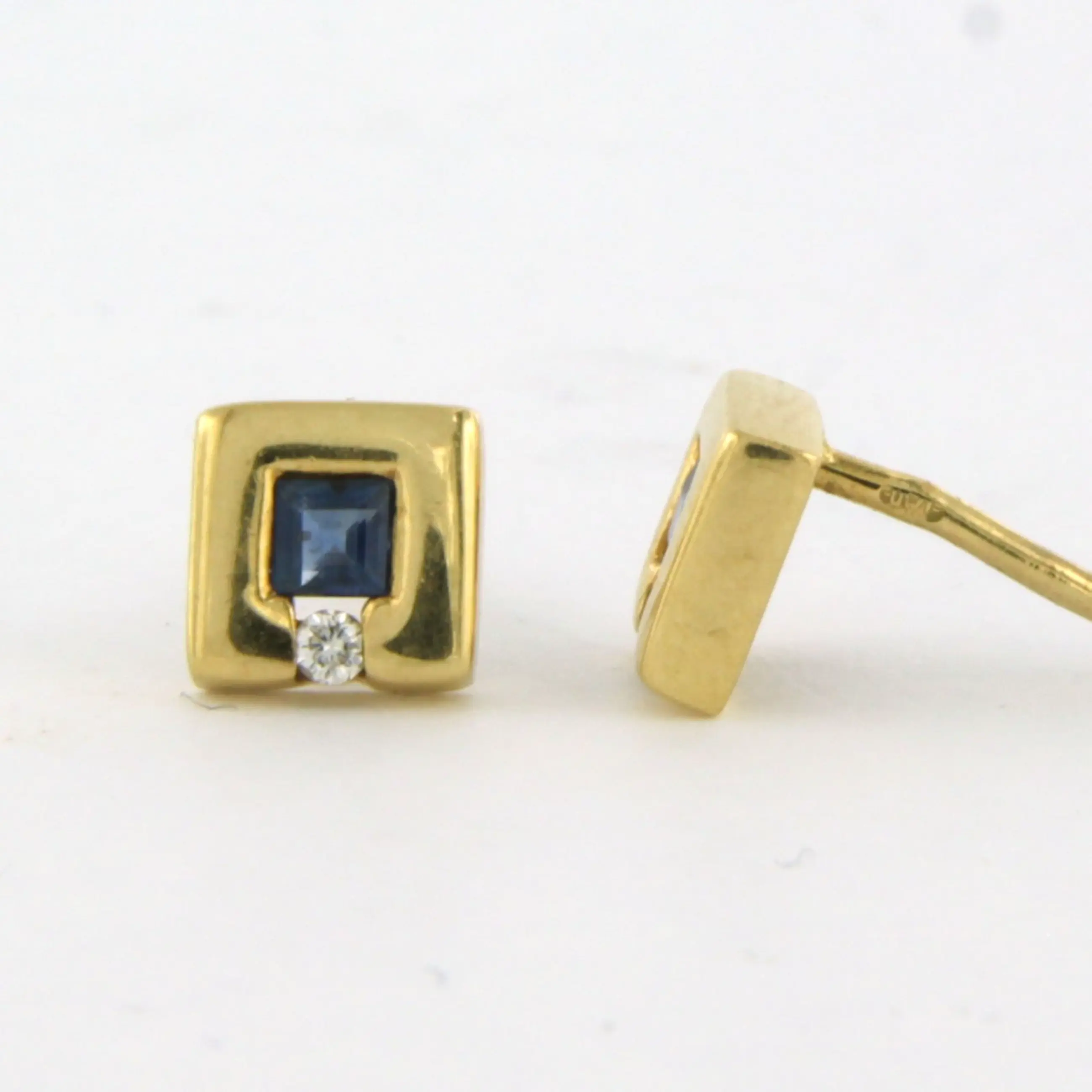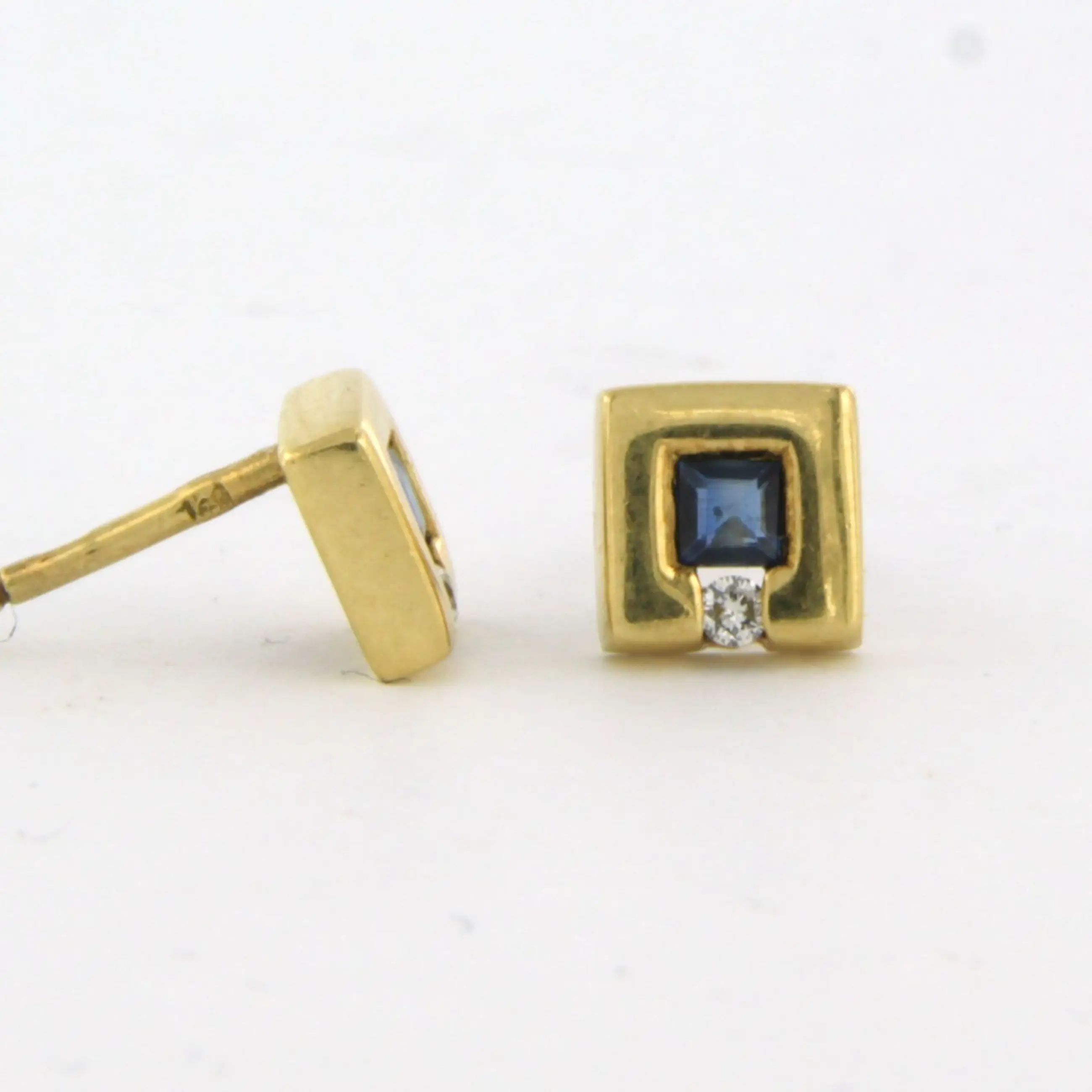 14k geel gouden oorknoppen bezet met saffier en briljant geslepen diamant 0.02 karaat G/H SI