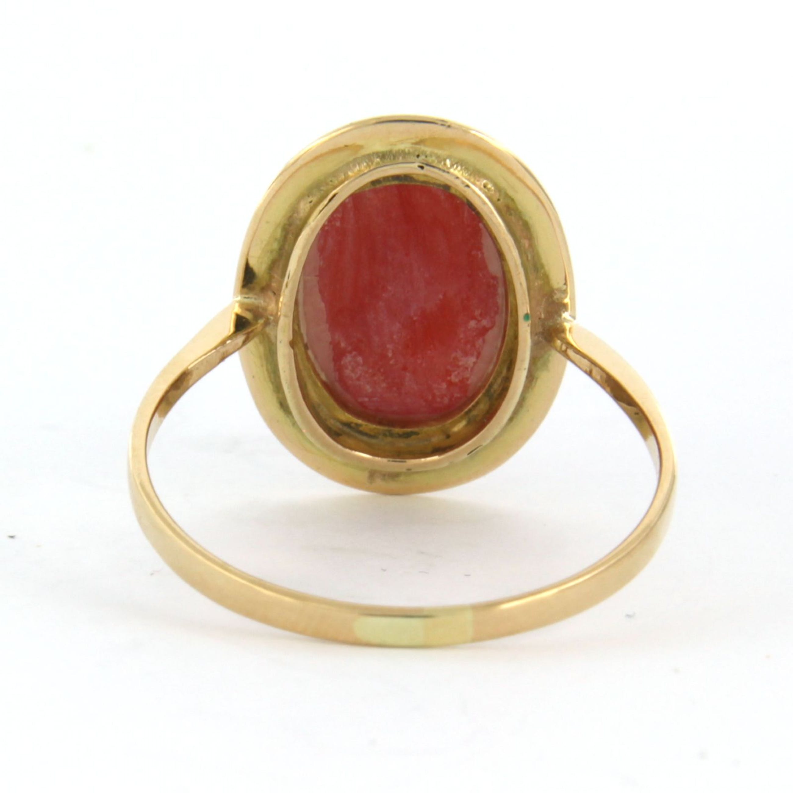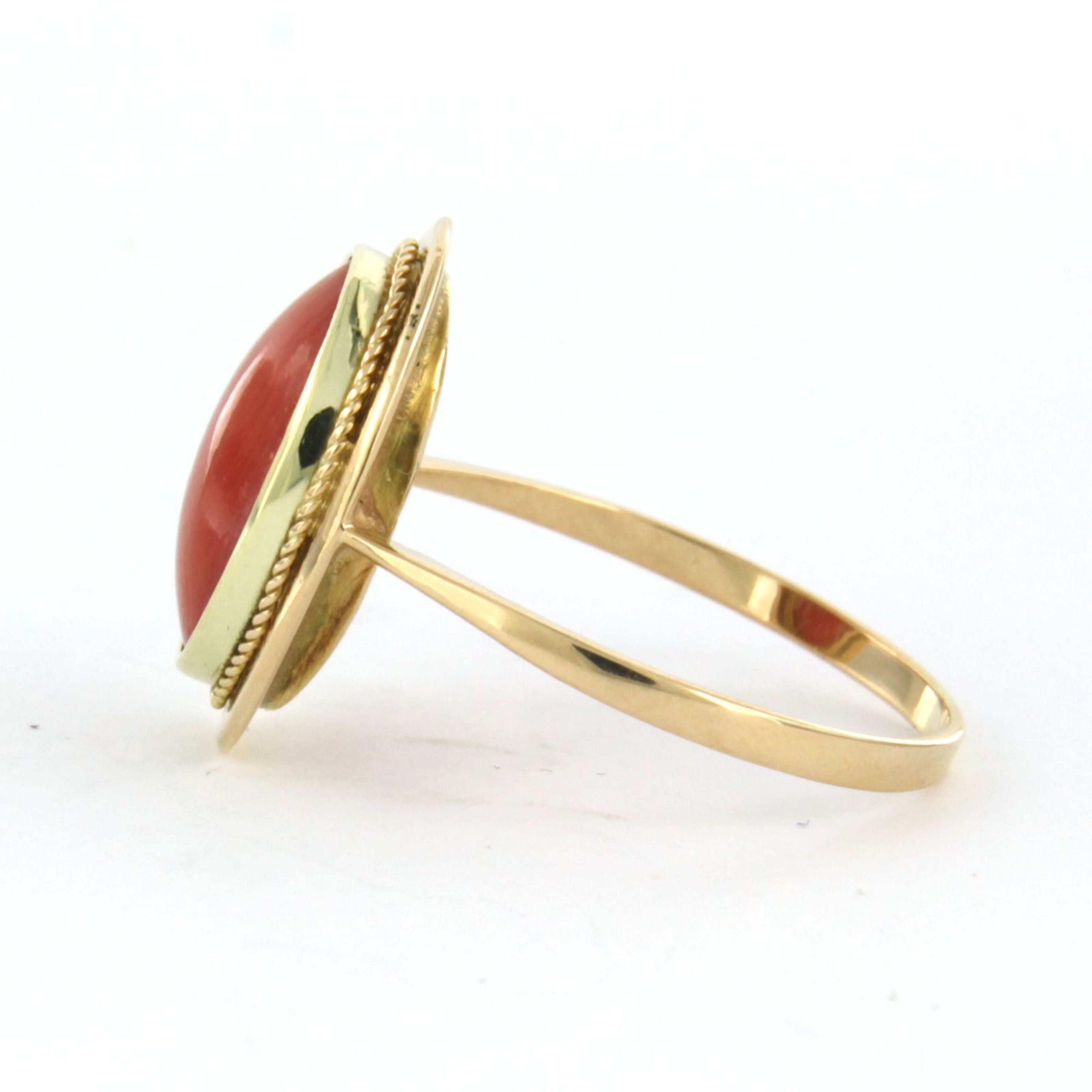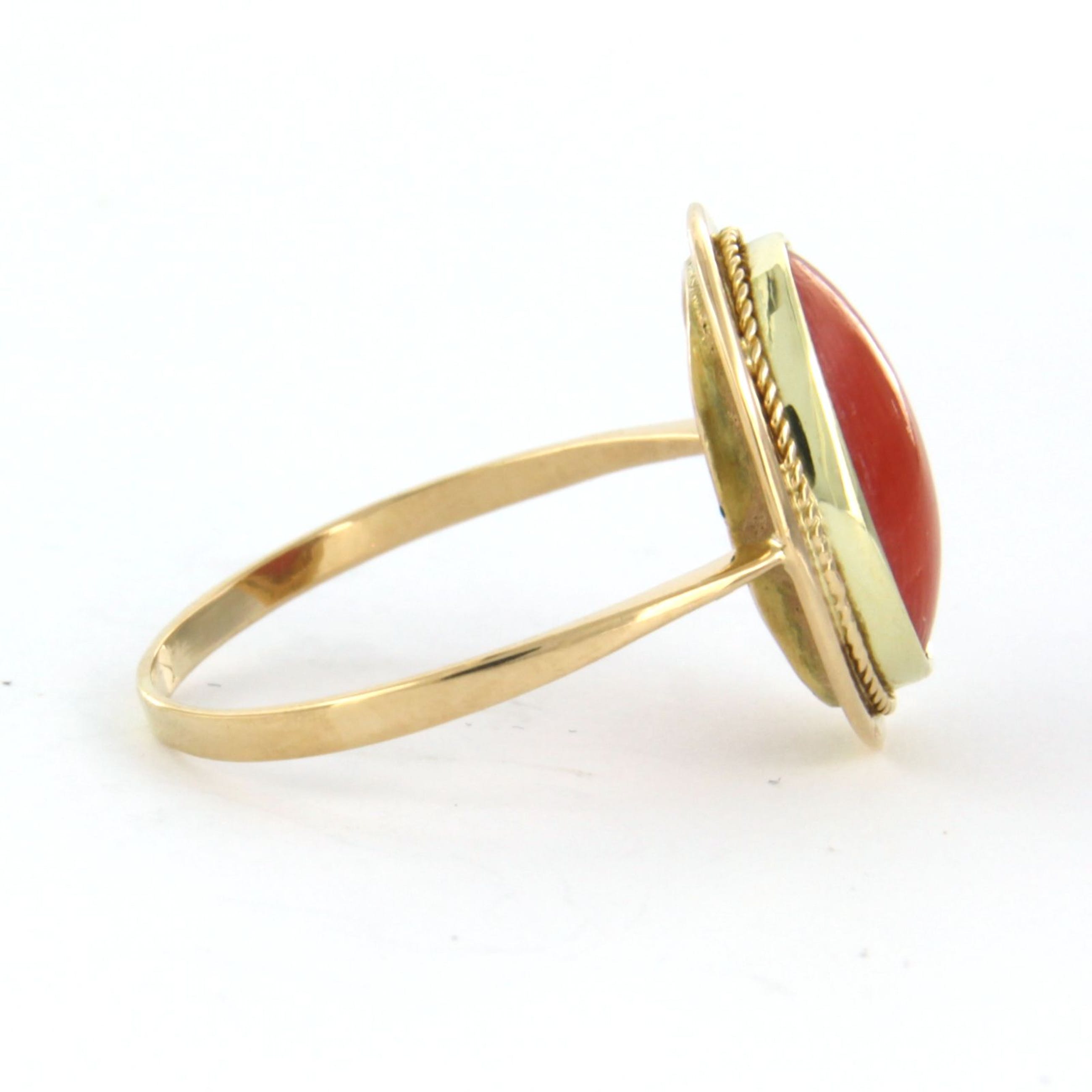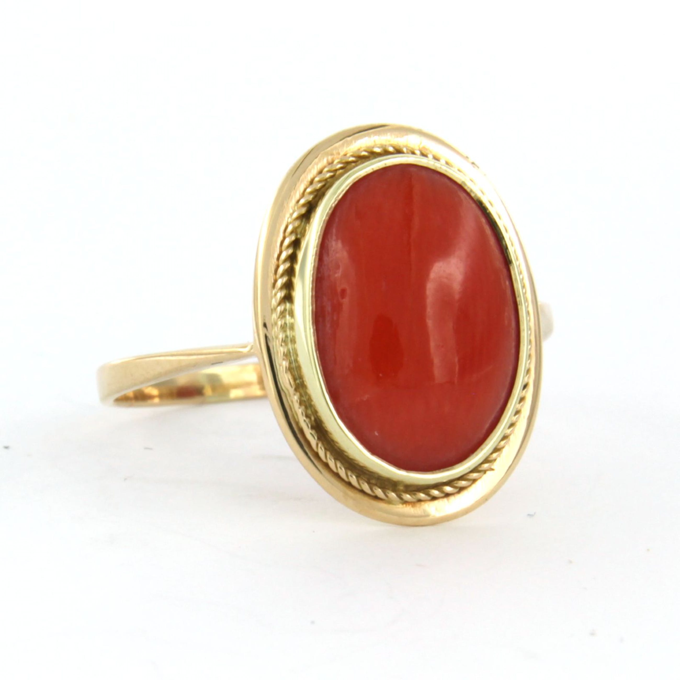 14k geel gouden ring bezet met koraal - ringmaat 19 (60)