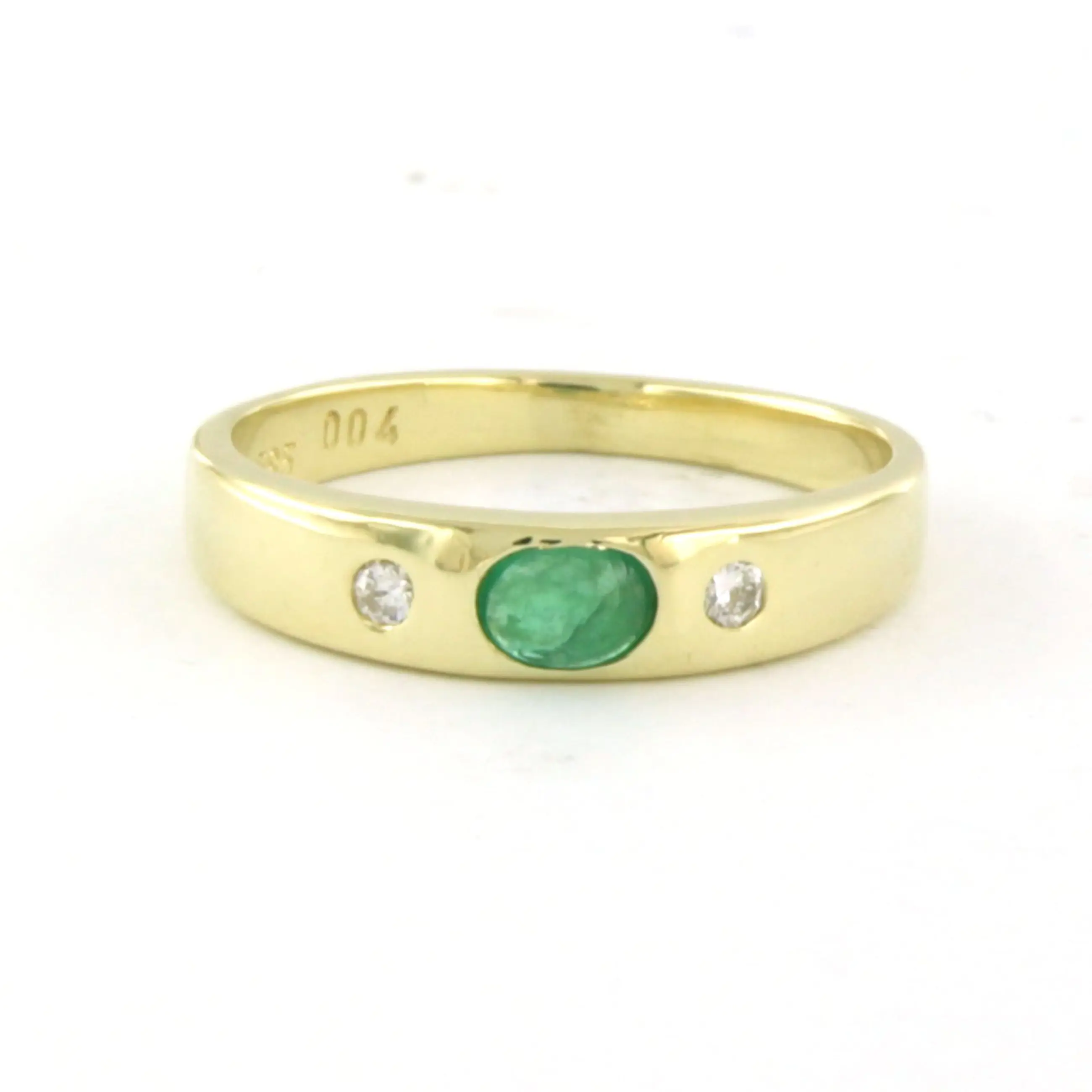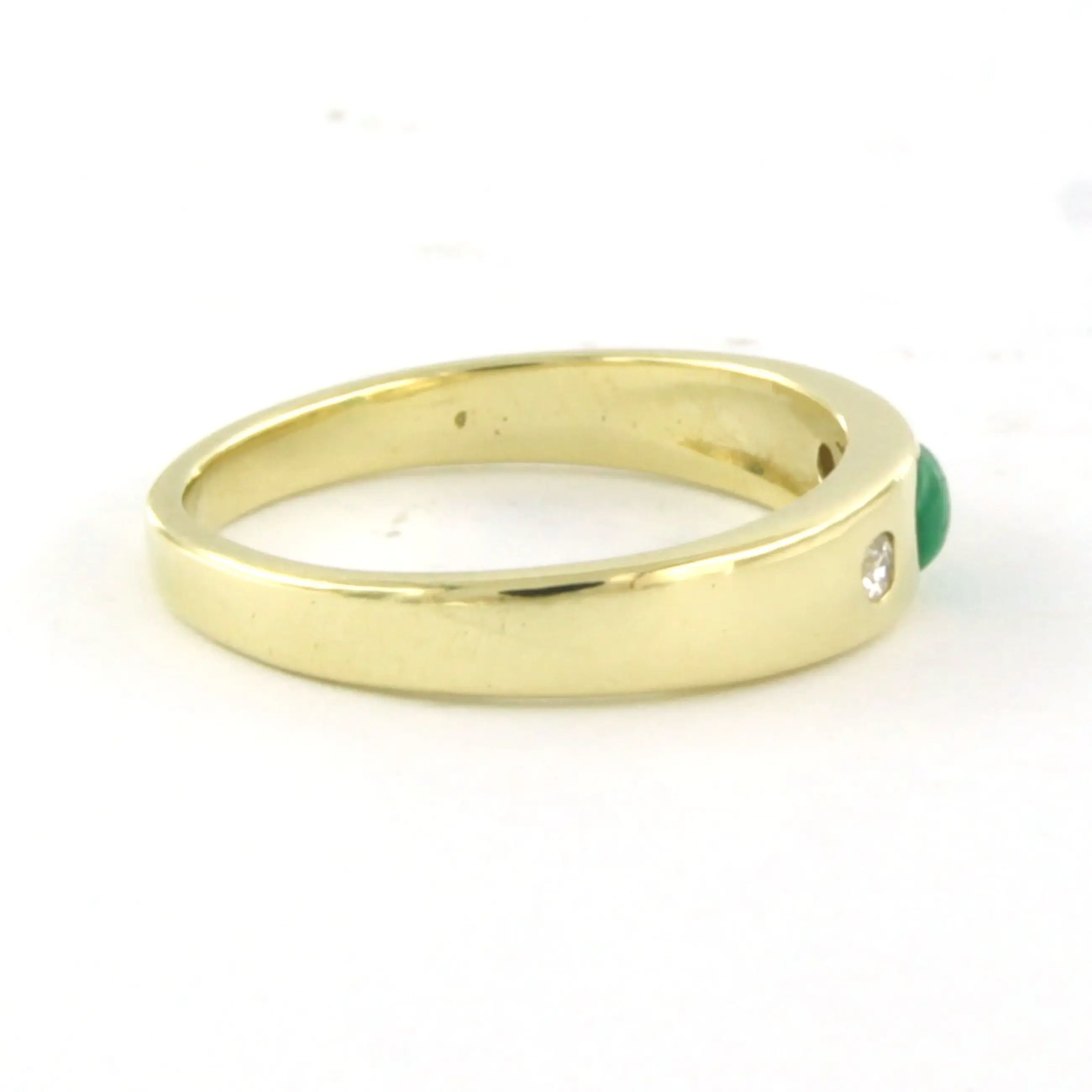 14k geel gouden ring bezet met smaragd en briljant geslepen diamant tot. 0.04ct – F/G – VS/SI - ringmaat 15(47)